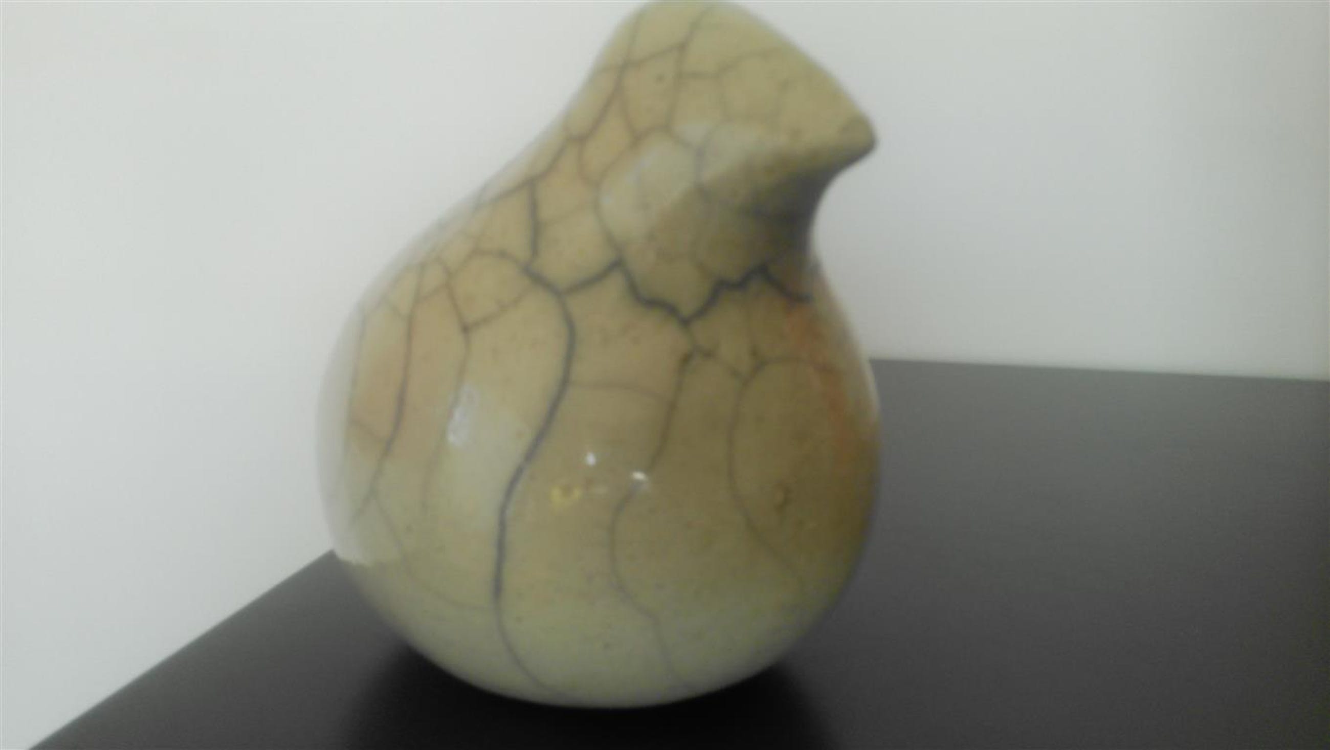 Raku techniek gebakken, stijlvolle vogel Met sticker en initialen