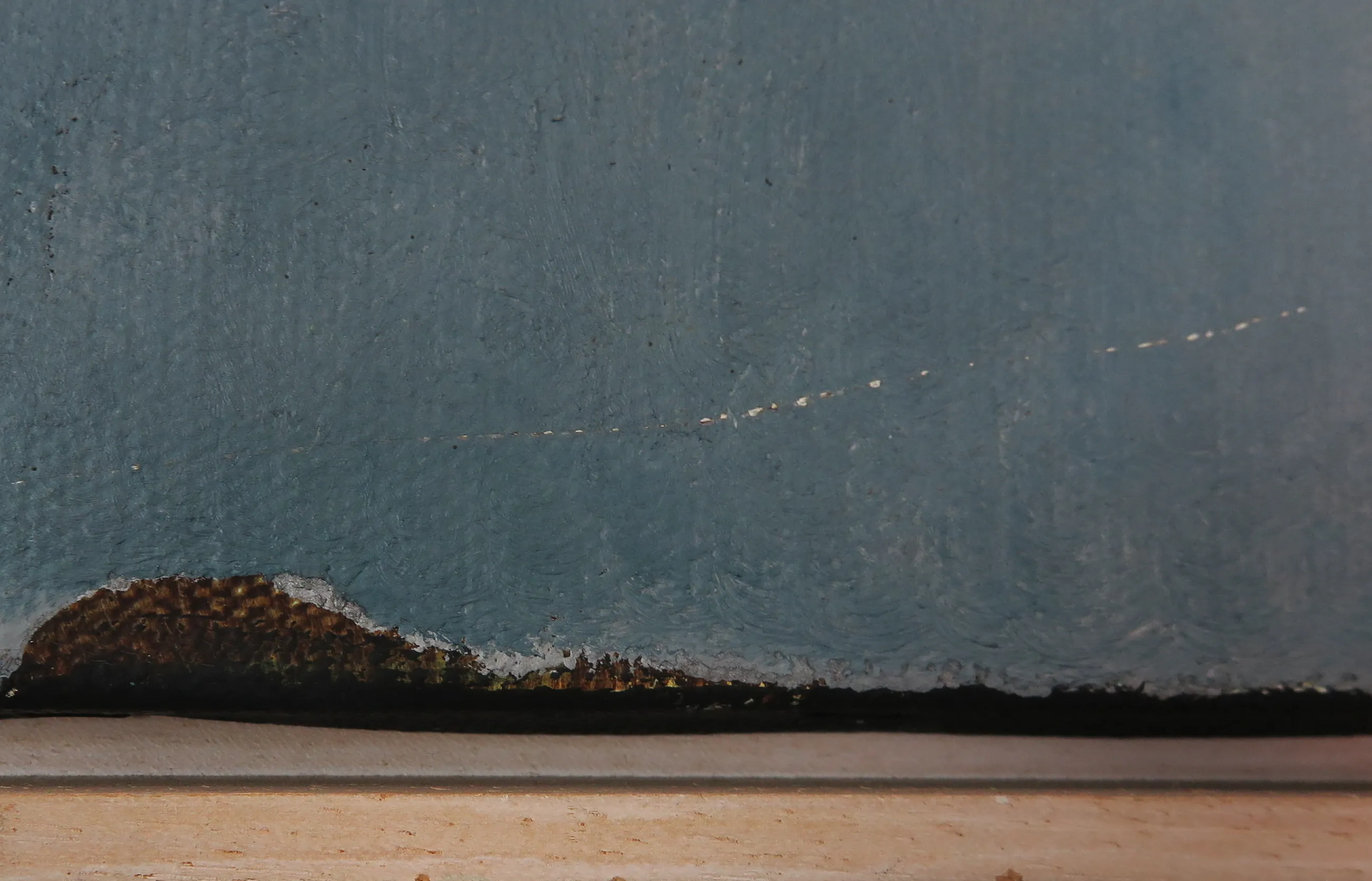 | Enkele lichte krasjes op het doek. Lichte beschadiging aan de onderkant van het doek. (Zie foto) | |