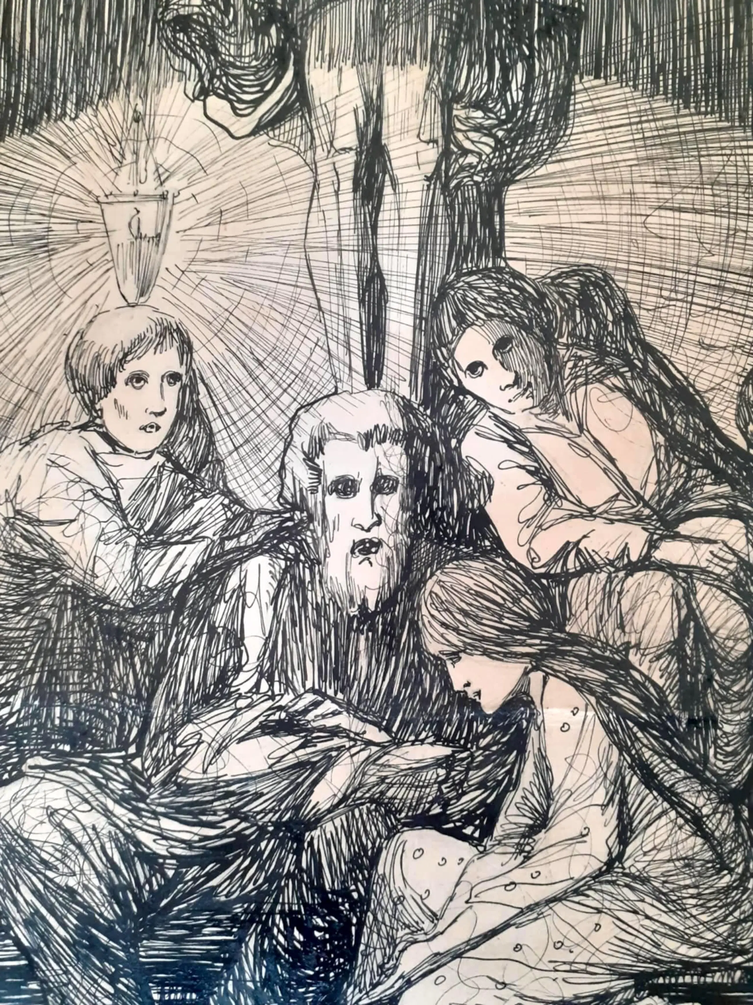 Een pentekening van Jos Speybrouck. Gesigneerd en gedateerd, 1924. Het is met passe-partout. Er is ook een kader, maar die is beschadigd. Dient een nieuwe kader te krijgen. Ook de passe-partout is niet meer in de beste staat. Het werk zelf is in prima staat.