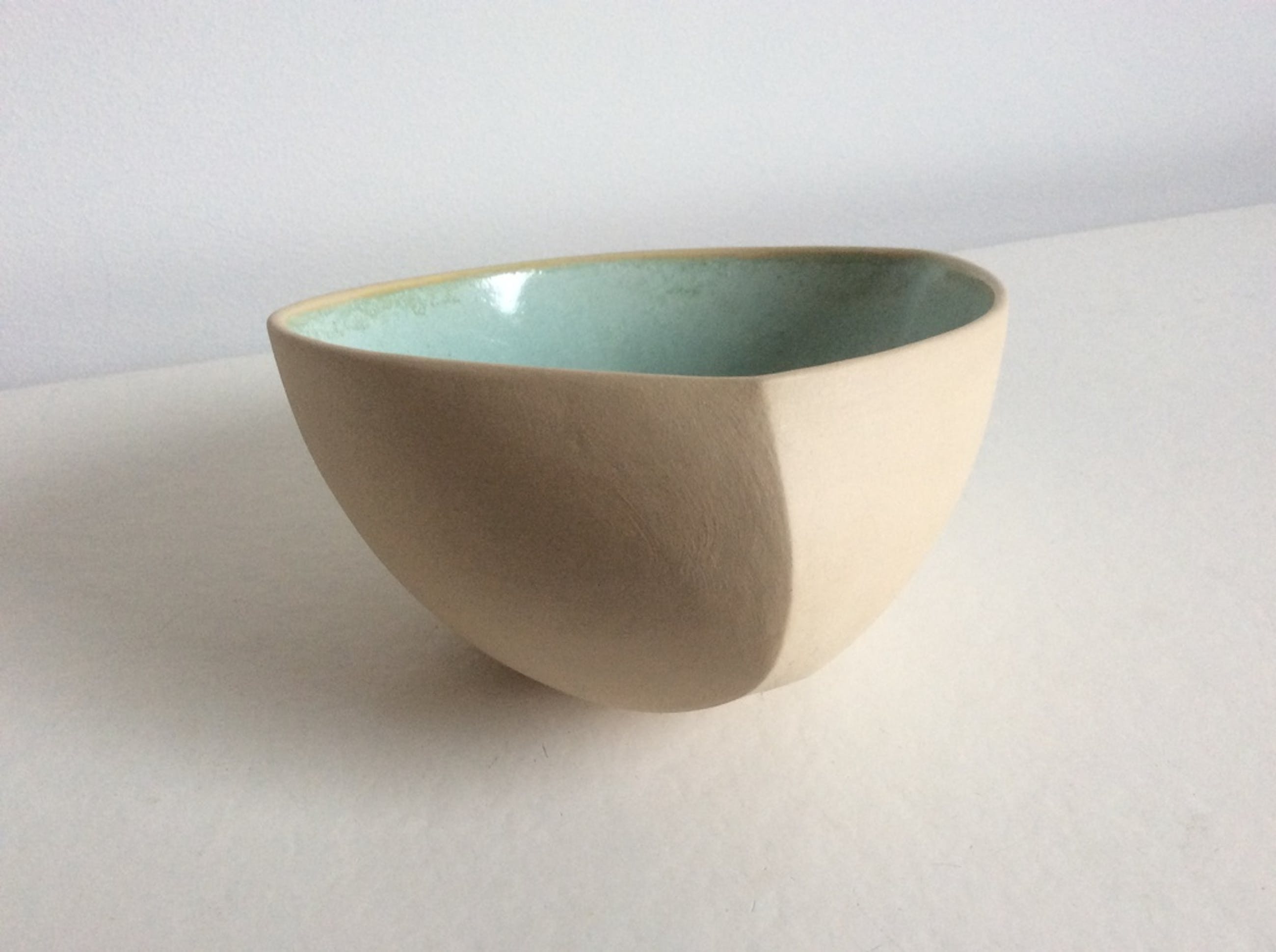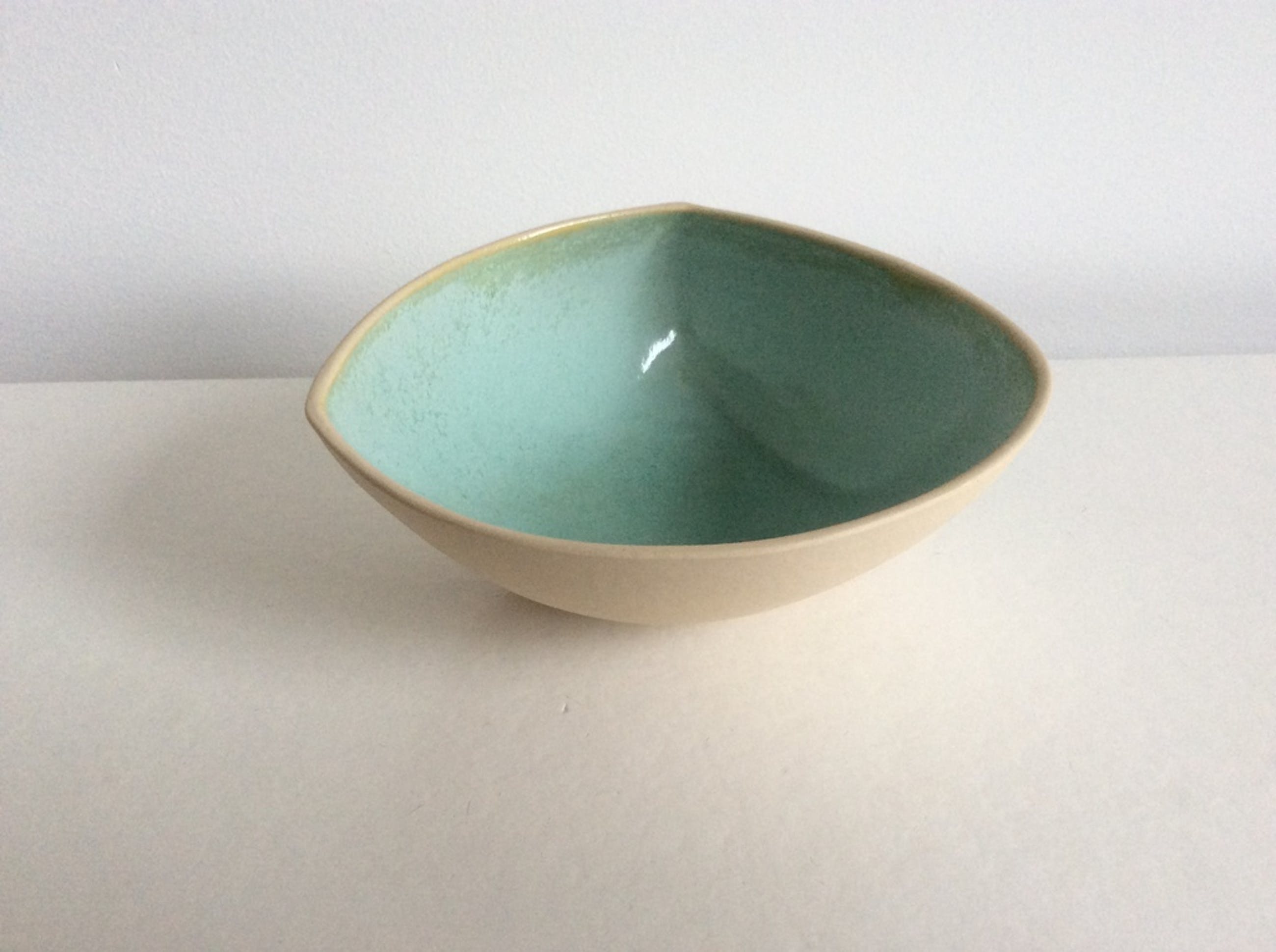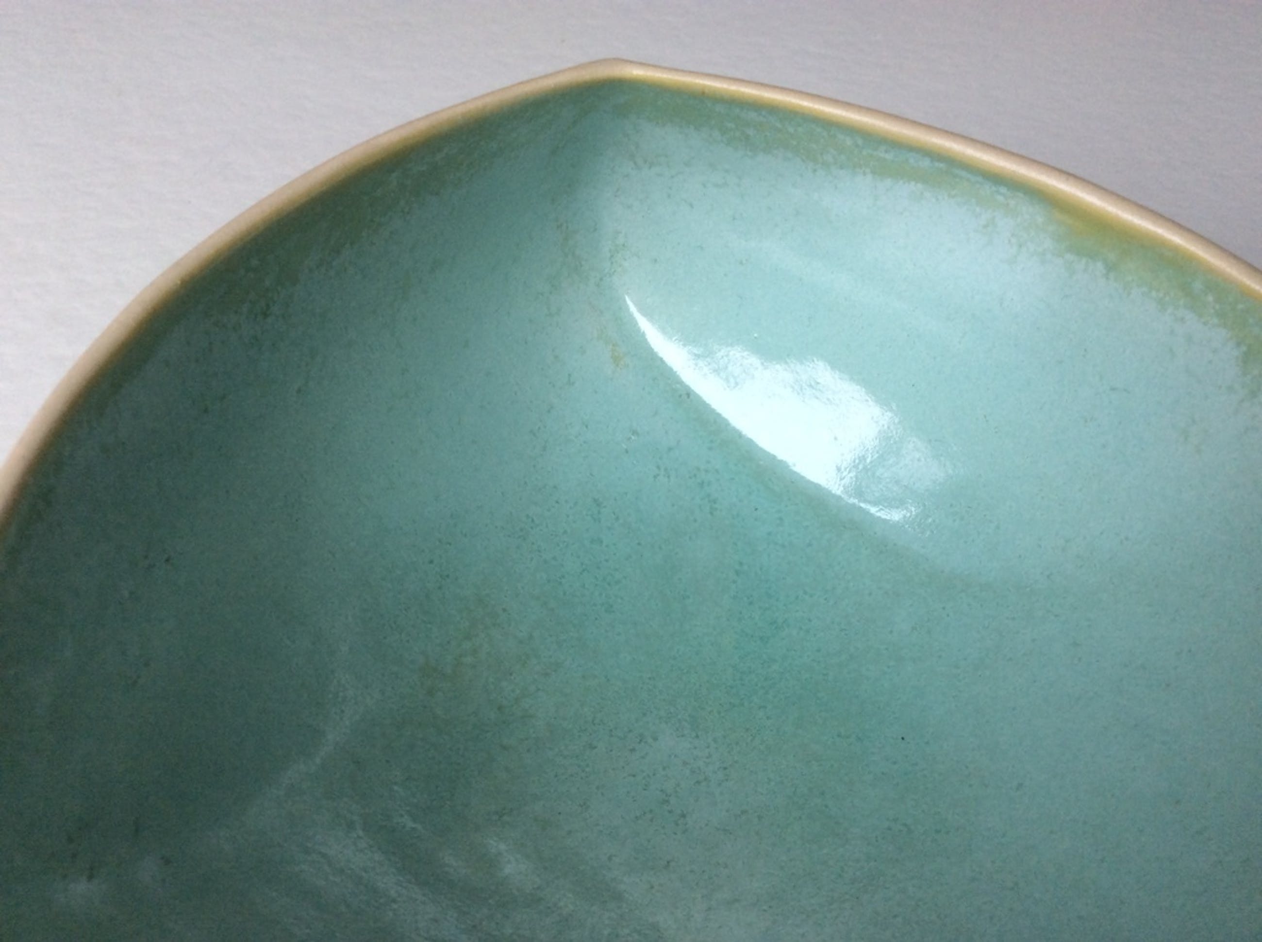 fraaie keramische schaal van kunstenaar Jos van Alphen (Schiedam 1955). Fijn geglazuurd aan de binnenkant. Formaat max. Breedte 15,5 cm, hoogte 7,5 cm. Gesigneerd op onderkant. Ca. 2014