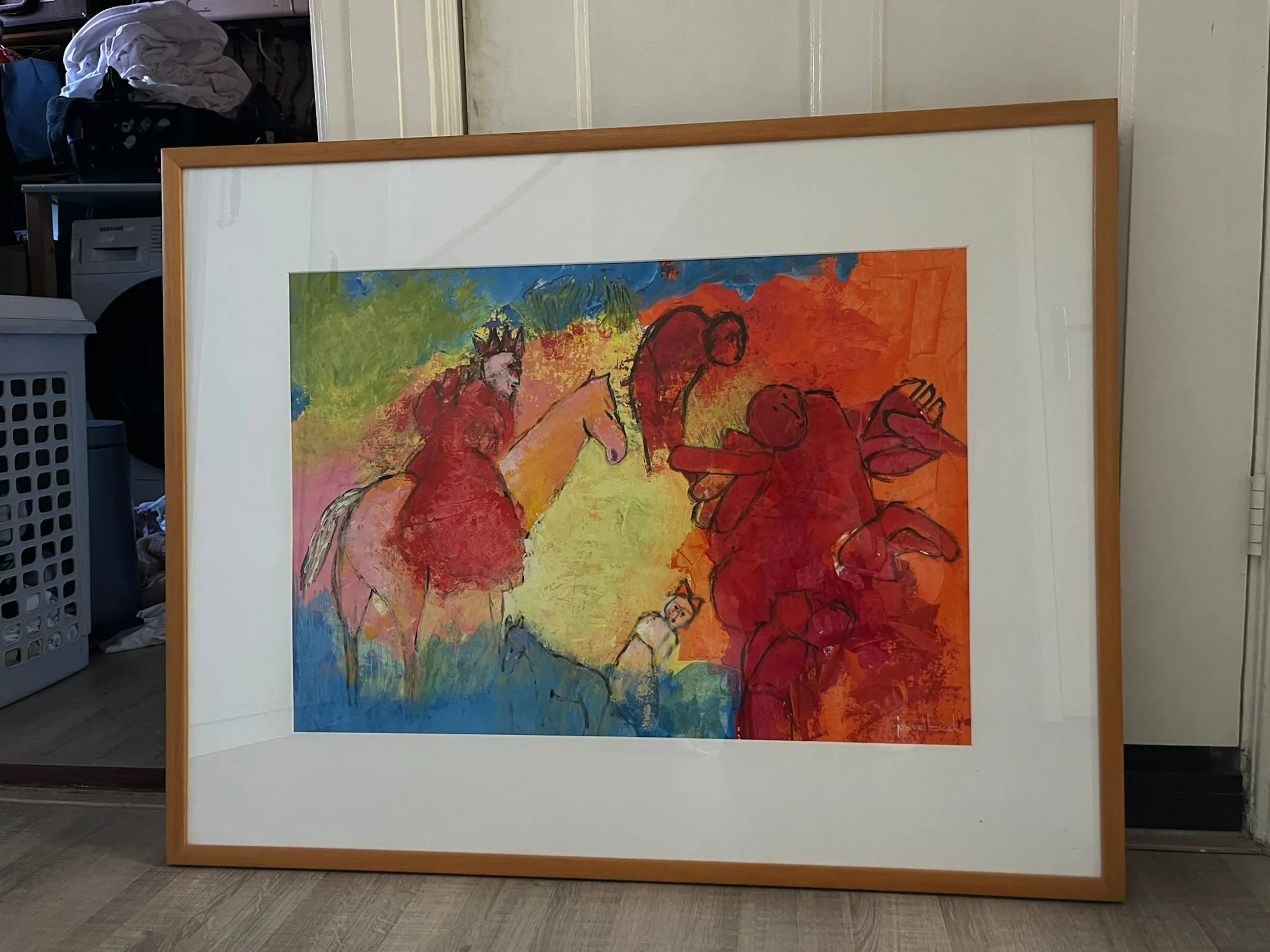 | Het werk verkeert in zeer goede staat. De kleuren zijn helder en onvervaagd, het papier is gaaf zonder scheuren, vouwen of vlekken, en de lijst met passe-partout is netjes en onbeschadigd. Het betreft een origineel handgesigneerd schilderij dat zorgvuldig bewaard is geweest. | |