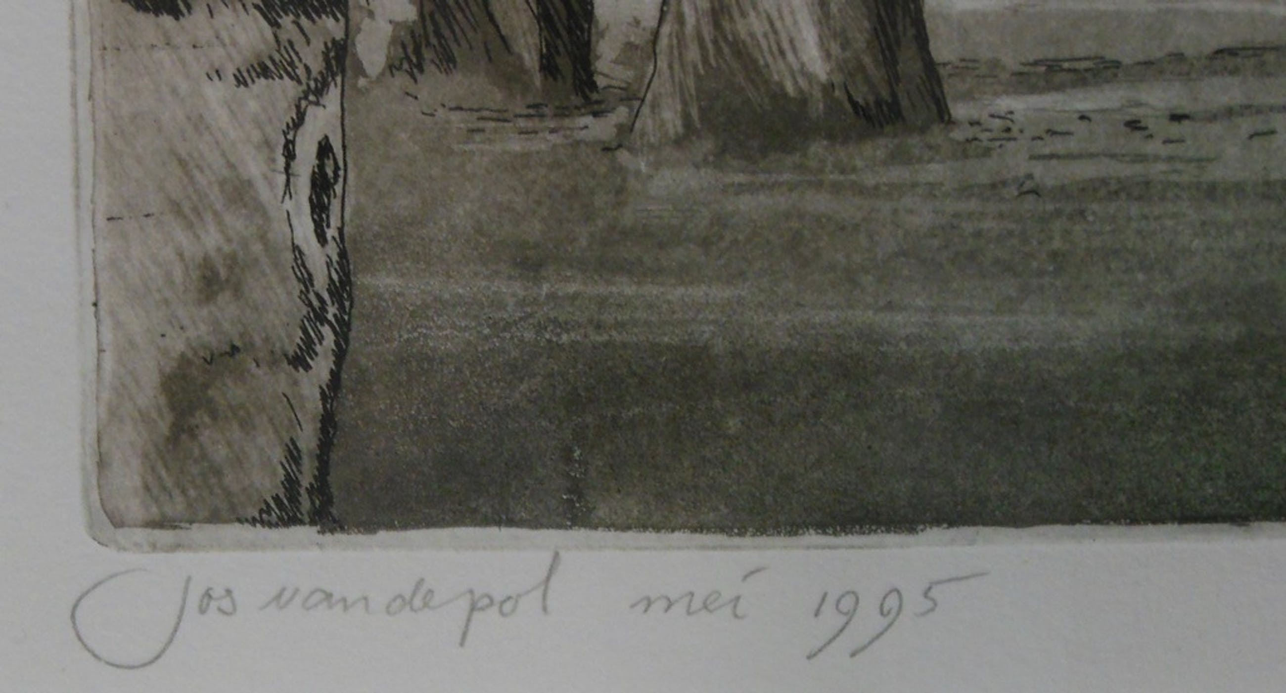 Kleine beschadigingen aan lijsten worden niet beschreven! Bij ingelijste werken achter glas vermelden wij altijd glasschade. Passe-partouts worden op geen enkele manier gegarandeerd en ook niet altijd meegezonden. Alleen als een werk niet uit het passe-partout te halen is, zal dit vermeld worden.