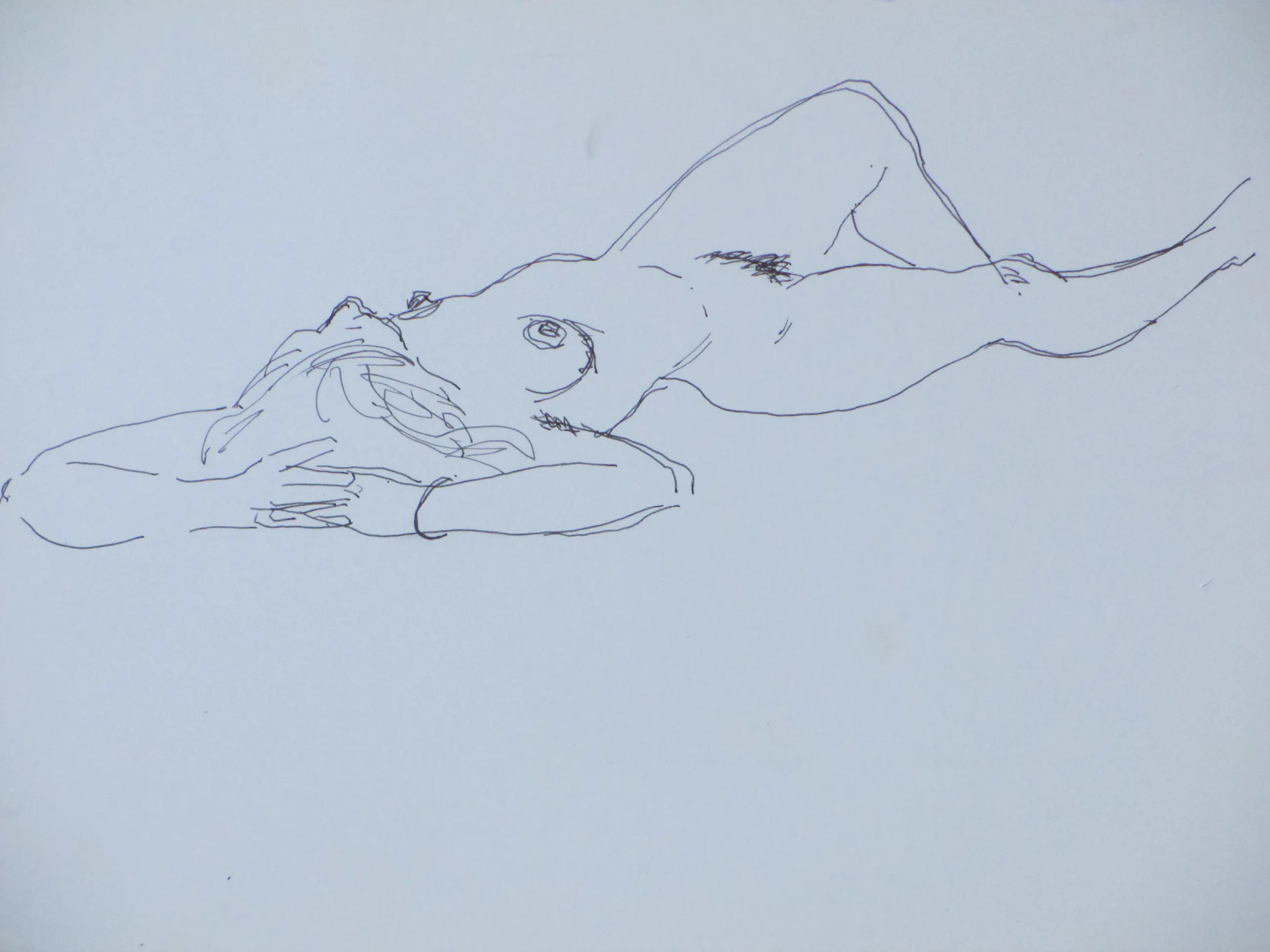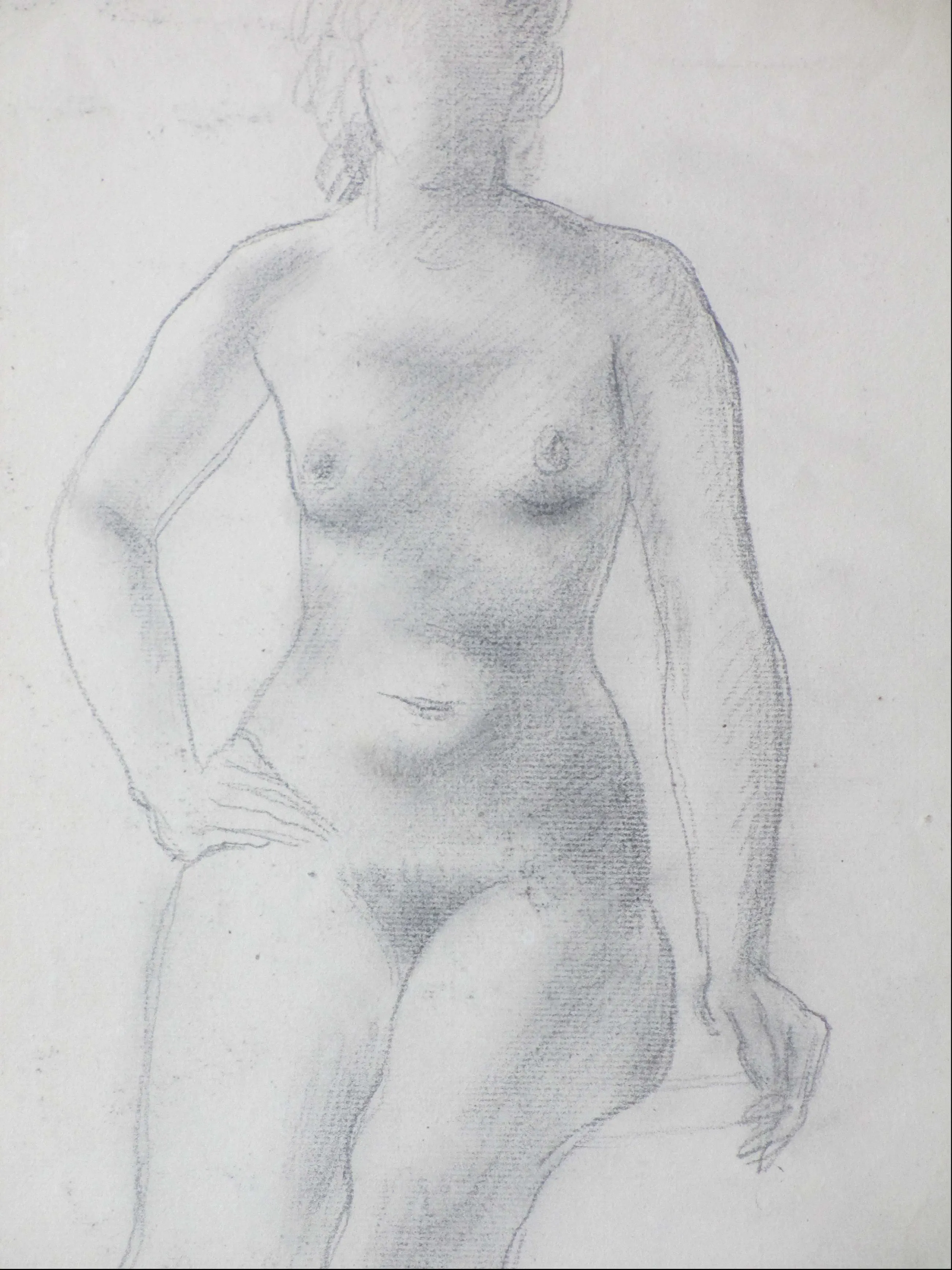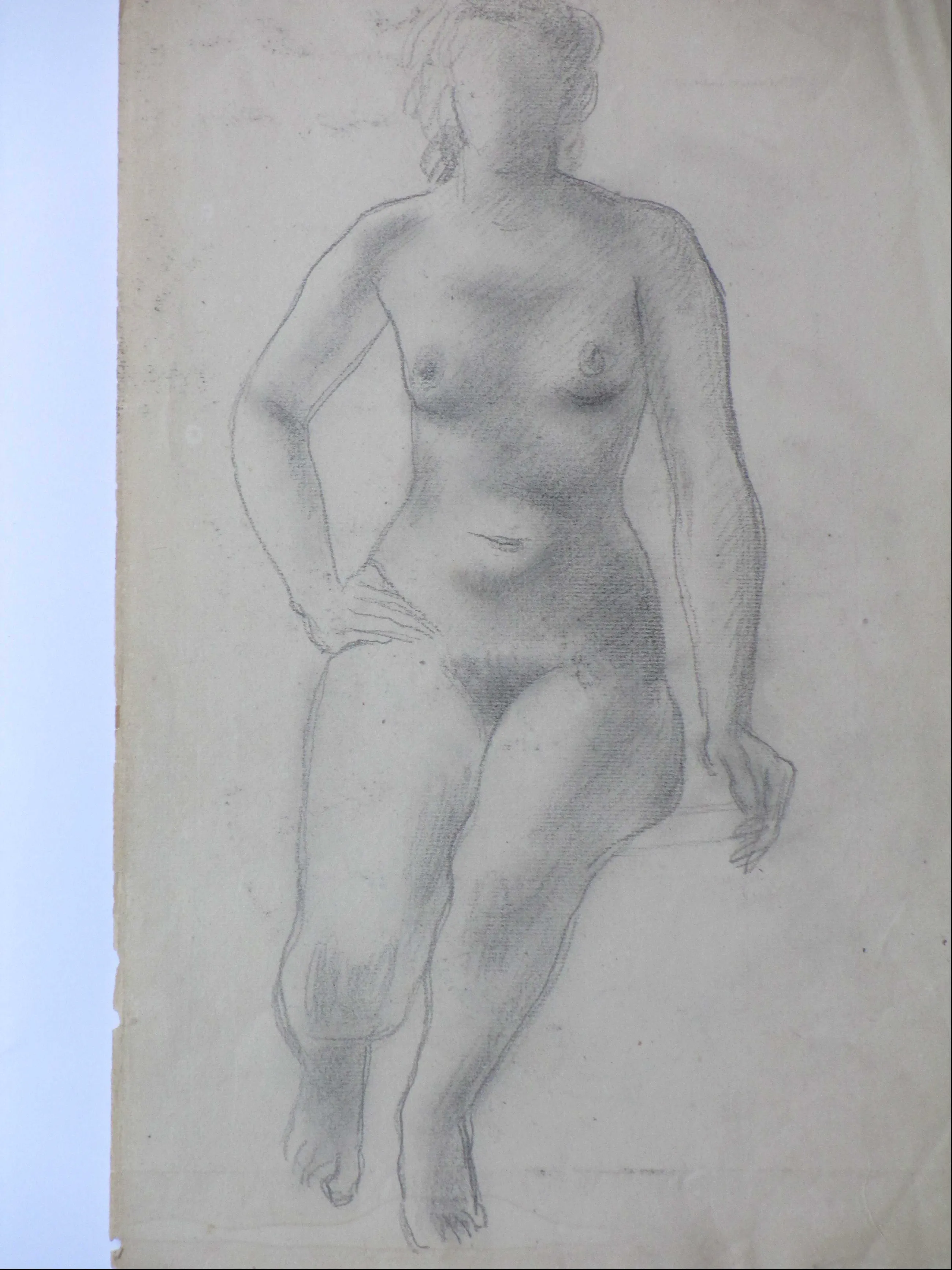 Drie losbladige tekeningen door Jos van den Berg Voorstelling van twee zittende naakten (potlood en inkt) en een liggend naakt (inkt) Grootste tekening (rechtsboven), beeldmaat 30x16 Niet gesigneerd, afkomstig uit particuliere collectie Jos van den Berg Authenticiteit volledig gegarandeerd