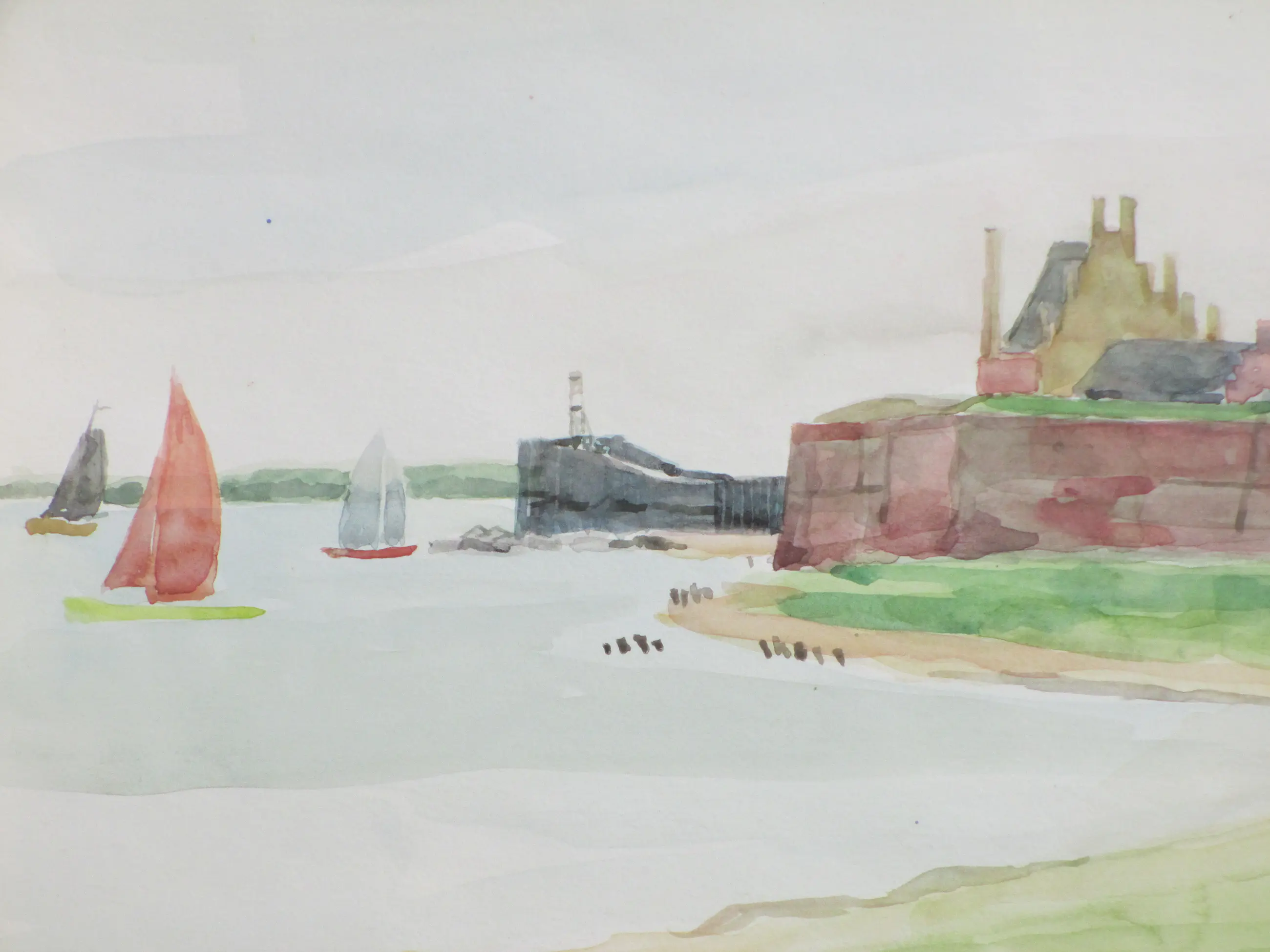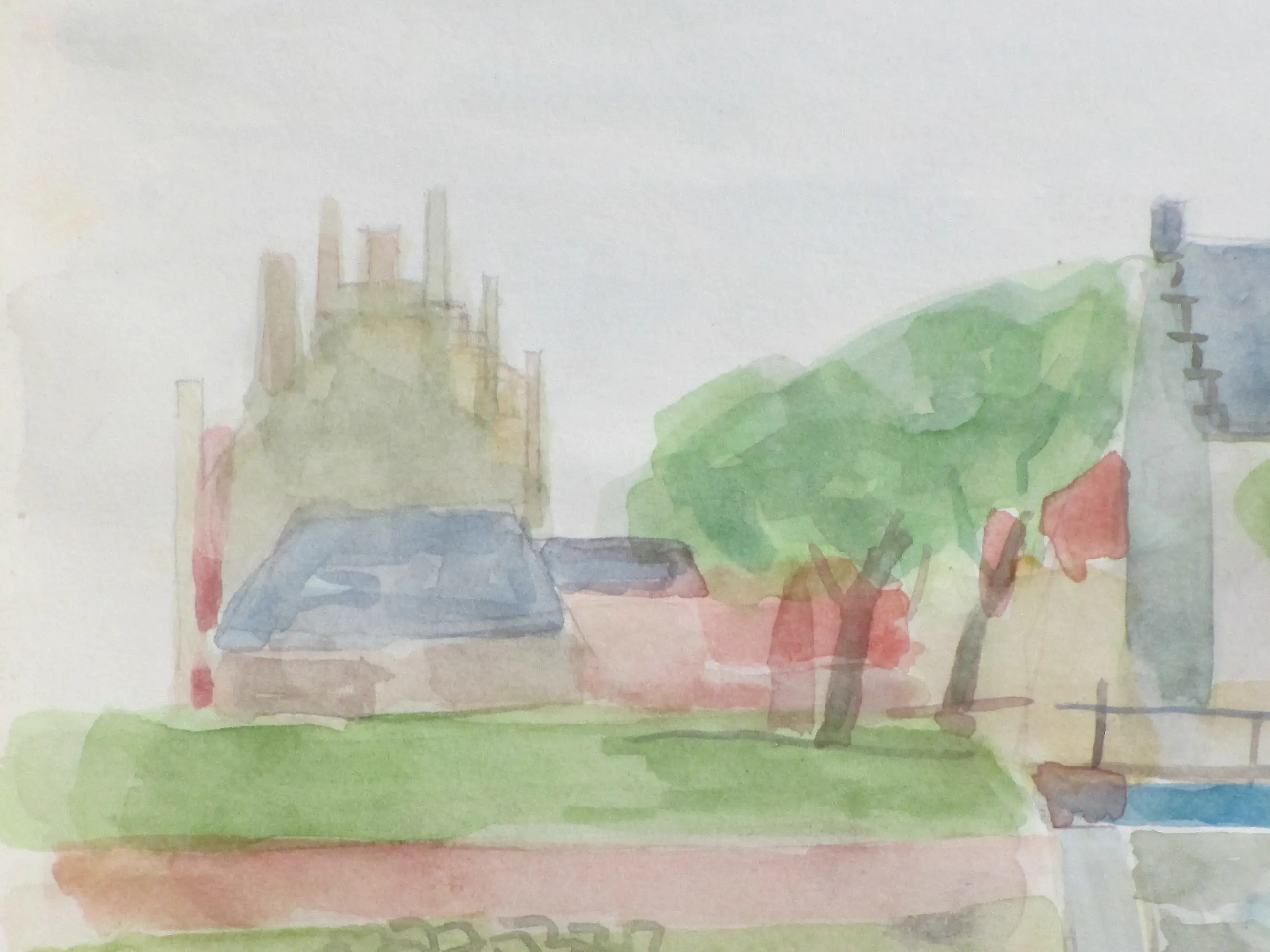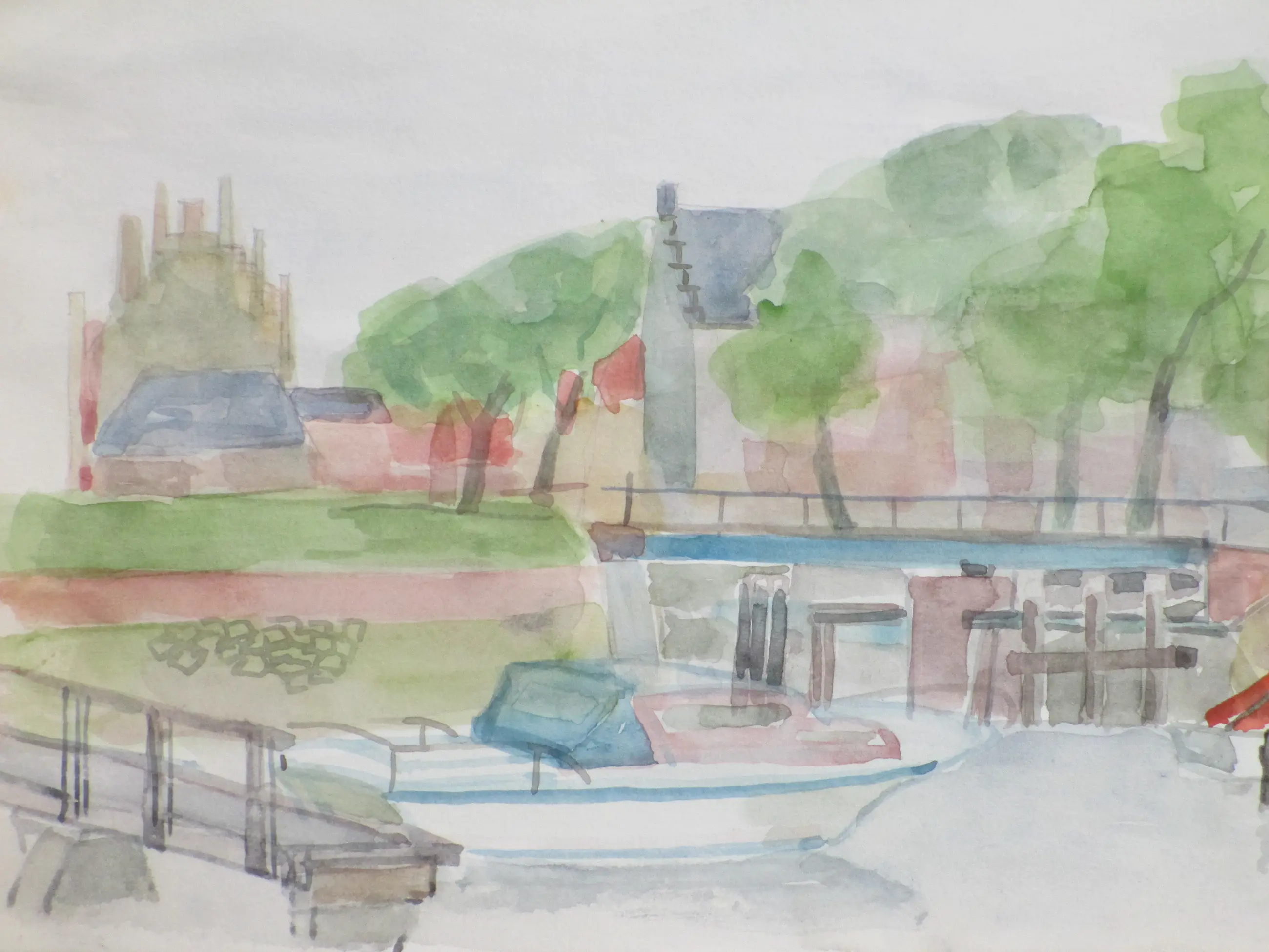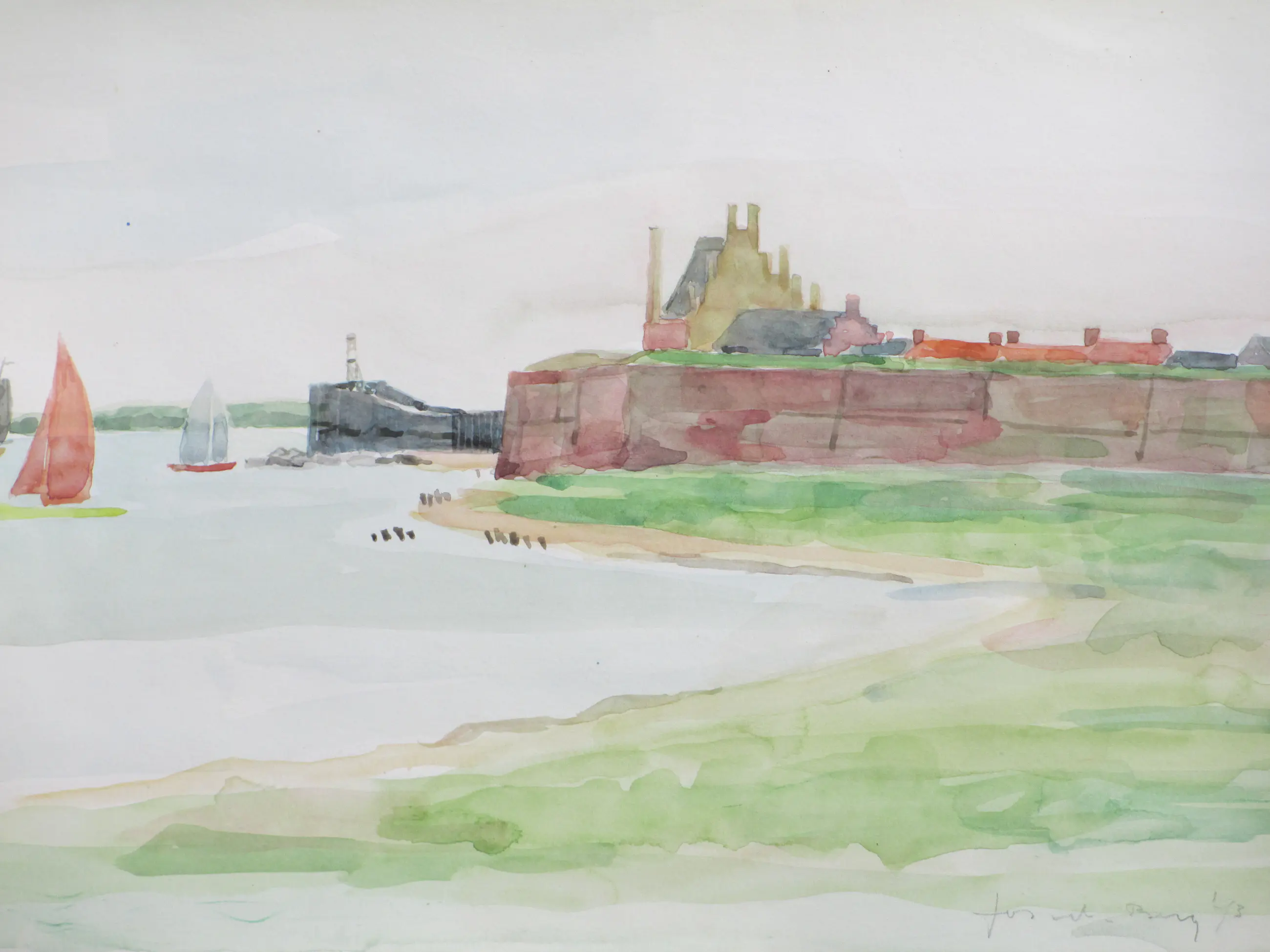 Twee heldere aquarellen door Jos van den Berg Voorstellingen van de haven en een stadsgezicht van Veere Beiden losbladig, beeldmaat 24x34 Bovenste aquarel gesigneerd en gedateerd '73 Authenticiteit volledig gegarandeerd