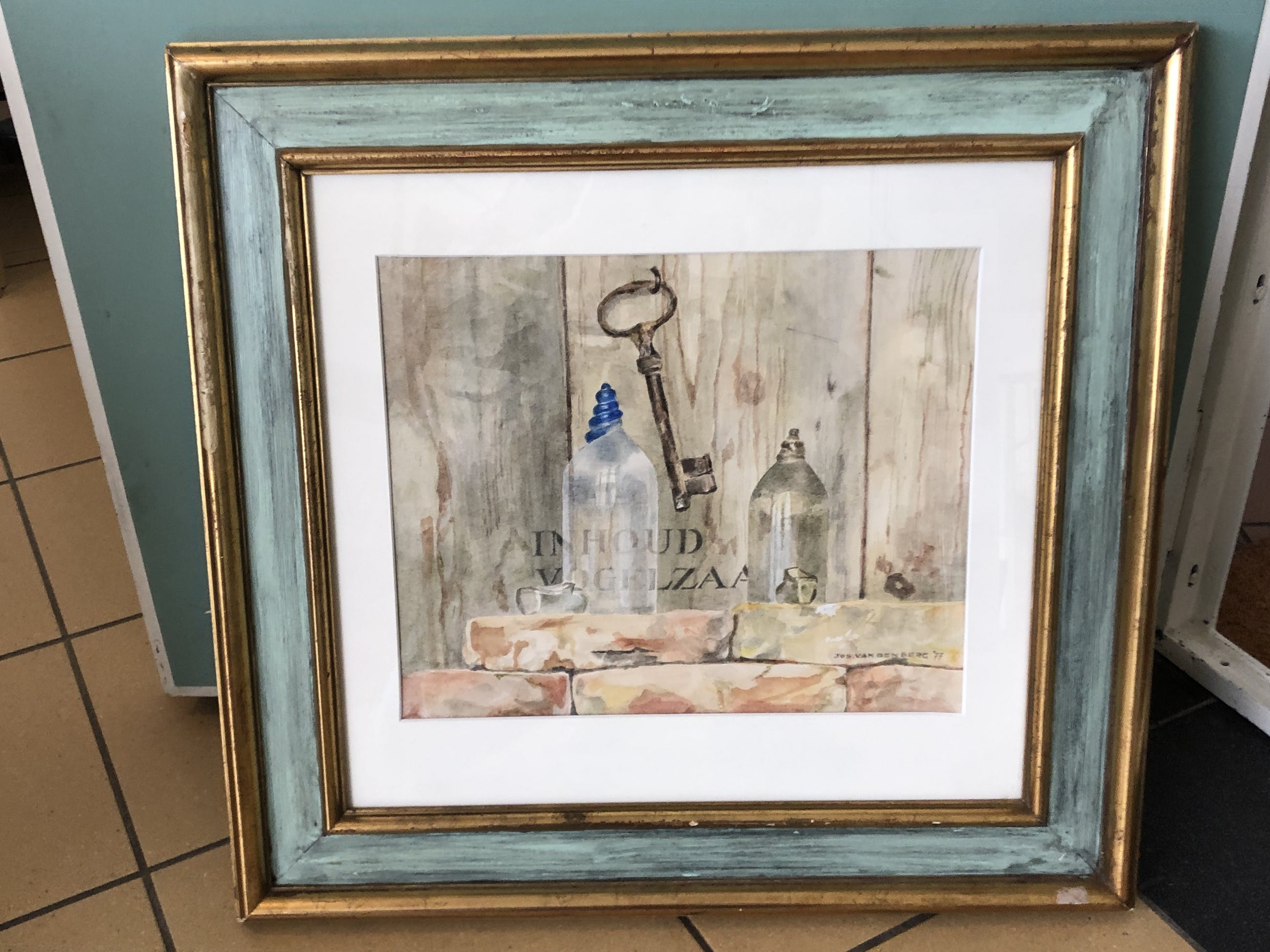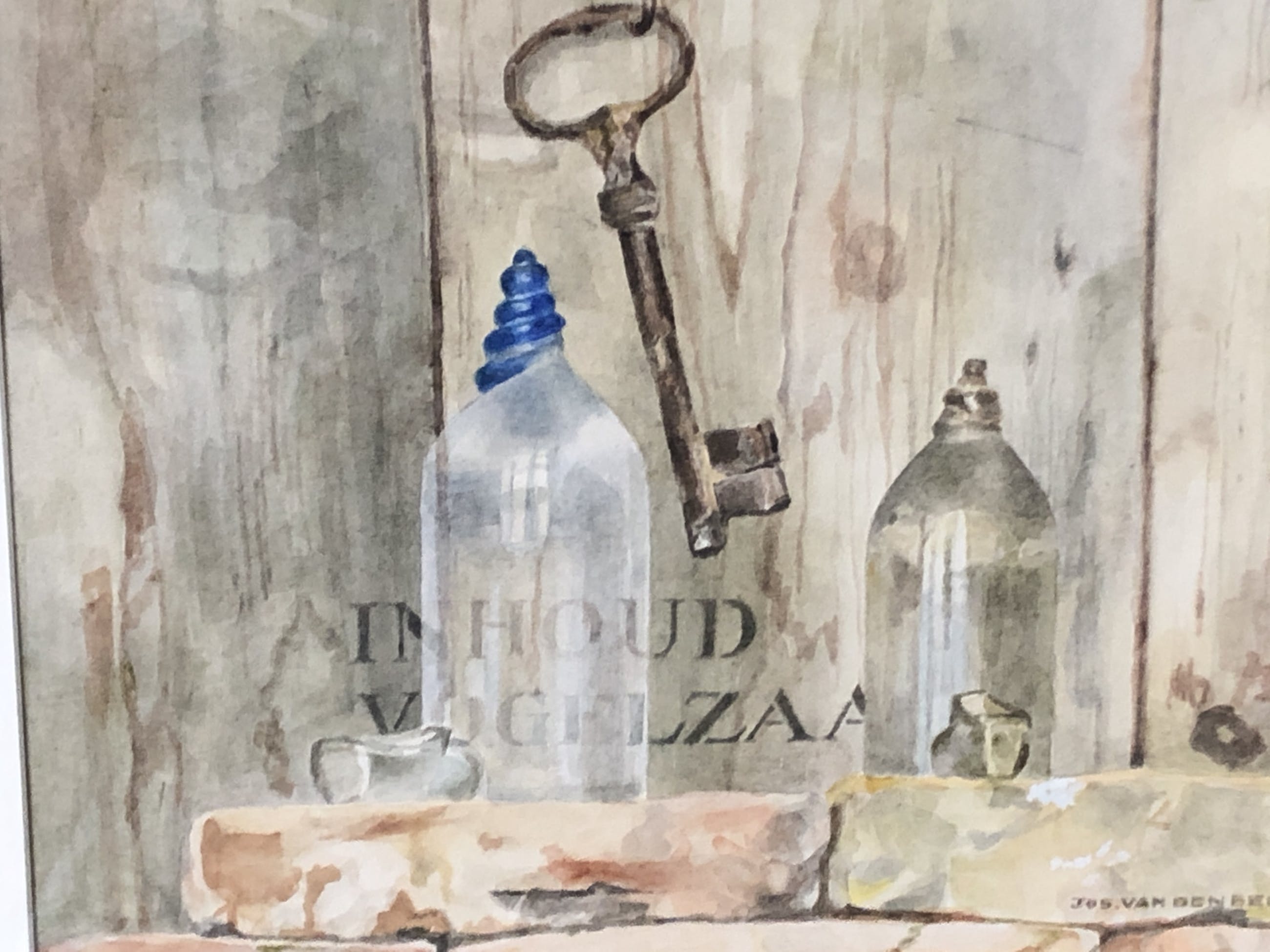 Fraaie aquarel van Jos van den Berg in smaakvolle maar drukke lijst. Kan zo aan de muur! Het werk het liefst ophalen of verzending via een koerier. Natuurlijk mag u het werk vooraf komen beoordelen in de schatkamer van galerie Rotor in Gorcum. De foto is door het glas heen genomen.