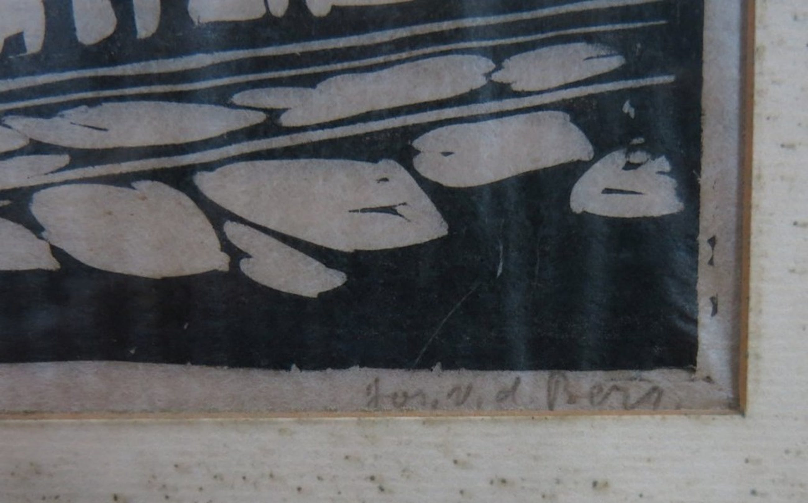 Kleine beschadigingen aan lijsten worden niet beschreven! Bij ingelijste werken achter glas vermelden wij altijd glasschade. Passe-partouts worden op geen enkele manier gegarandeerd en ook niet altijd meegezonden. Alleen als een werk niet uit het passe-partout te halen is, zal dit vermeld worden.