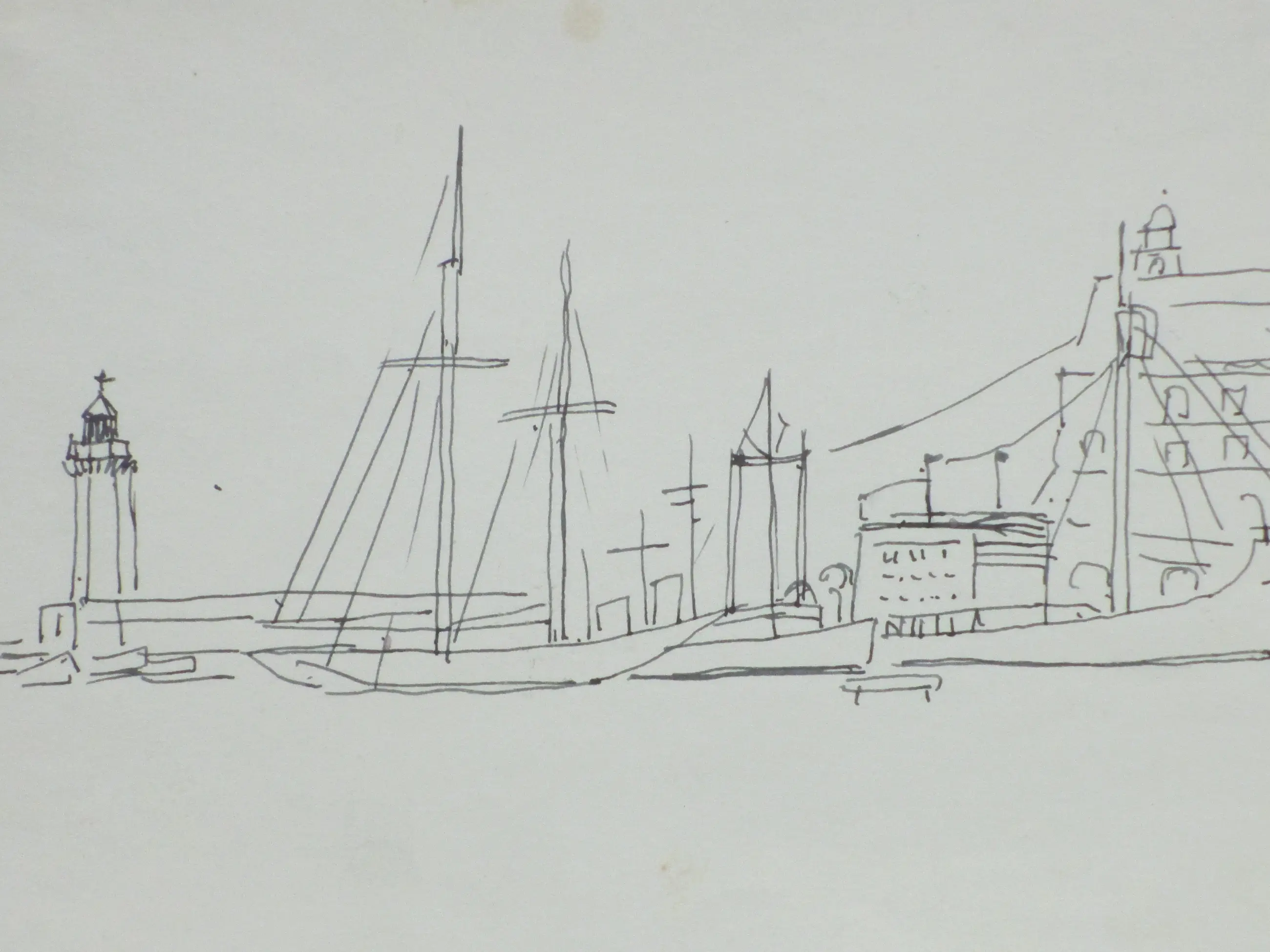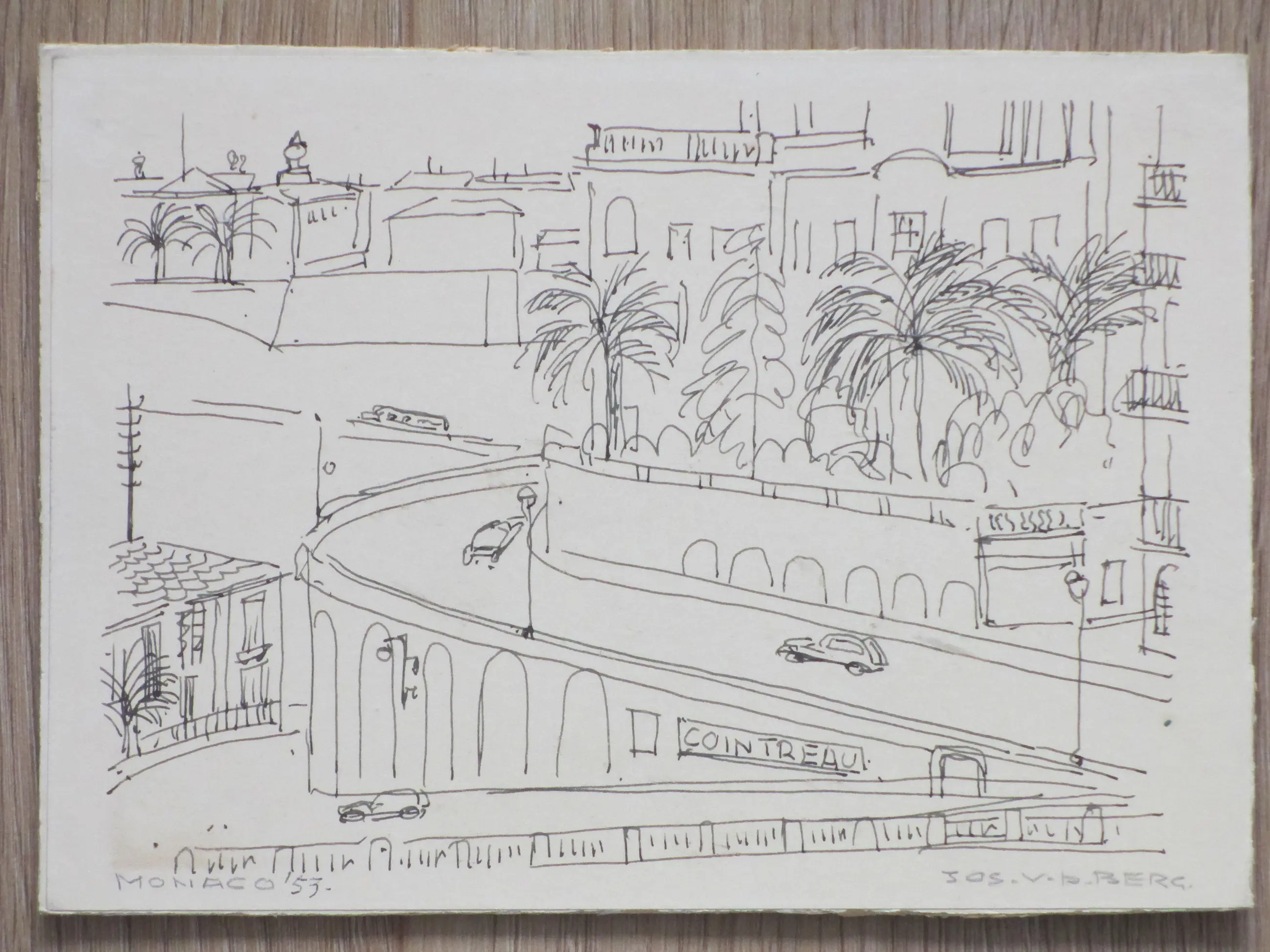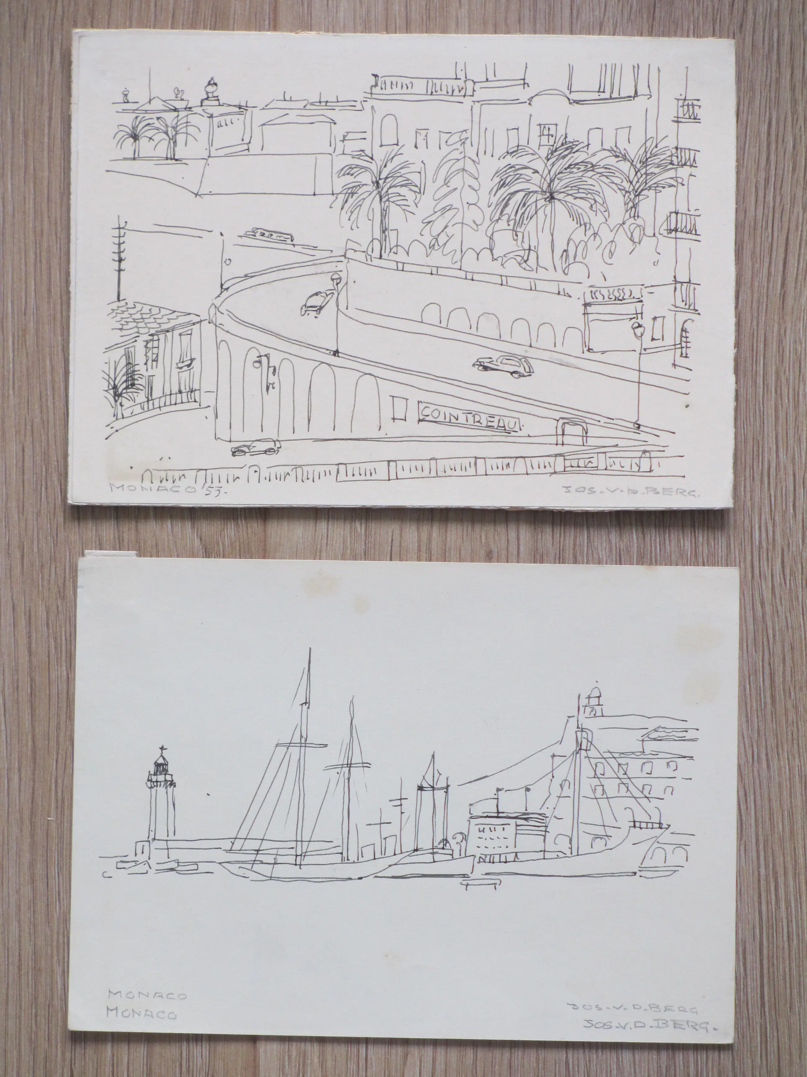Twee tekeningen door Jos van den Berg Voorstellingen van een stads- en een havengezicht van Monaco Beiden losbladig, bladmaten 15x20 Beiden gesigneerd in potlood r.o.: 'Jos v.d. Berg' Stadsgezicht getiteld en gedateerd l.o.: 'Monaco '53' Authenticiteit volledig gegarandeerd