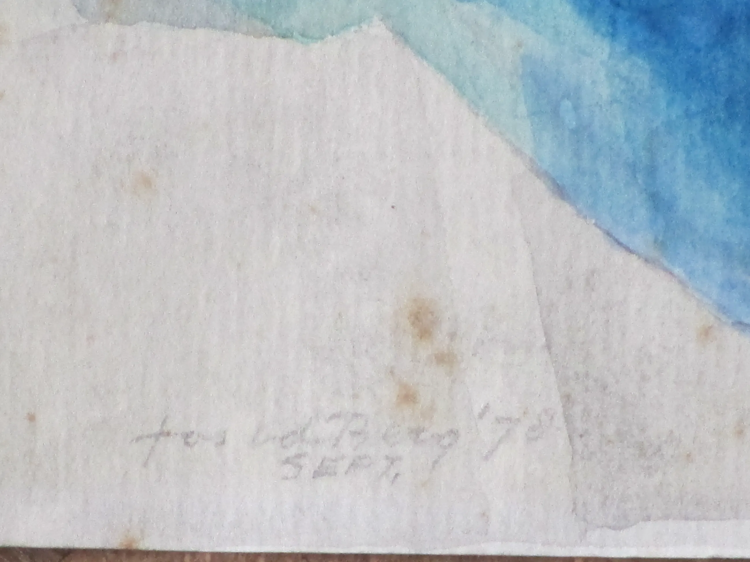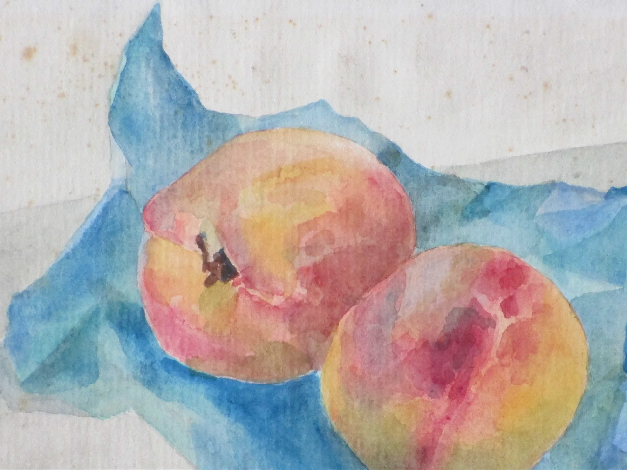 Aquarel door Jos van den Berg Voorstelling van twee perziken op een tafel Losbladig, beeldmaat 14x19 Gesigneerd en gedateerd in potlood l.o.: 'Jos vd Berg '78 Sept.' Eén van de laatste werken van Jos van den Berg, aangezien hij in 1978 overleed. Authenticiteit volledig gegarandeerd