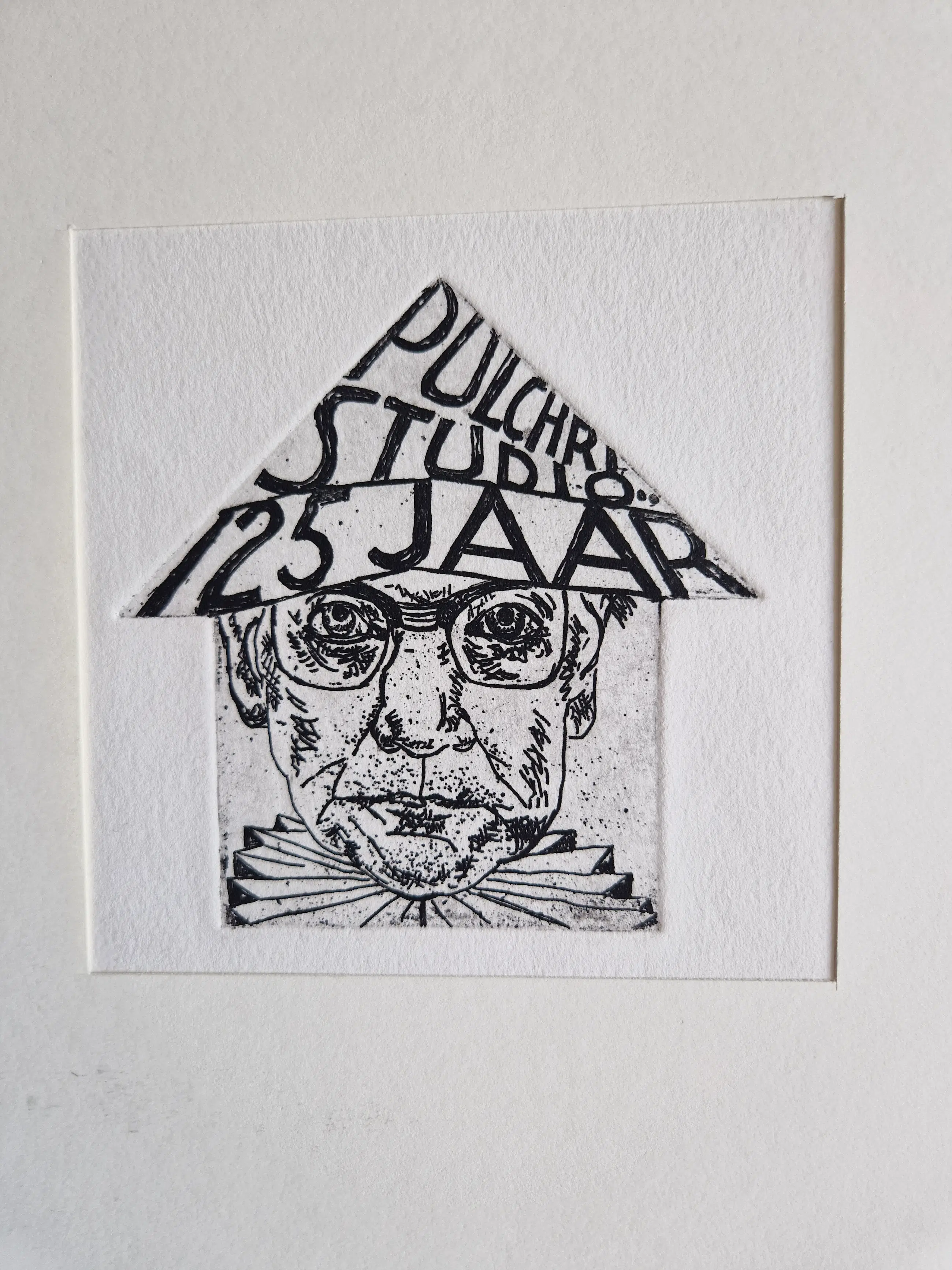 - Fraai vierluik bestaande uit 4 etsen (zelfportret / zelfportret met feestmuts / landschap Thorn Limburg / de Waal). Allemaal unica exemplaren en in zeer goede conditie. Verschillende formaten gemiddeld 10x15cm. Het gehele blad meet 40x50cm (BxH)