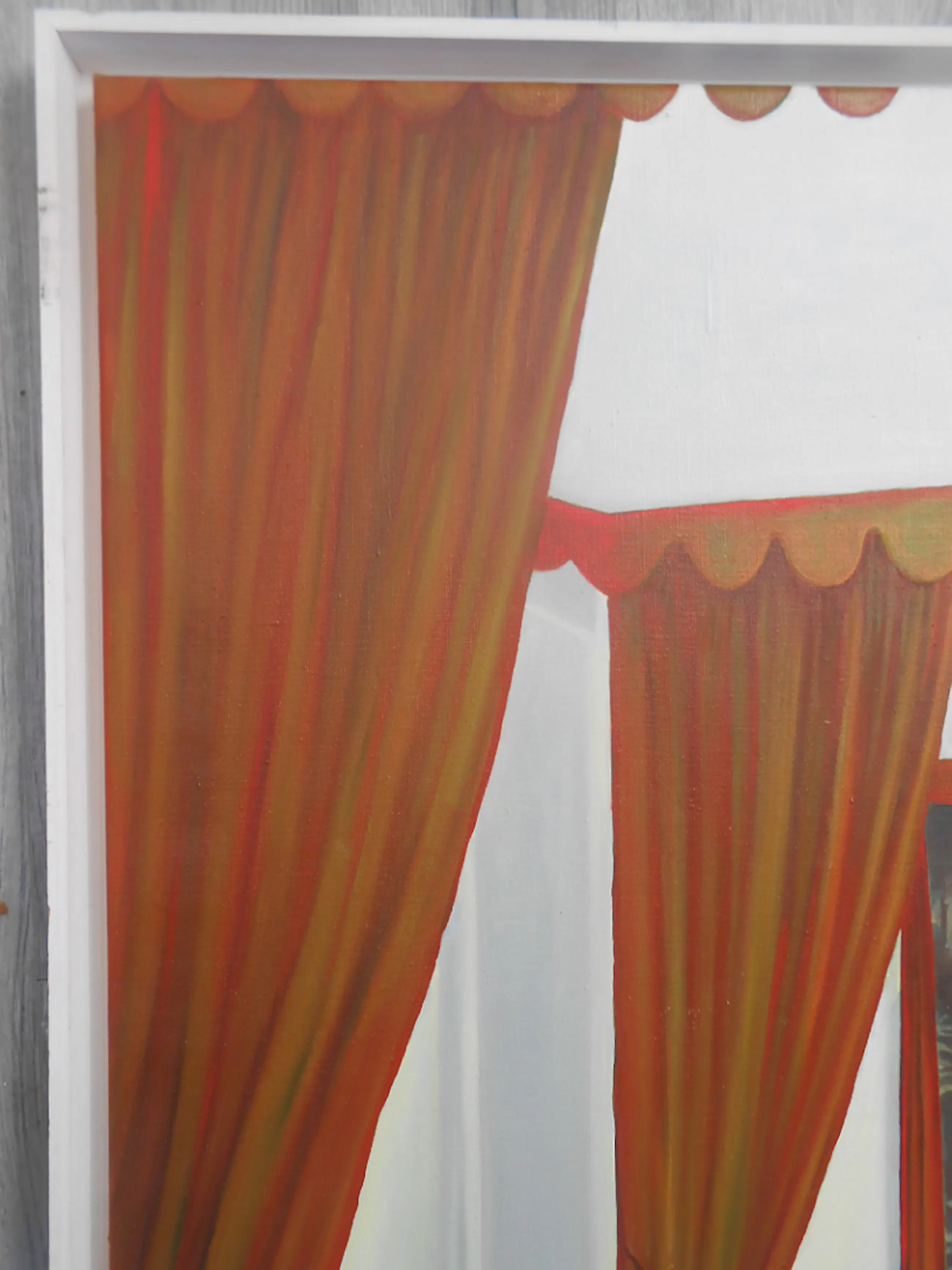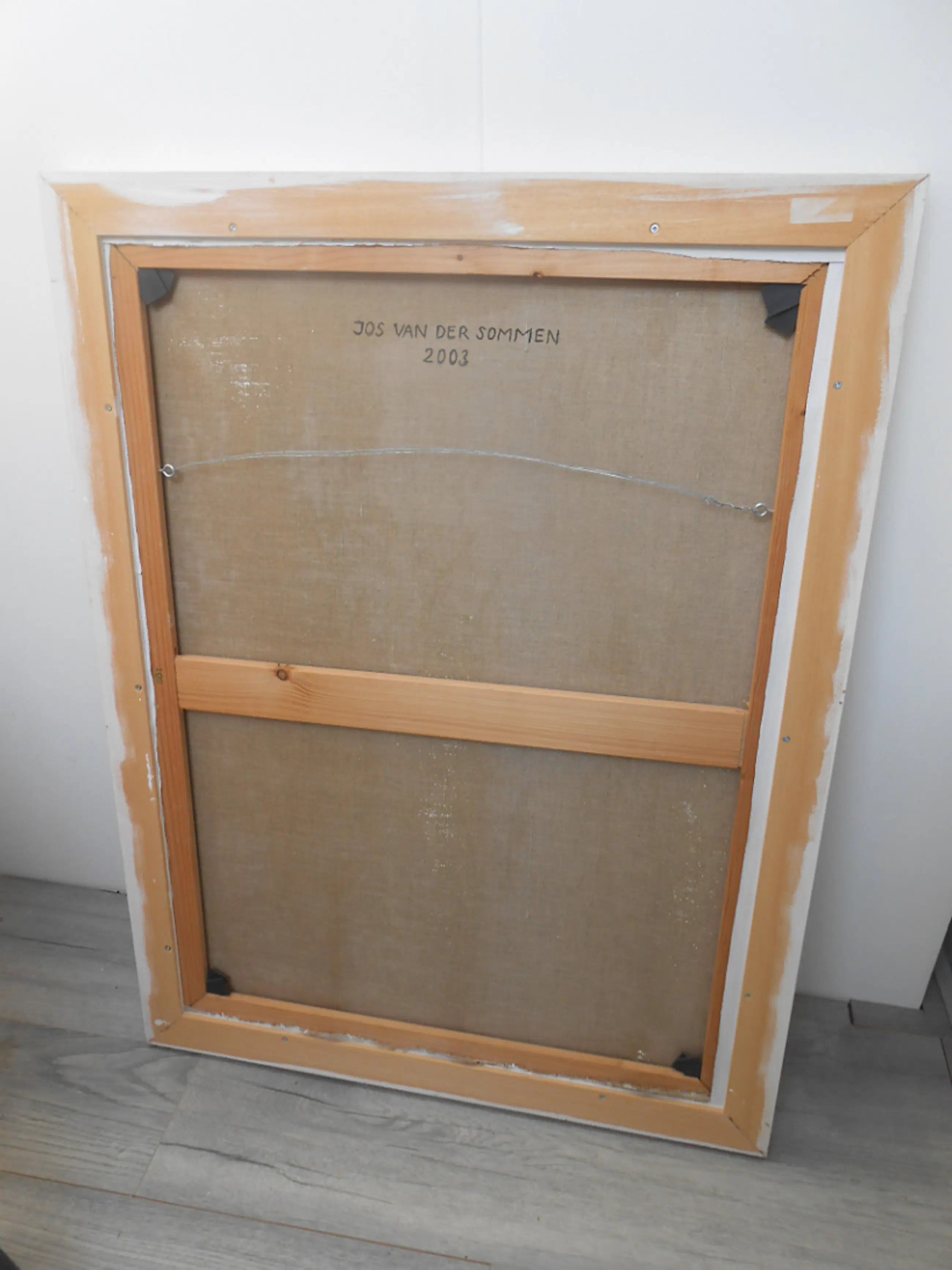 Olieverfschilderij in houten baklijst uit 2003. In goede staat, licht craquelé in de achtergrond. Zwarte vlekjes op de wit geschilderde baklijst. Werk ,lijst en ophangsysteem compleet, kan zo aan de muur. Dit schilderij met baklijst is te groot voor pakketpost. kan afgehaald worden in Amsterdam. Kan ook bezorgd worden met de auto voor 20 cent p/km. Mooi virtuoos geschilderd, zie detail foto's. "Innerlijk landschap" is opgenomen in de online catalogus op de website van de kunstenaar. Jos van der Sommen wordt vertegenwoordigd door de jan van hoof galerie in Den Bosch. ( recente expositie in Galerie van Hoof /Den Bosch najaar 2024).