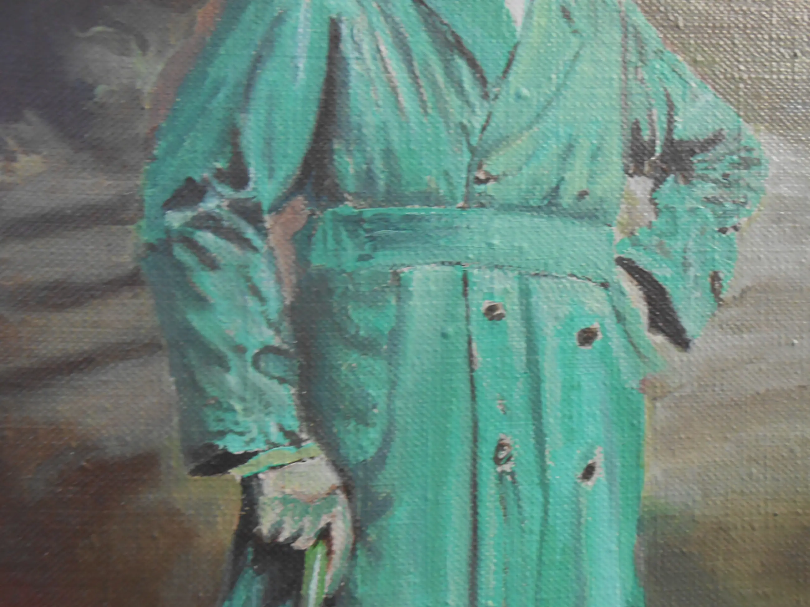 zeer licht craquelé, lijst compleet. Niet vuil, frisse kleuren.