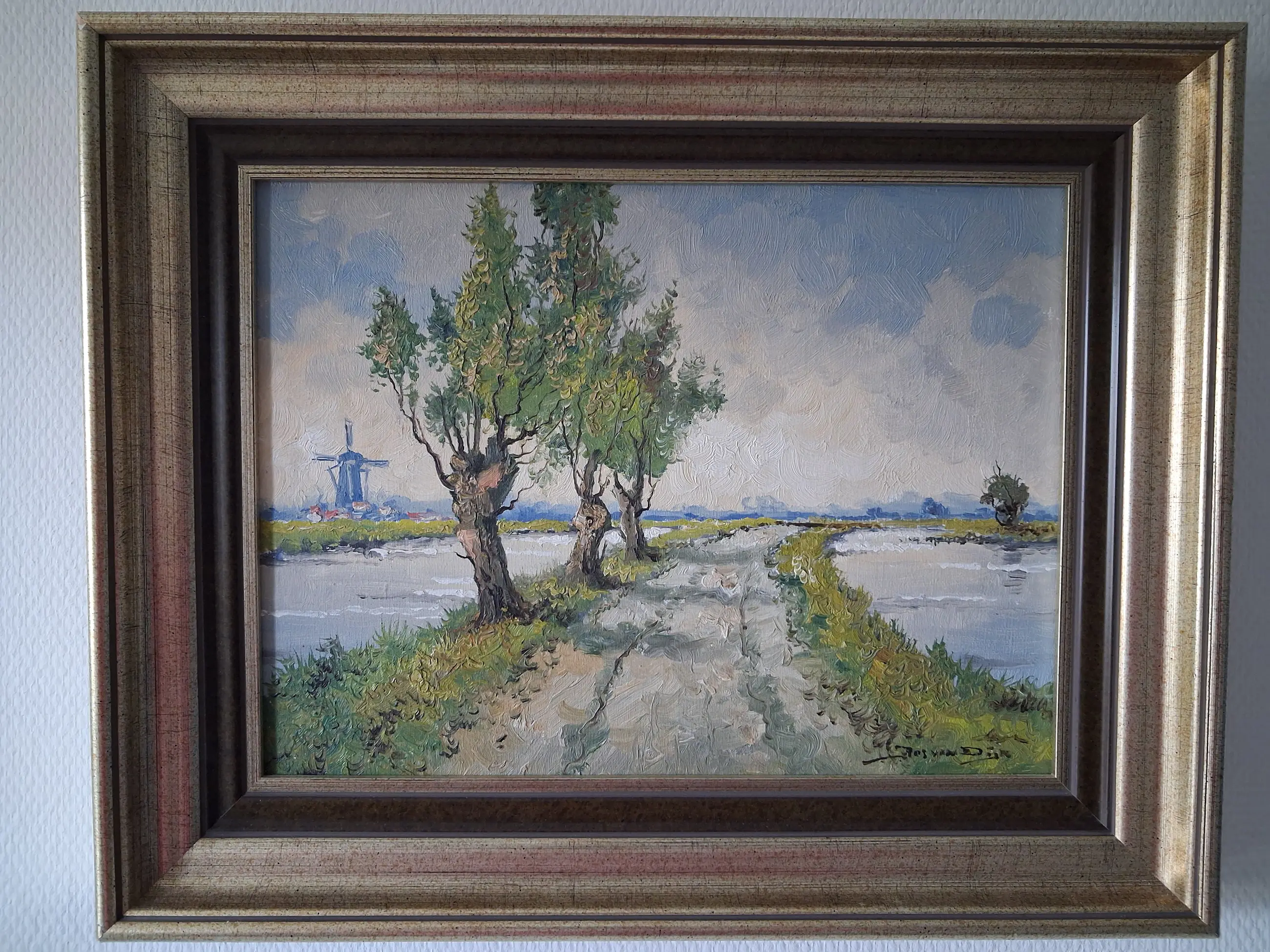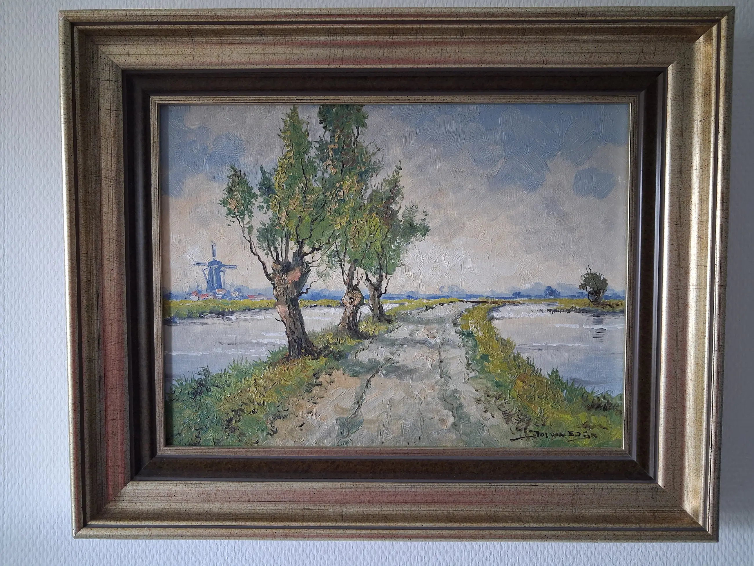 Olieverfschilderij van Jos van Dijk (1913 - 2000) Ongeveer 30 jaar geleden aangeschaft via een kunsthandel in Almelo. Het vetreft een typisch polderlandschap.