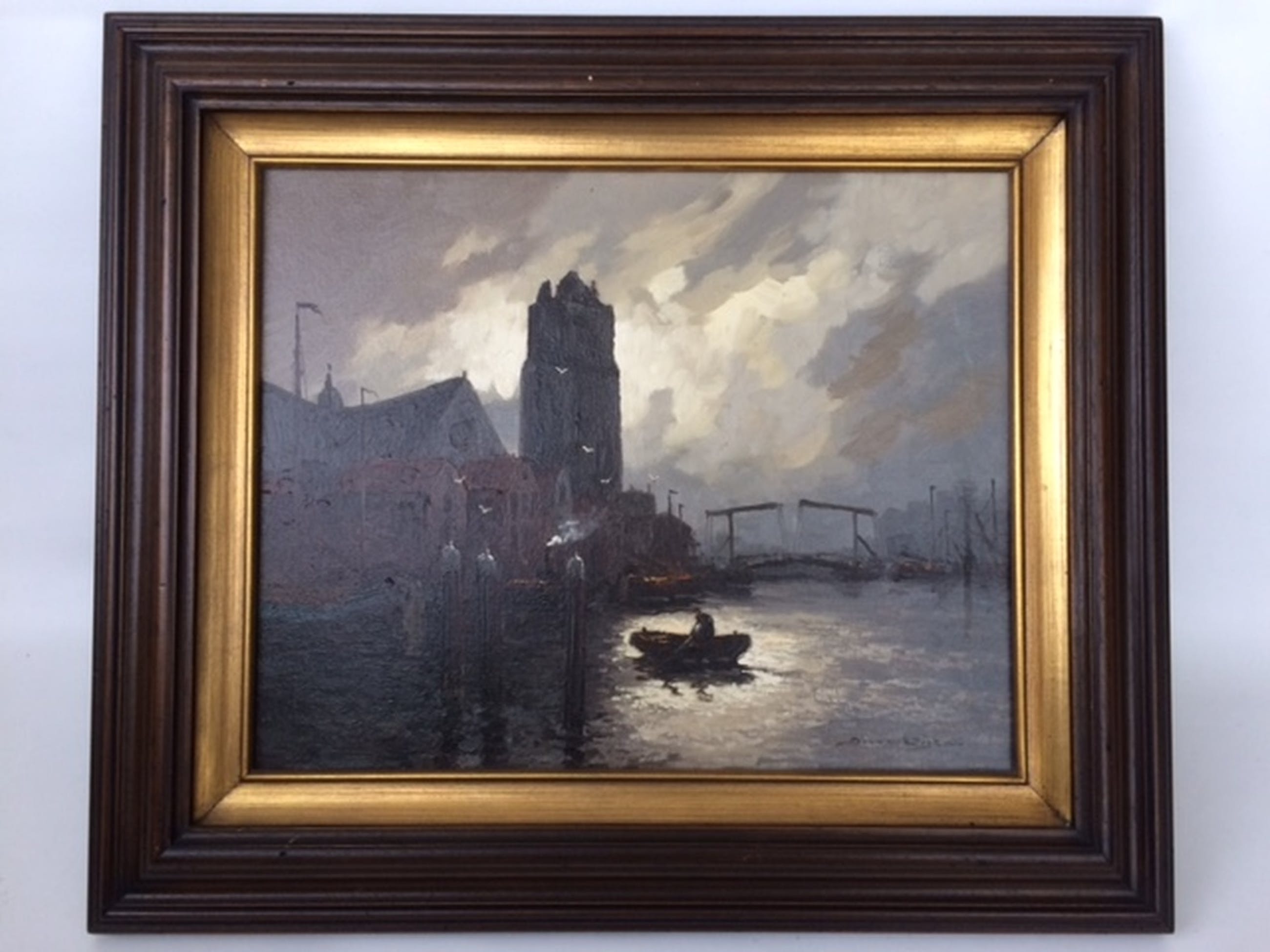 Ingelijst olieverf schilderij van Jos van Dijk. Geboren in 1913 te Bolsward.
