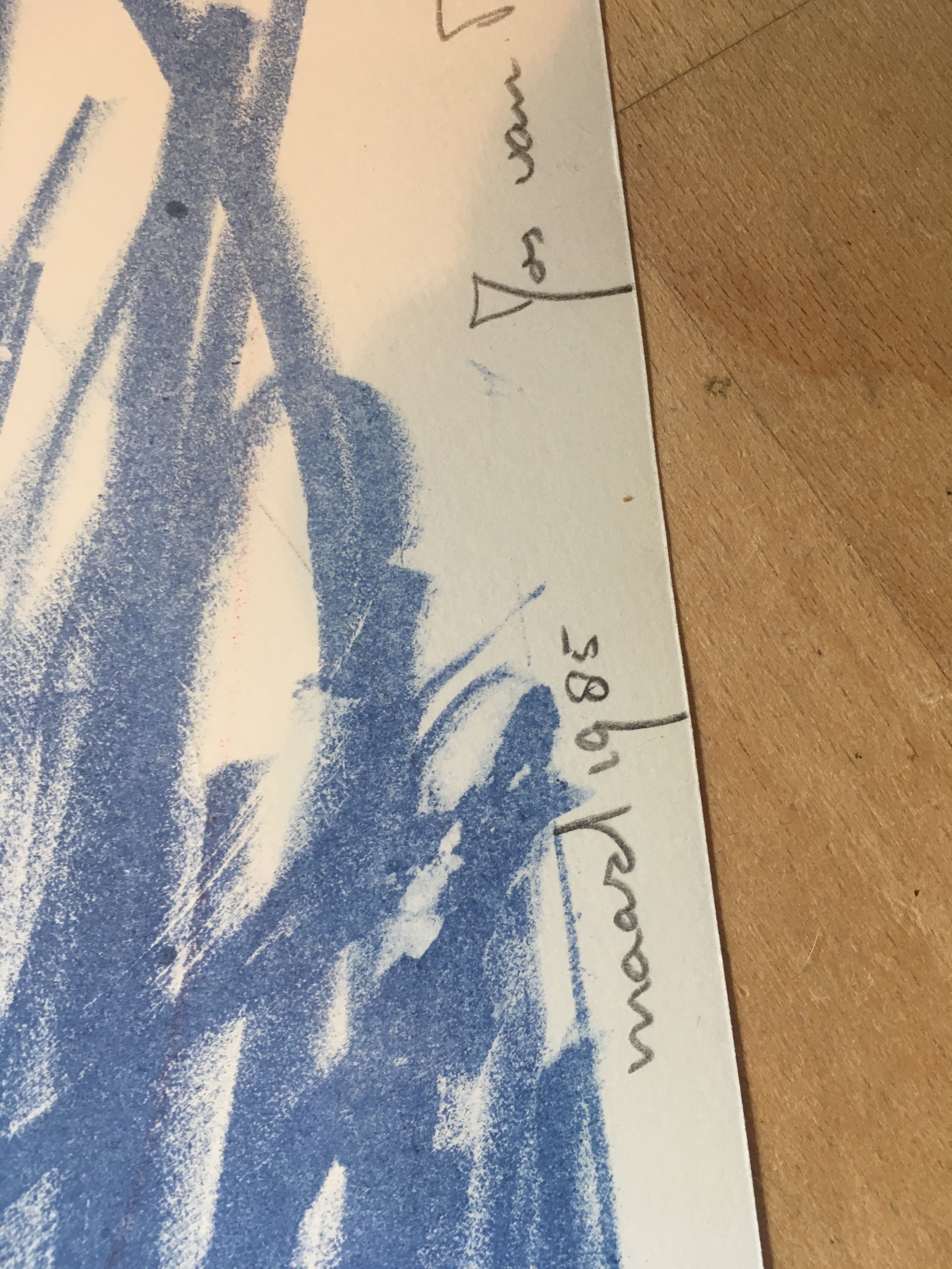 Kleurenlitho. Nr. 32/50, maart 1985. Hoort bij: De gouden map. Uitgever: Arnhem : Stichting Plaatsmaken, 1985. - Uitgave bij de gelijknamige tentoonstelling in het Gemeentemuseum Arnhem, van 14-04 t/m 19-05-1985 (C003609).