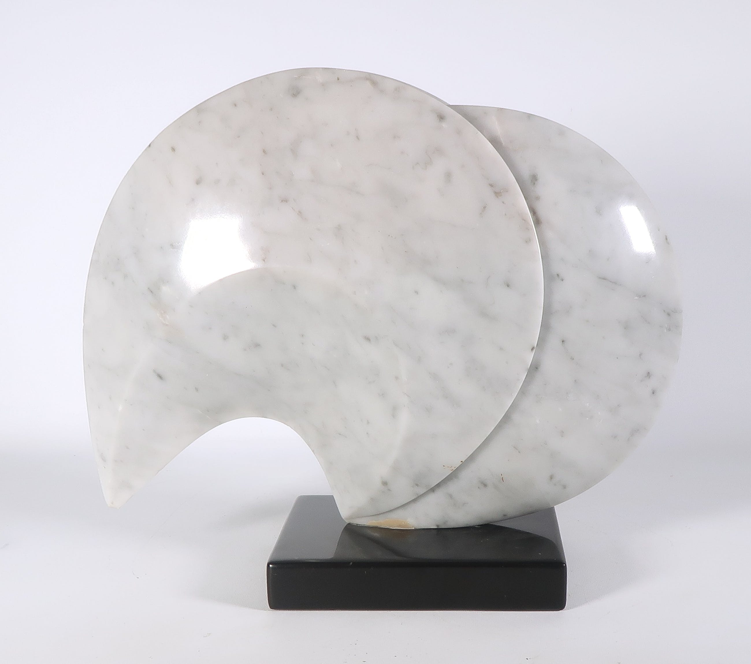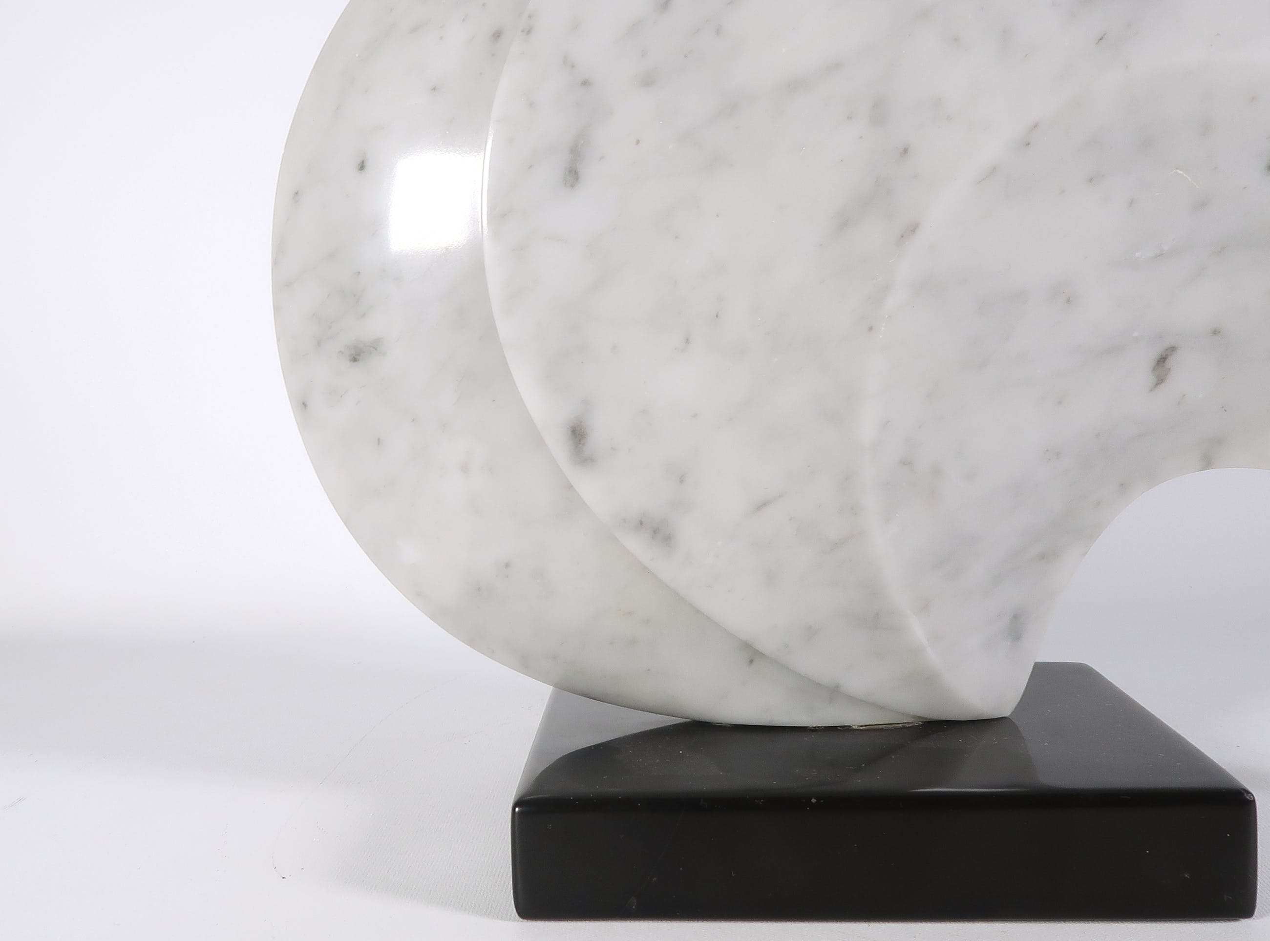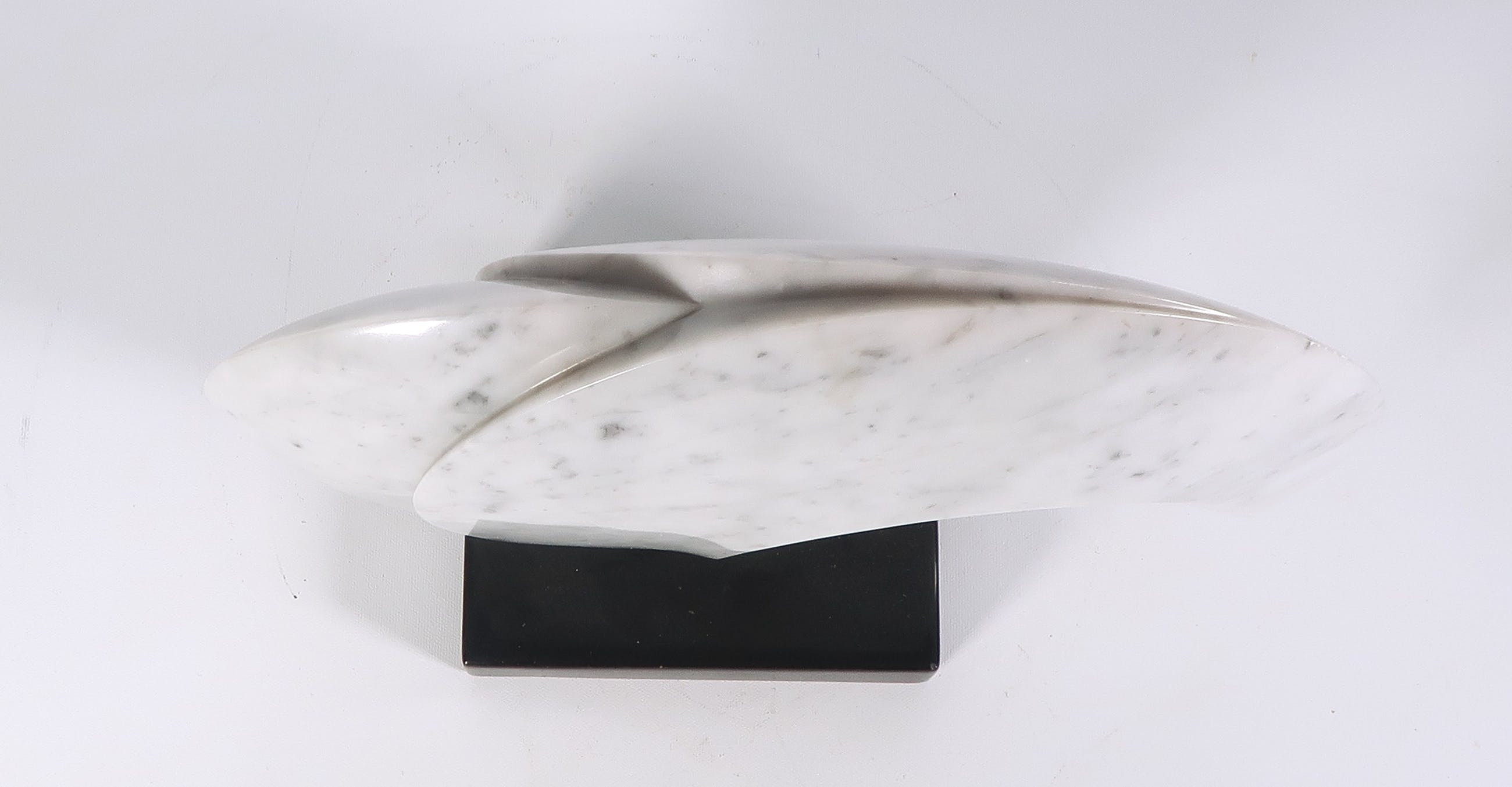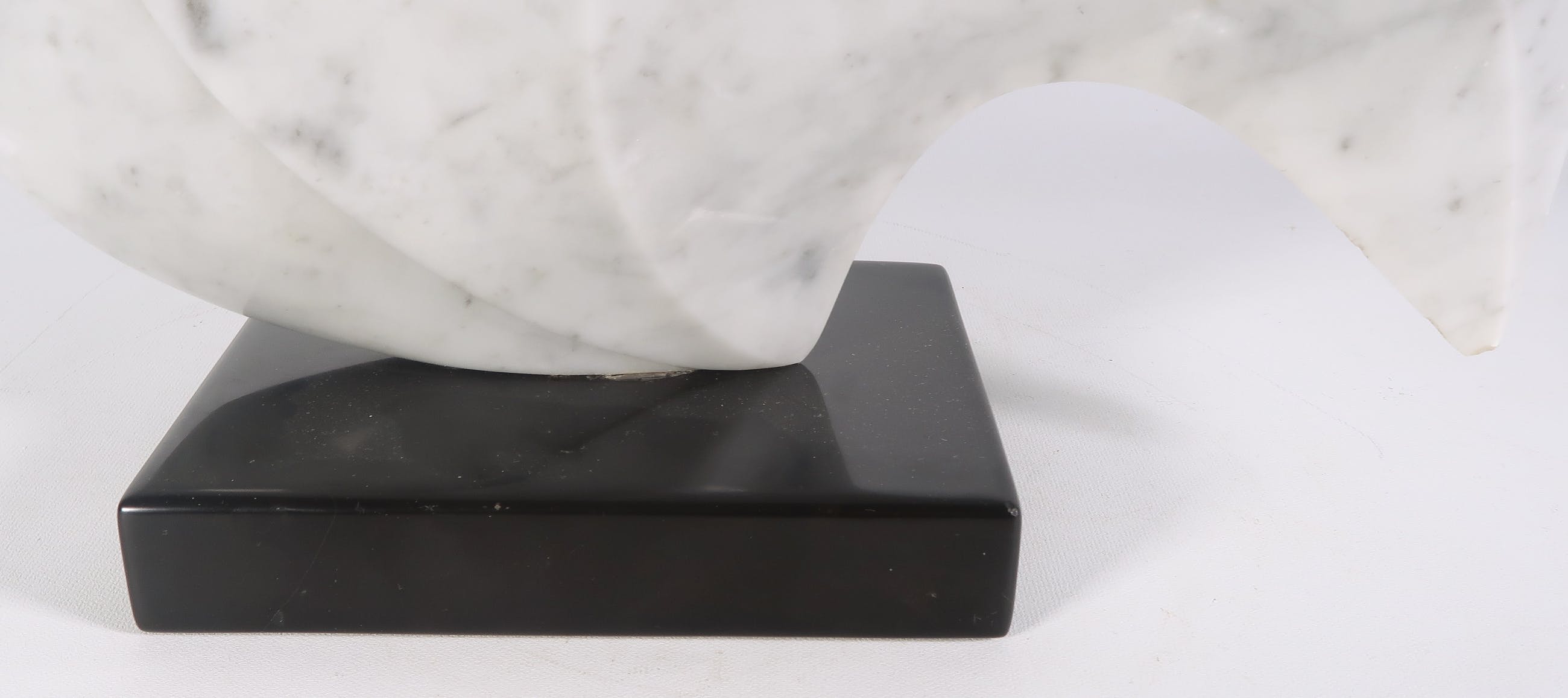 | Licht beschadigd langs de buitenste randen van de vorm, met name aan de uiterste punt. Mogelijke een kleine opvulling of oneffenheid in het marmer onder bij de voet (op foto zichtbaar) | |
