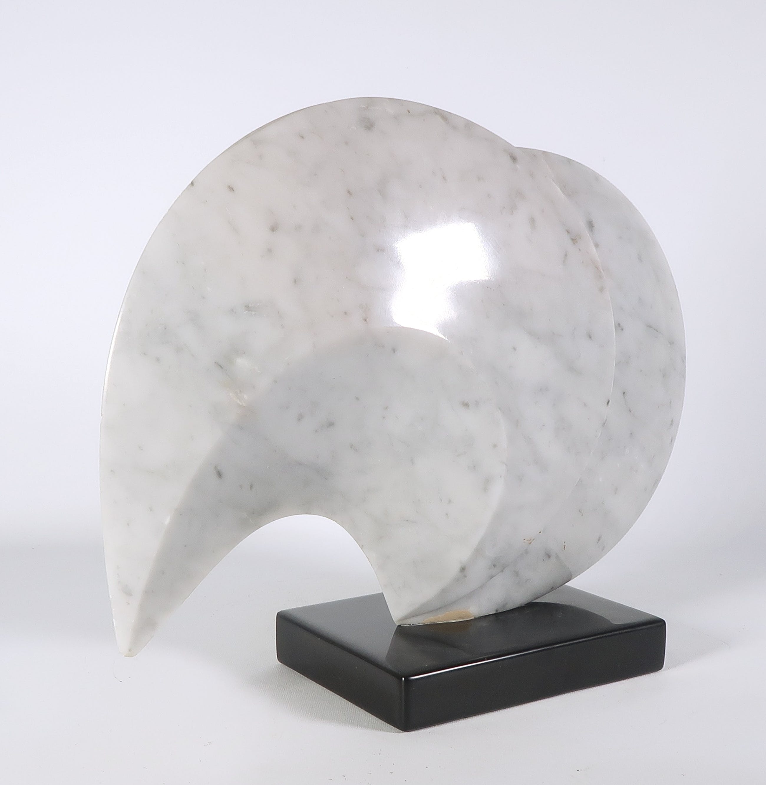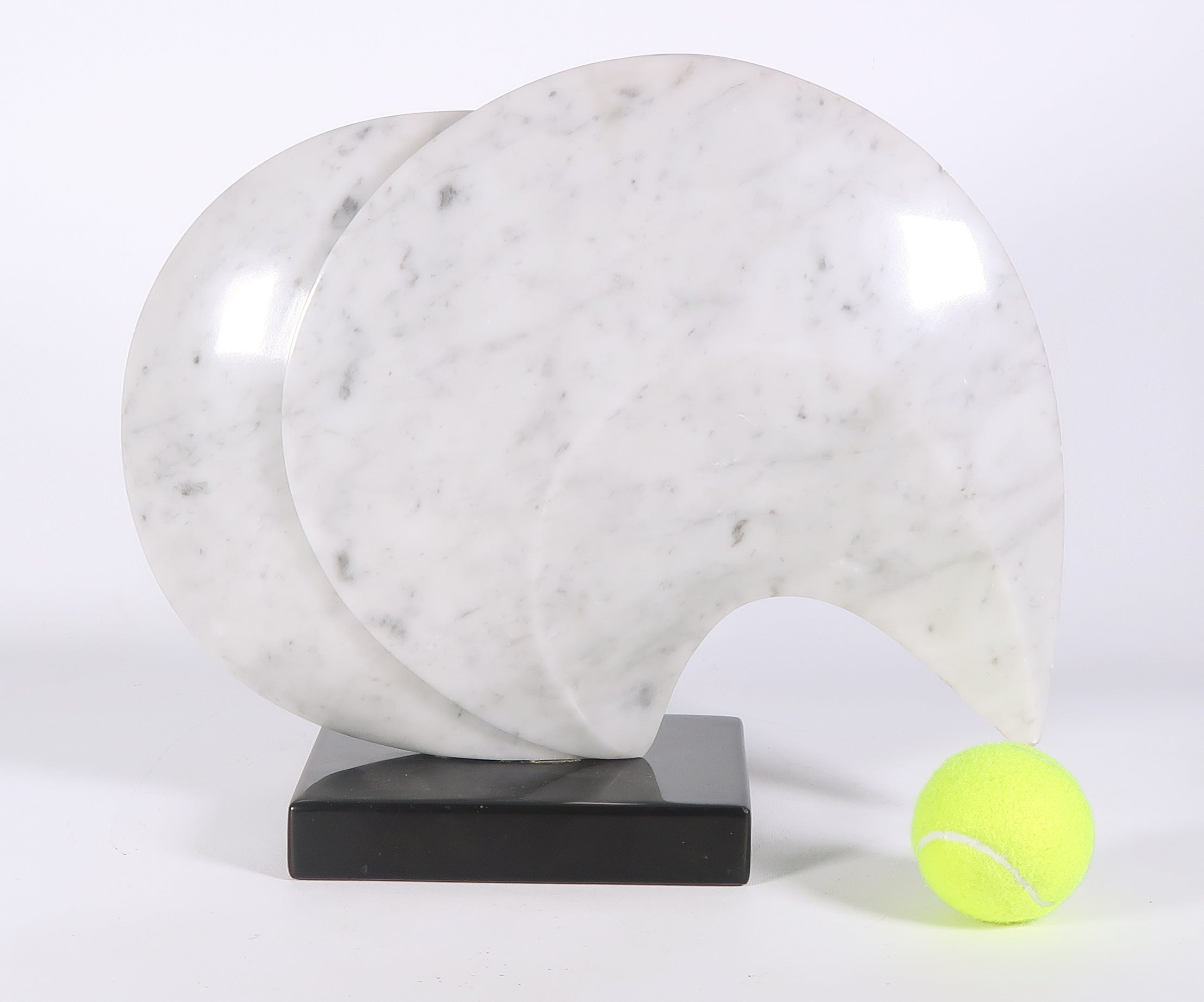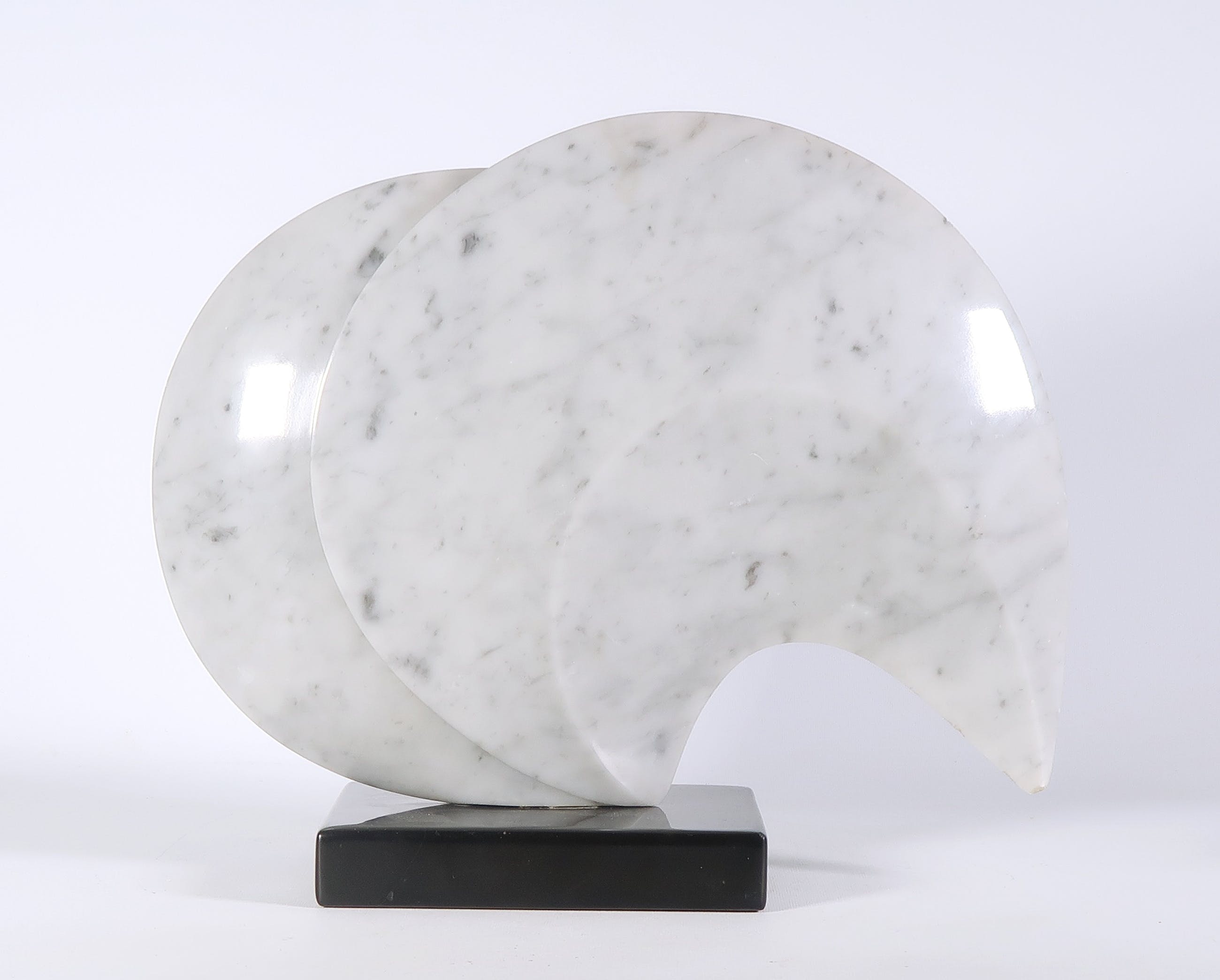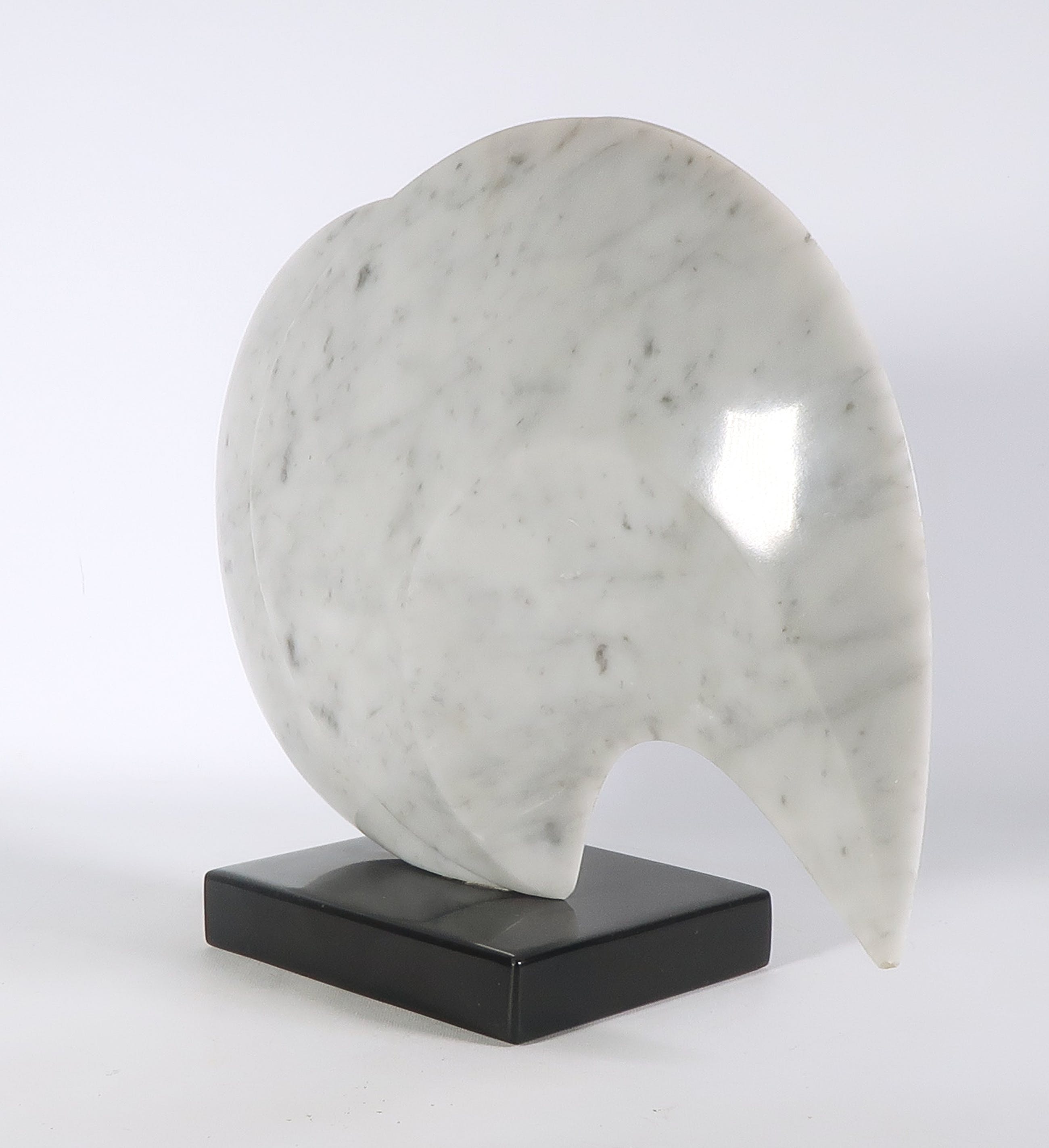 | Licht beschadigd langs de buitenste randen van de vorm, met name aan de uiterste punt. Mogelijke een kleine opvulling of oneffenheid in het marmer onder bij de voet (op foto zichtbaar) | |