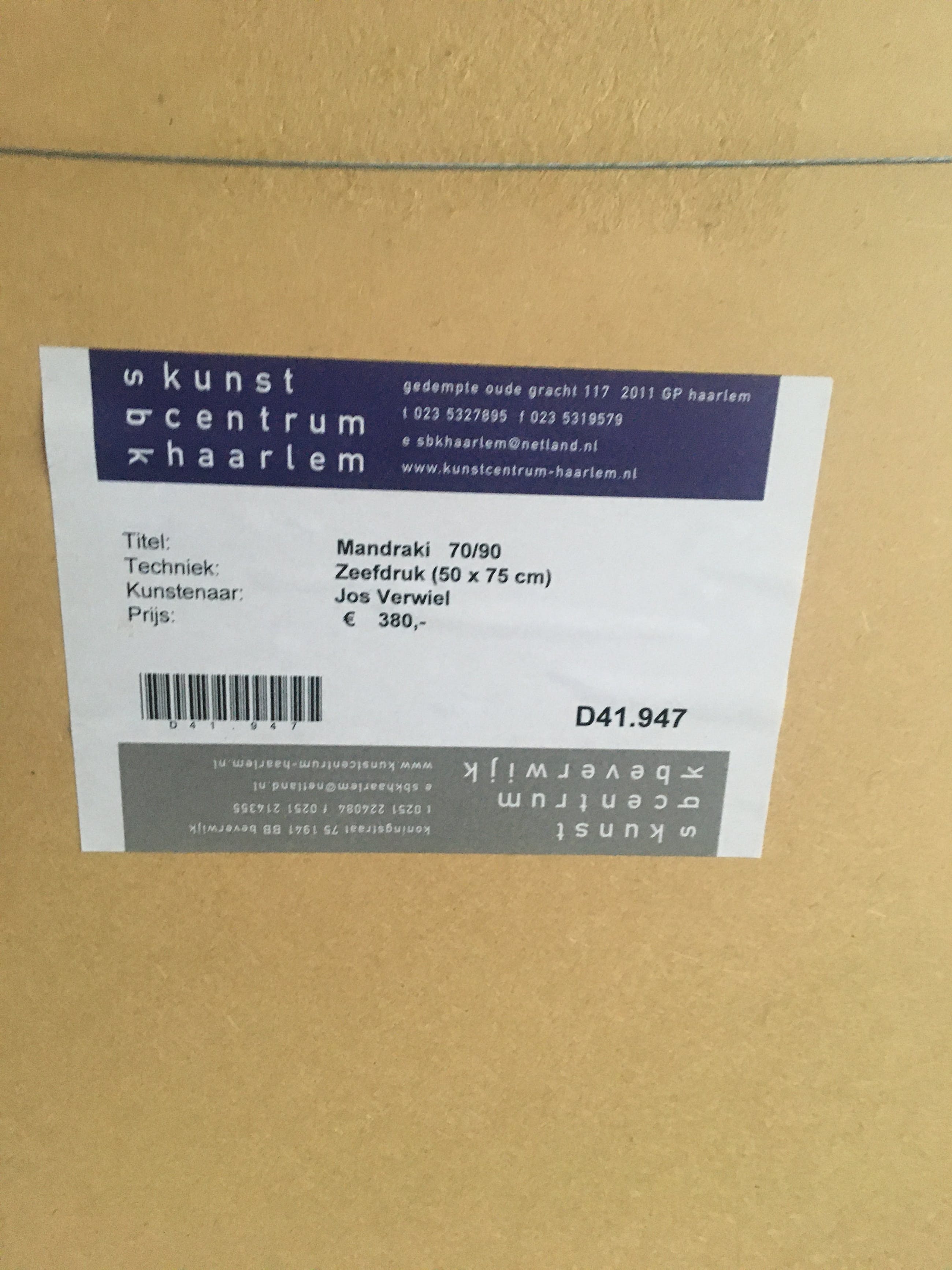 Prachtige zeefdruk van Jos Verwiel. Oplage nummer 70 van 90. Mandraki.