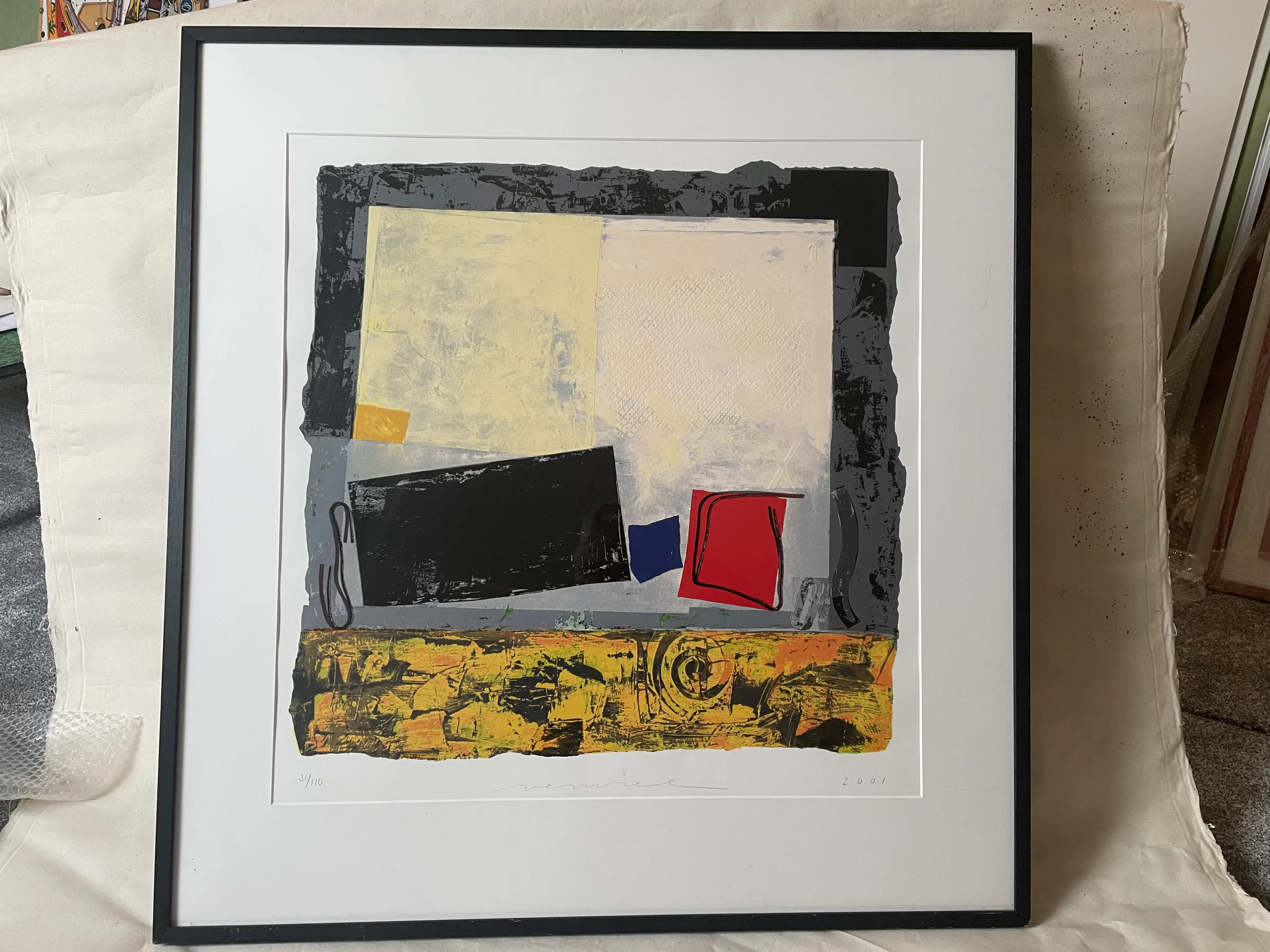Een prachtige Jos Verwiel. Keurig ingelijst - Het werk maakte eerder deel uit van de eigen Kunstveiling collectie. Kenmerken: Jaartal - 2001Techniek - ZeefdrukDrager - PapierIngelijst - IngelijstAfmetingen - 76 cm x 73 cm (h x b)Lijst - 103 cm x 98 cm (h x b)Gesigneerd - Hand-gesigneerdOplage - 31/110 Ophalen in Leiderdorp heeft de voorkeur - Anders verzenden via Swift koeriersdienst (45,50) | |