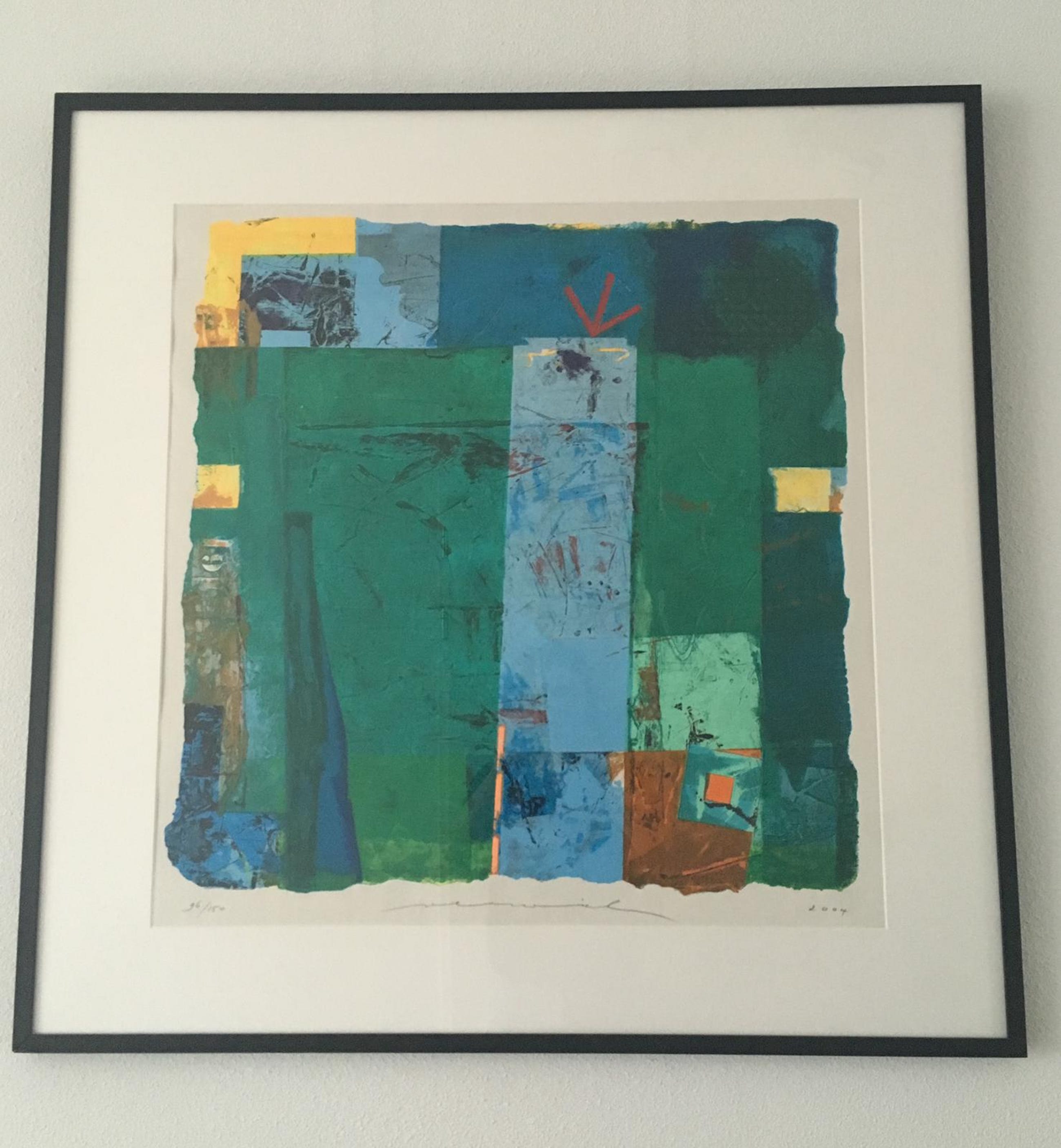 Prachtige zeefdruk, 96/150, 2004. Zuurvrij ingelijst in Barthlijst van 100x100 cm.