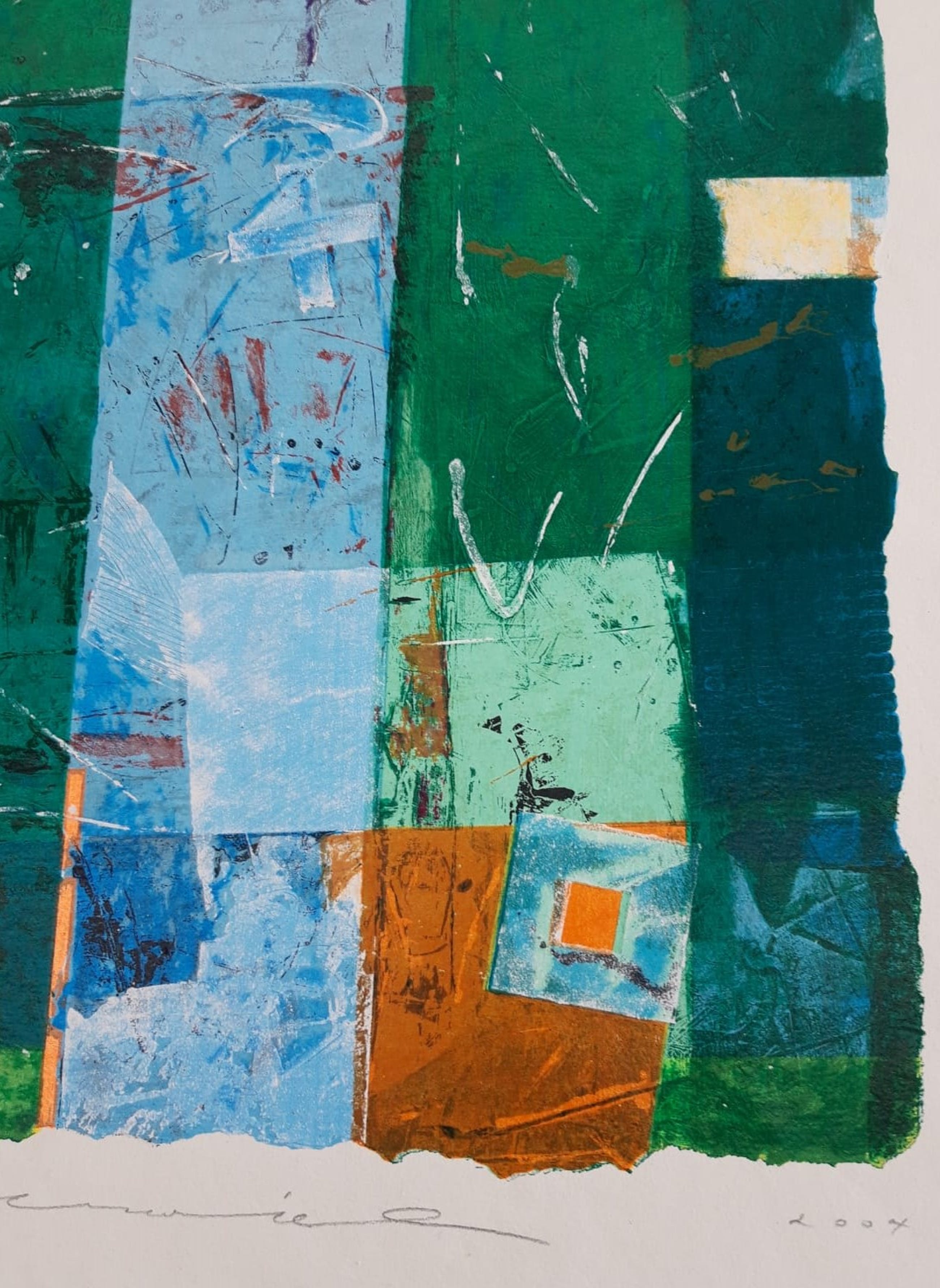 Jos Verwiel (1954) studeerde aan de Academie voor Beeldende Vorming in Tilburg en de Koninklijke Academie voor Kunst en Vormgeving in Den Bosch. Ooit begonnen met keramiek kwam hij in de jaren negentig via beeldhouwen en tekenen bij de schilderkunst terecht. Zijn schijnbaar abstracte doeken tonen de robuuste vormen, kleuren en structuren van zijn omgeving. De verschillende kleurlagen worden nooit egaal aangebracht en uit weggekraste lagen komen letters en cijfers tevoorschijn, als een subtiele verwijzing naar de menselijke beschaving. Verwiel gebruikt echter niet alleen de schildertechniek. Hij past ook vaak een collagetechniek toe waarbij hij papier, krantenknipsels, stukken zeildoek en reliëfpatronen op de ondergrond aanbrengt.