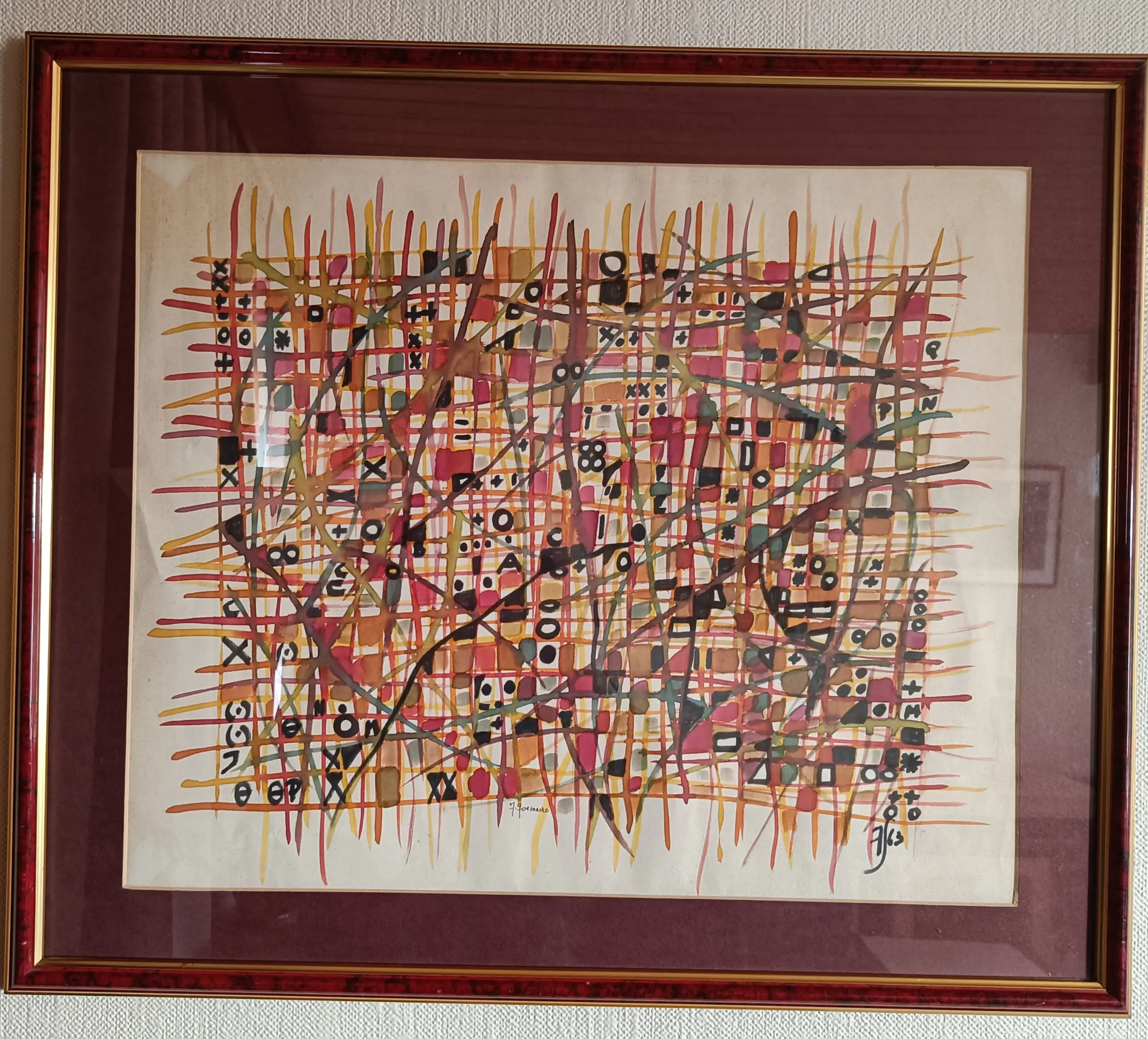 Origineel schilderij uit 1963 in deze originele lijst Zeer goede staat Hoofdtechniek Aqua
