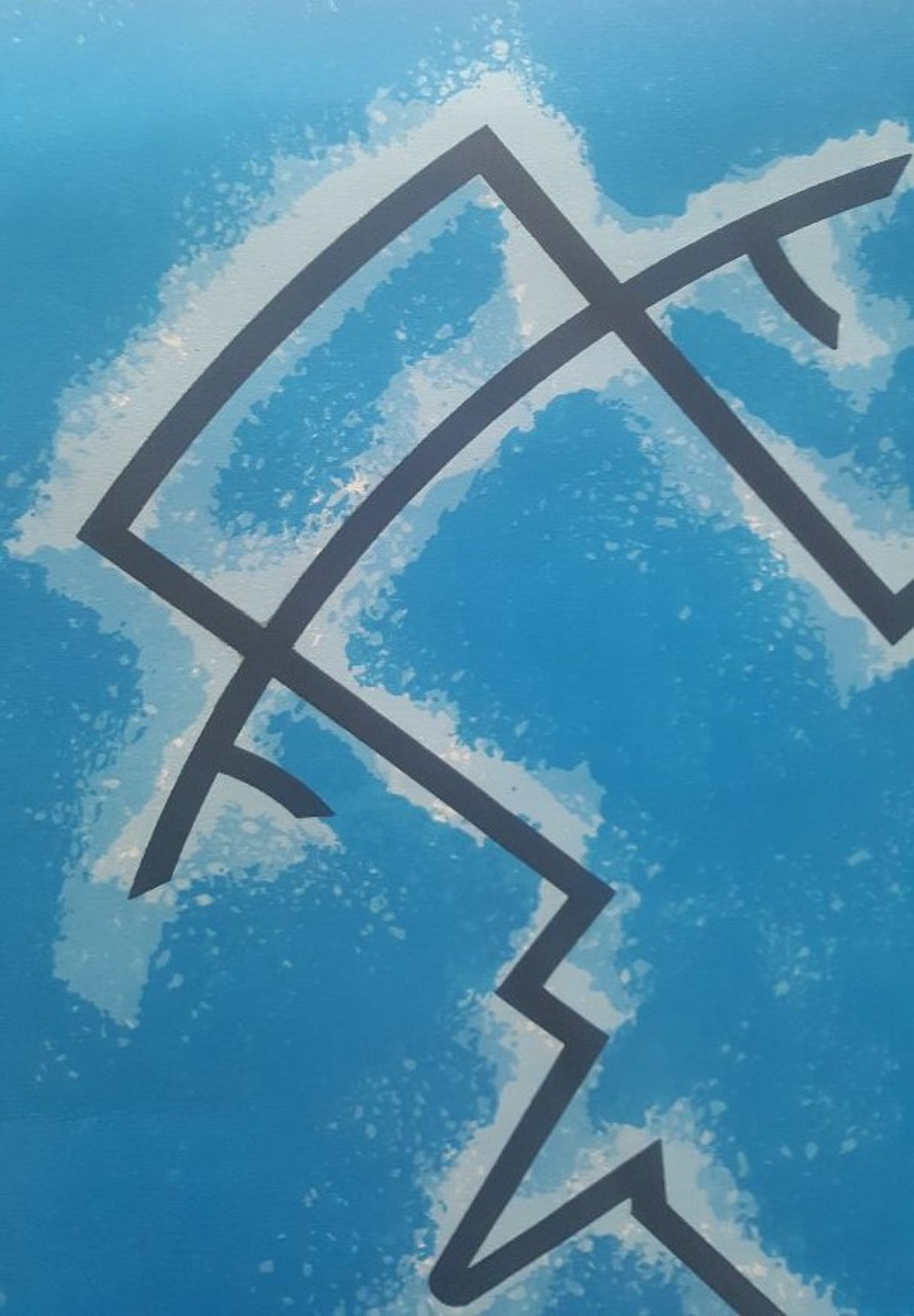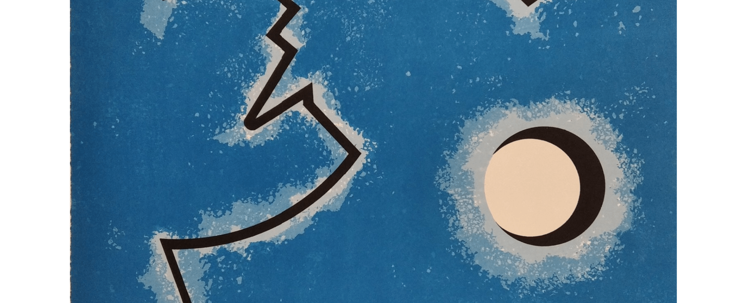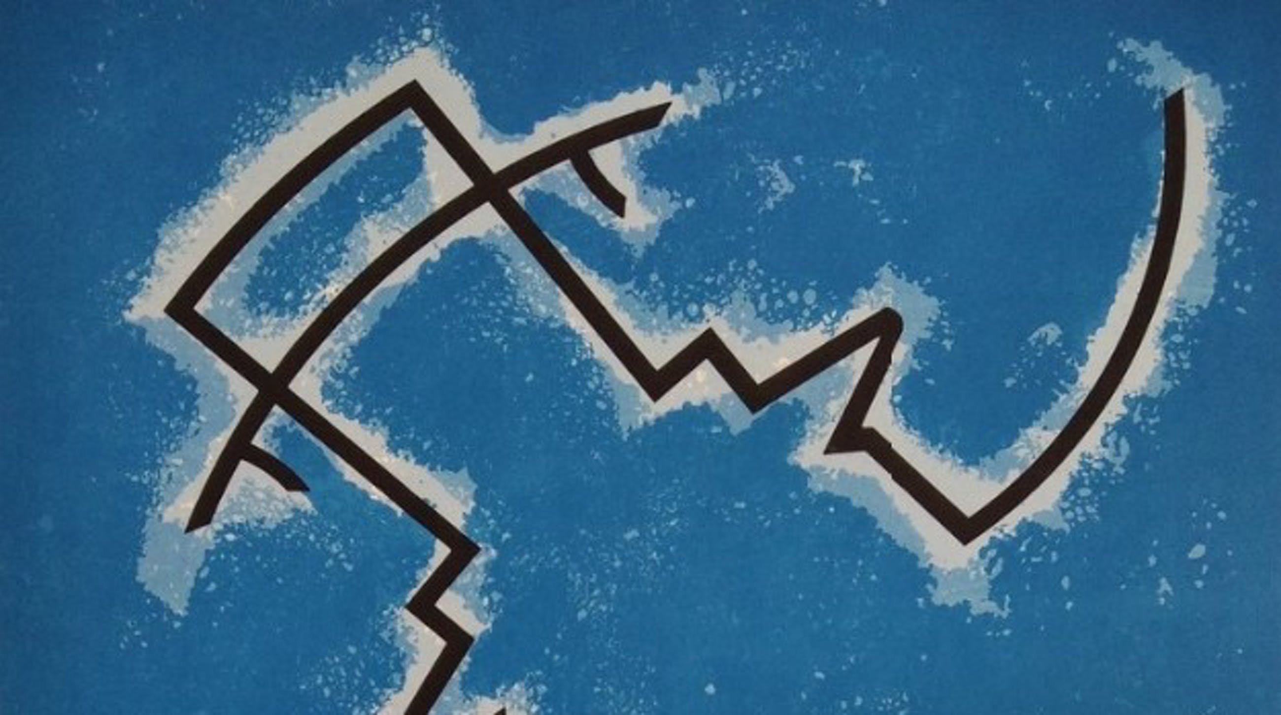 José Luis Pascual over de litho: ‘La línea negra de la izquierda es una mujer, la de la derecha es el rostro de un hombre. La línea dibuja los dos personajes. Es un encuentro’.
