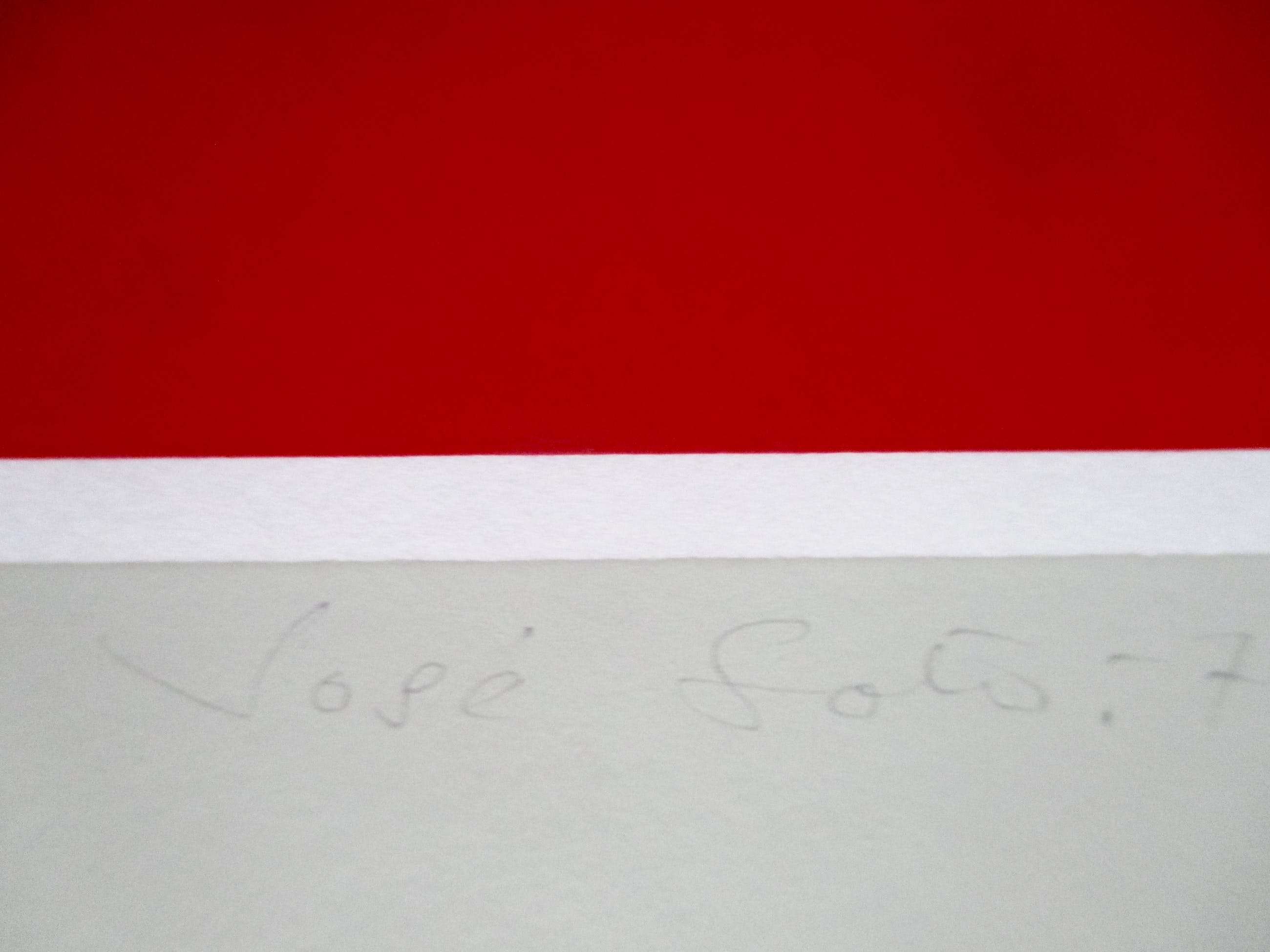 Zeefdruk van Jose Soto, gesigneerd, gedateerd en genummerd in potlood.
