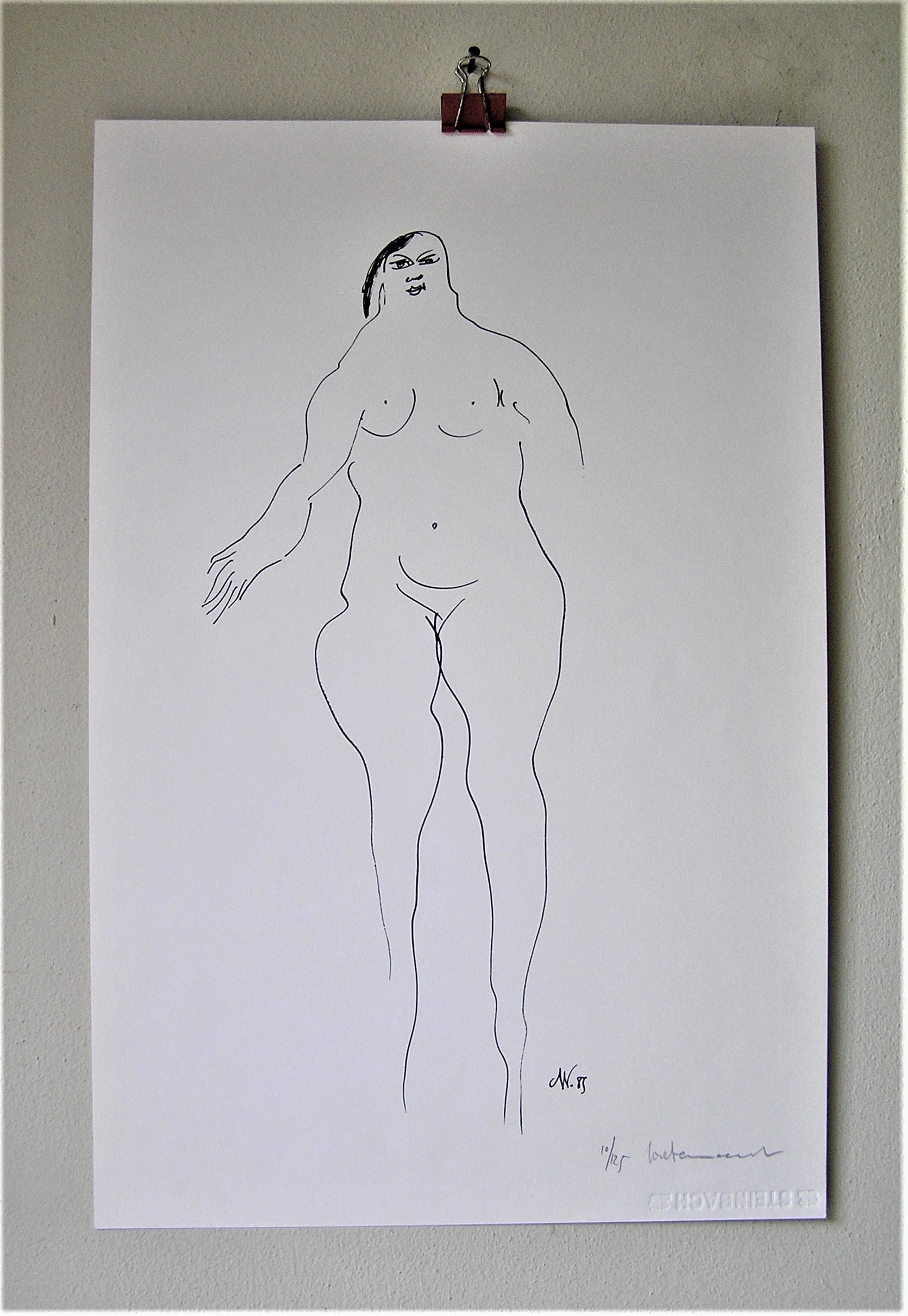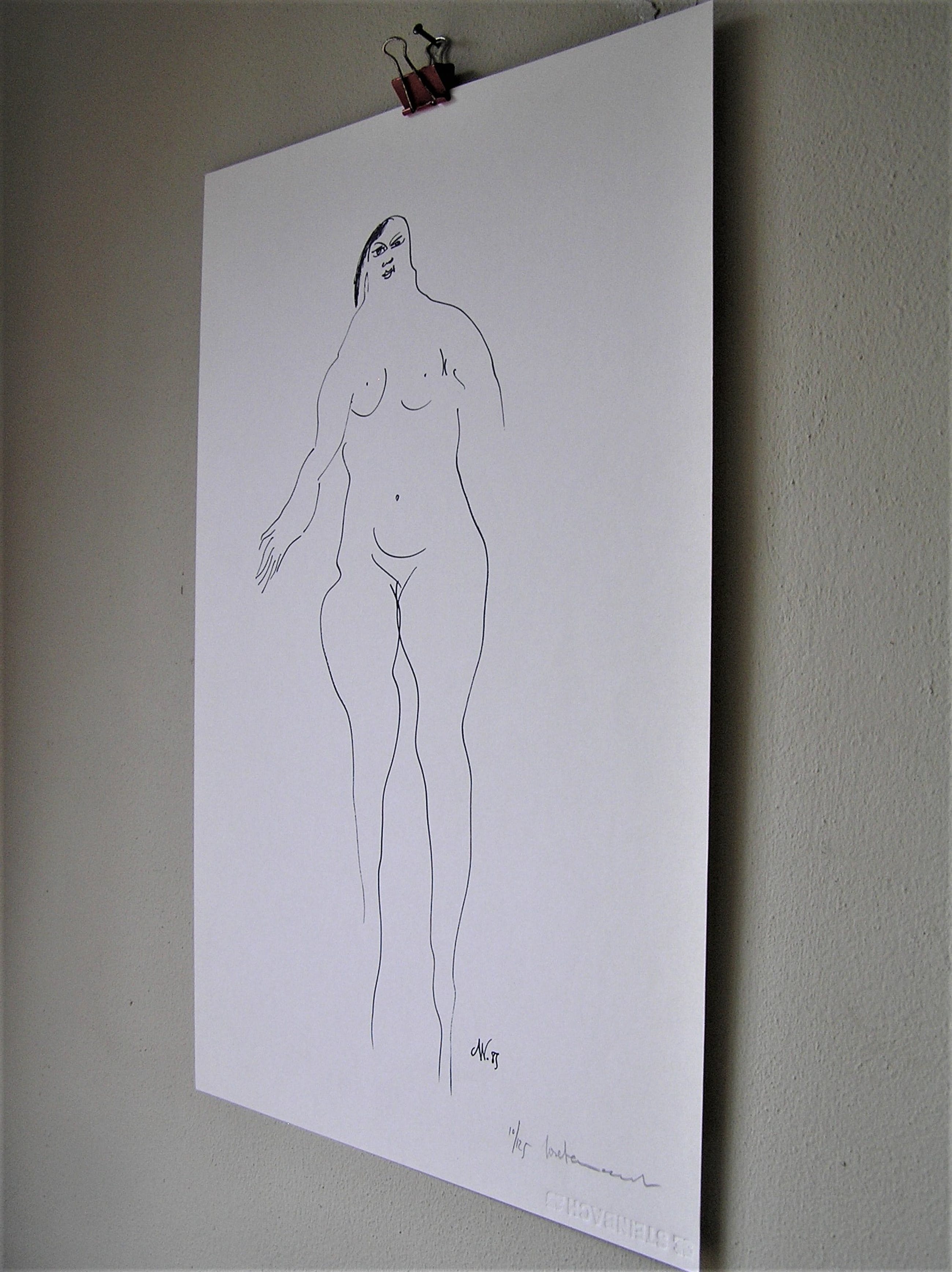 Aansprekende steendruk van José Vermeersch (1922 – 1997) op kwaliteitsvol wit papier. Voorstelling: vrouwelijk naakt. Zeldzaam.