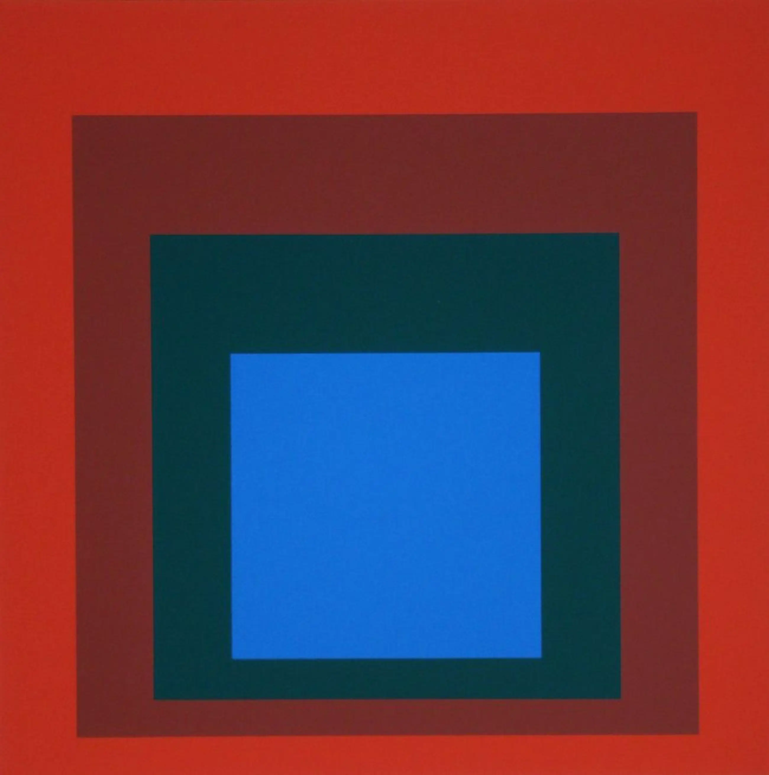 Josef Albers - Homage to the Square - Blue + darkgreen with 2 reds - Zeefdruk - 1971 - Verkocht