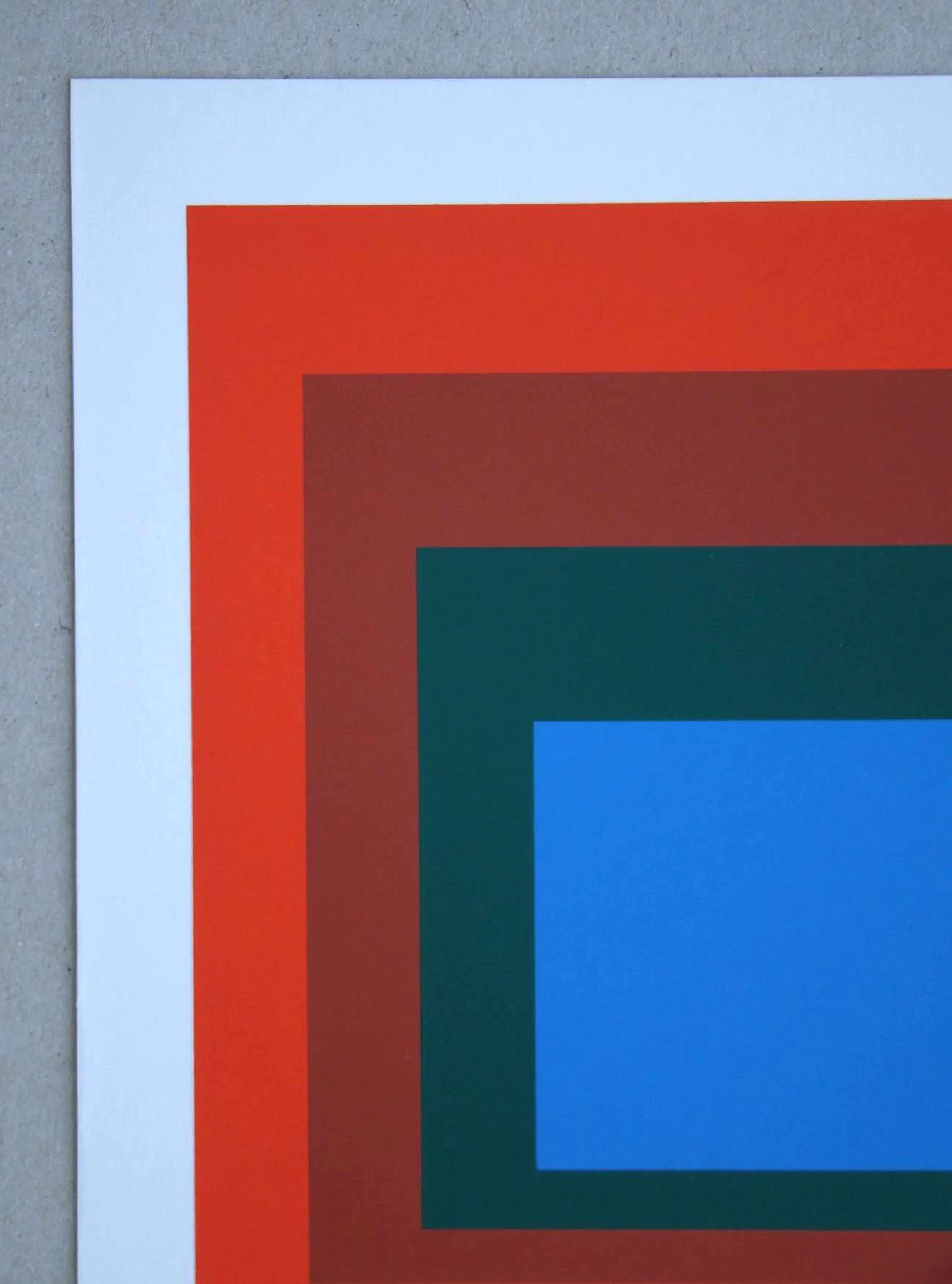 Josef Albers - Homage to the Square - Blue + darkgreen with 2 reds - Zeefdruk - 1971 kopen? Bied vanaf 100!