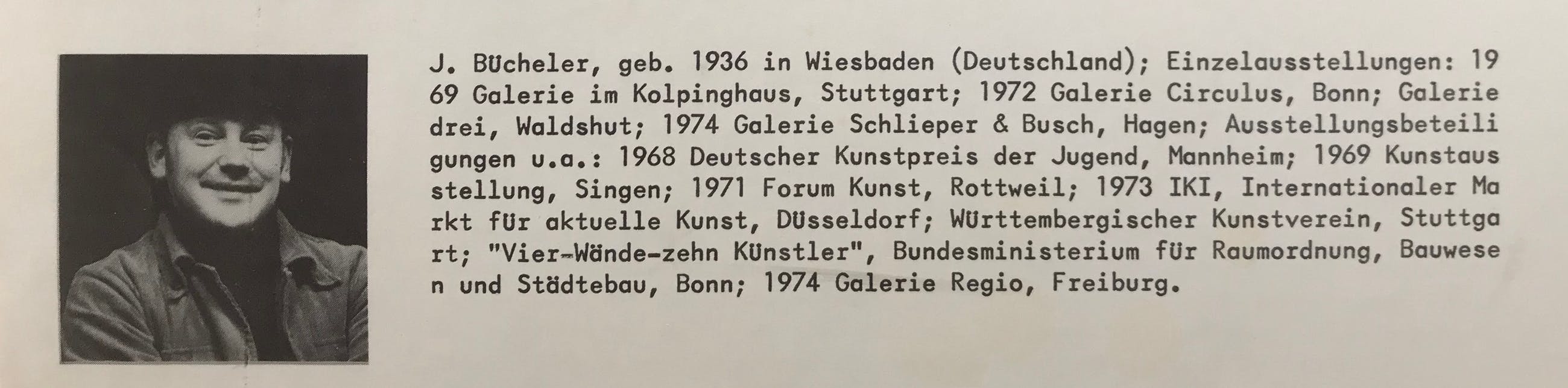 Bücheler volgde van 1951 tot 1957 een beroepsopleiding behanger en stoffeerder en van 1957 tot 1959 glaskunstenaar en glasschilder. In 1959 trad hij als novice in de Benedictijner abdij St. Matthias in Trier, waar hij tot 1962 bleef. In 1965 ging hij in Rottweil wonen en was tot 1975 werkzaam als tekenaar en beeldhouwer van geometrische sculpturen van kunststof. Van 1974 tot 1999 was hij docent aan de Maximilian-Kolbe-Schule in Rottweil, met een onderbreking van enkele jaren (van 1979 tot 1982) als beeldhouwer en docent bij een ontwikkelingsproject in Bangladesh.