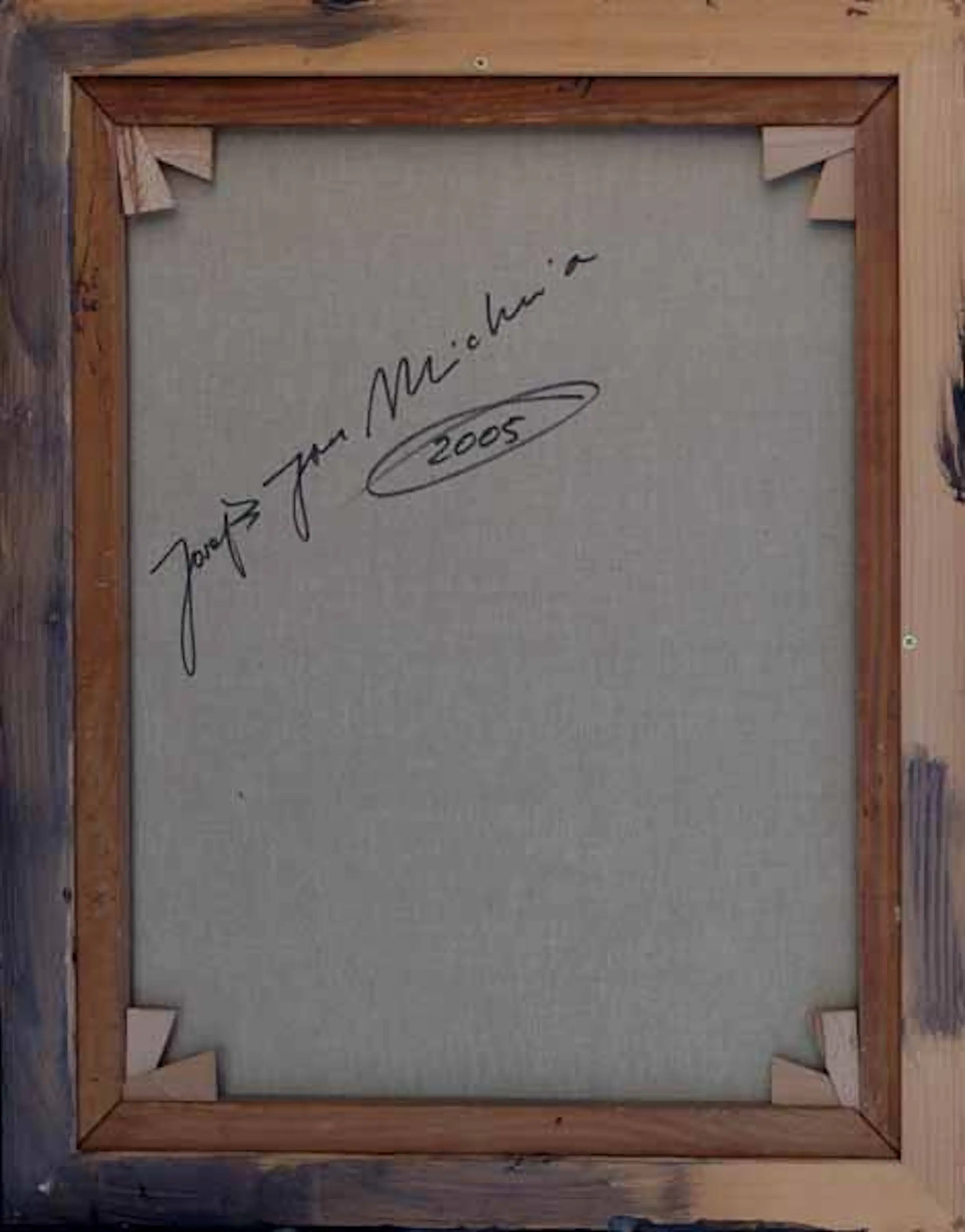 Het schilderij dateert uit 2005 - gesigneerd linksonder op de voorzijde, en opnieuw gesigneerd en van een inscriptie voorzien op de achterzijde. Een certificaat is bijgevoegd.