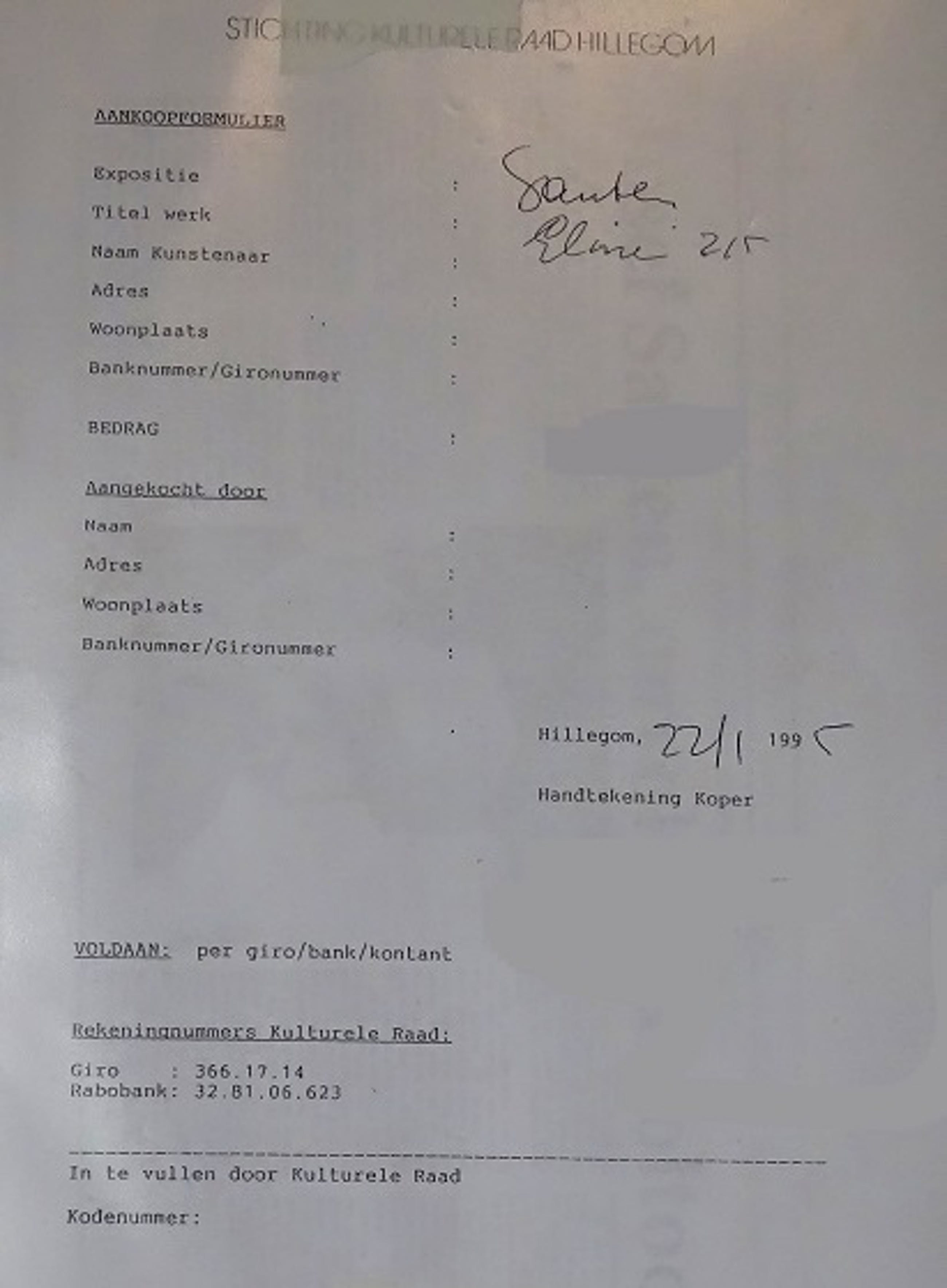 Het werk is af te halen op locatie. Als koper dient u zelf verpakkingsmateriaal mee te nemen. De locatie is: Haarlem, Nederland