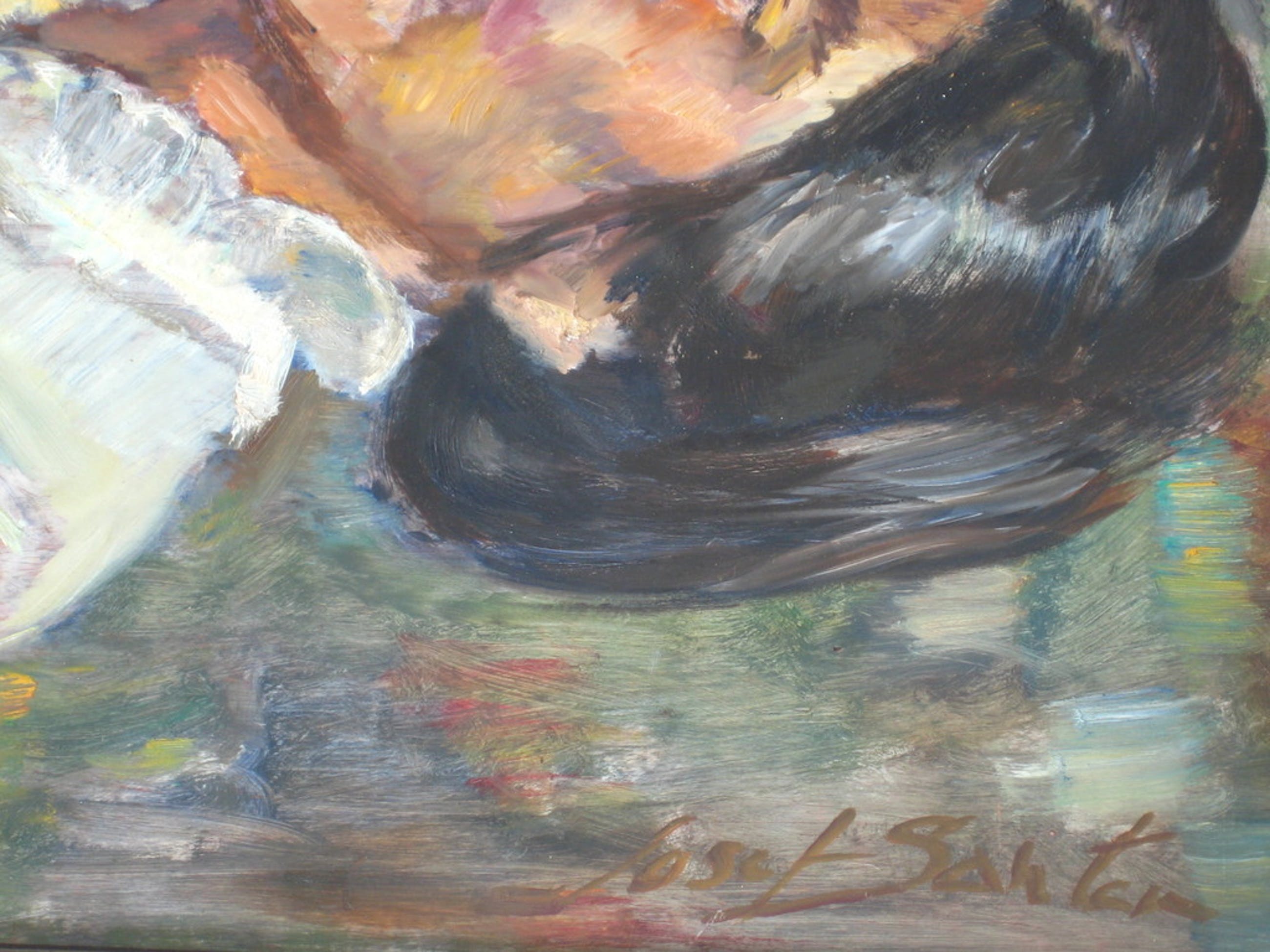 Olieverf op board. Afmeting: 68 cm bij 58 cm. Vermeld in oa Scheen. Geschilderd rond 1950. Aan rechter zijkant gesigneerd. Met lijst.