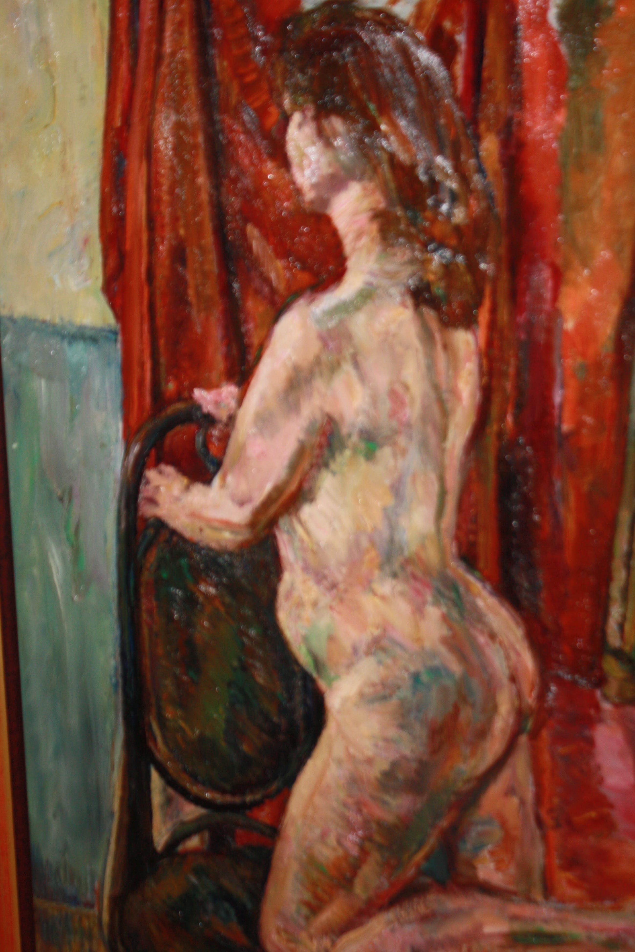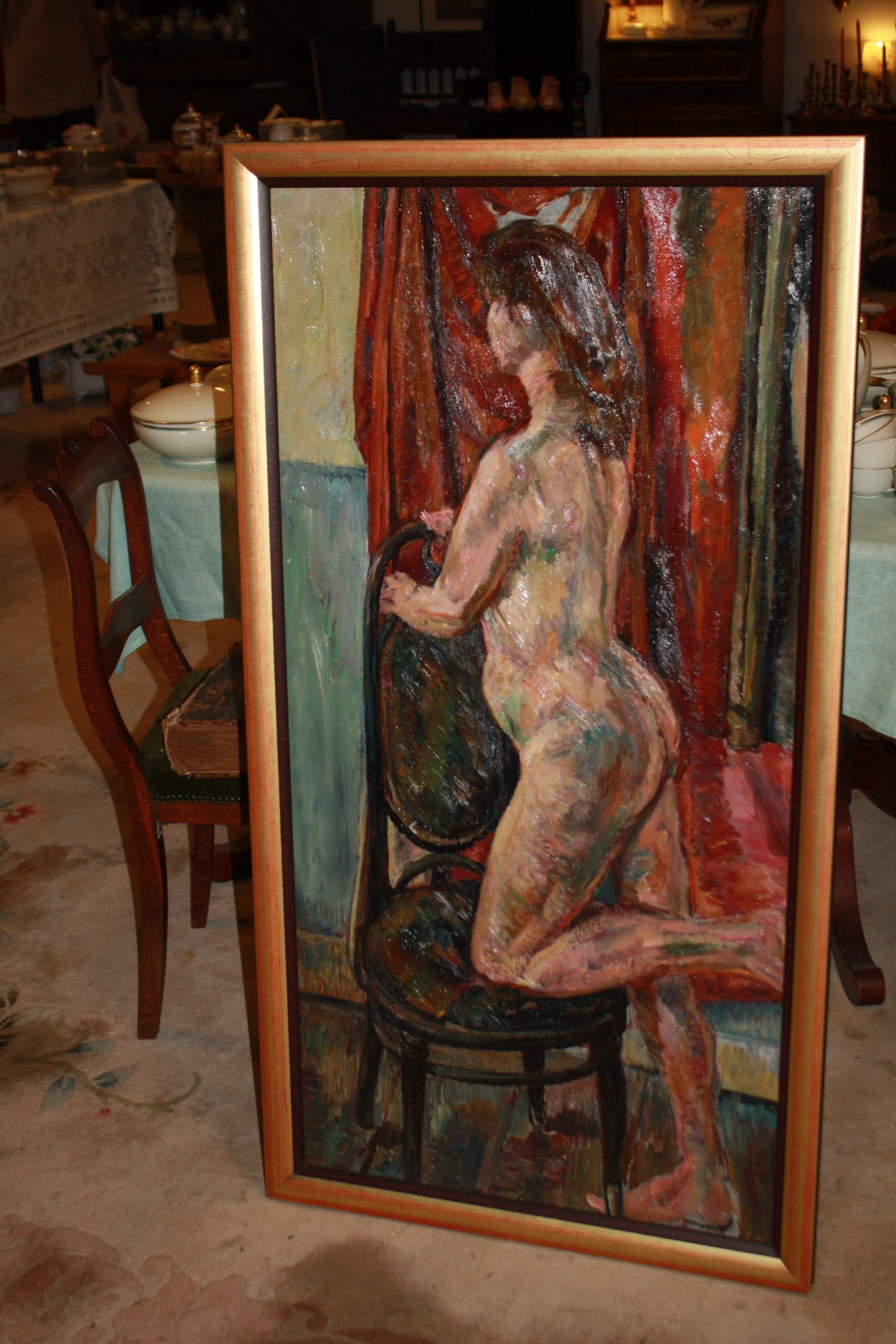 josef santen STAAND NAAKT OLIEVERF OP BOARD IN DE MAAT 60 X 120 GOEDE STAAT