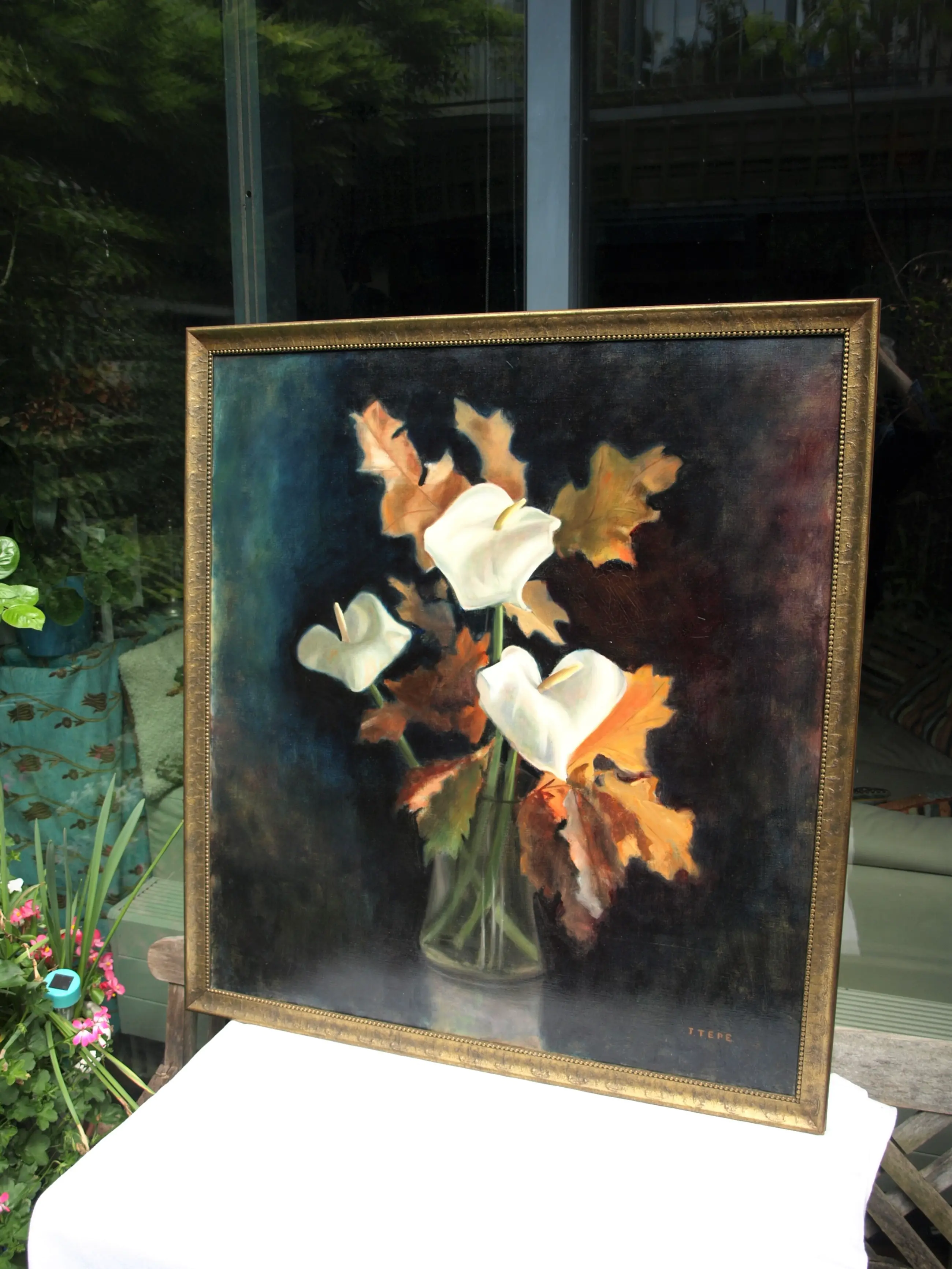Een groot schilderij van de Amsterdamse kunstenares Josefa Tepe (1884-1962). -Olieverf op doek, opgespannen op een houten spieraam en ingelijst in de originele houten lijst. -Gesigneerd rechtsonder. -Afmetingen: Lijst, 102 x 94 cm. Spieraam, 95 x 87 cm. Beeld, 94,5 x 86 cm. Dit schilderij werd geëxposeerd tijdens de tentoonstelling “Onze kunst van heden”, een expositie in Het Rijksmuseum Amsterdam van 18 november 1939 t/m 29 februari 1940. -Herkomst: uit de kunstcollectie van Brentano, een organisatie die zijn bestaan te danken heeft aan Josephus Augustinus Brentano (Amsterdam, 28 augustus 1753 - Amsterdam, 16 april 1821), een Nederlandse katholieke koopman van Italiaanse afkomst, kunstverzamelaar, mecenas en filantroop. -Conditie: Het werk is in goede staat met wat lichte craquelé. De lijst heeft slijtplekjes. Zie ook de foto’s voor een eigen indruk. Kan zo aan de muur.