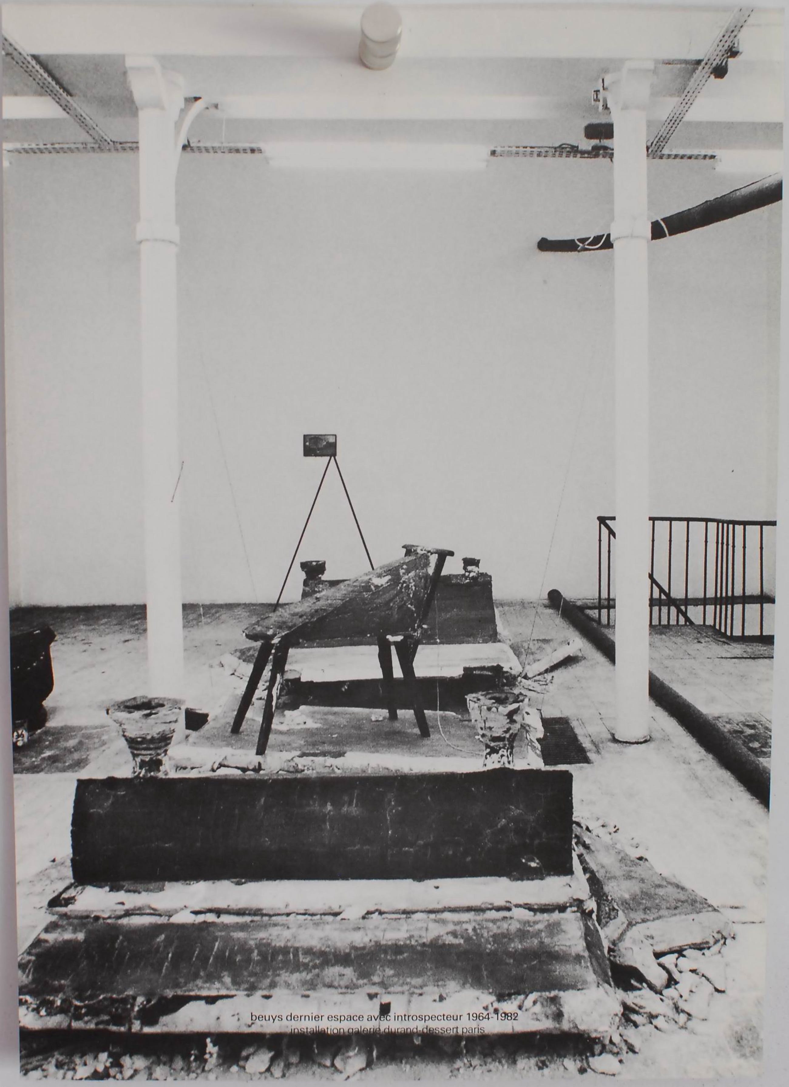 offset foto van de installatie 'dernier espace avec introspecteur 1964-1992' bij Galerie Drand-Dessert, Paris. Gedrukt in 1982 als losse bijlage in Quad, Bulletin on Concrete and Constructive Art, no.6 .