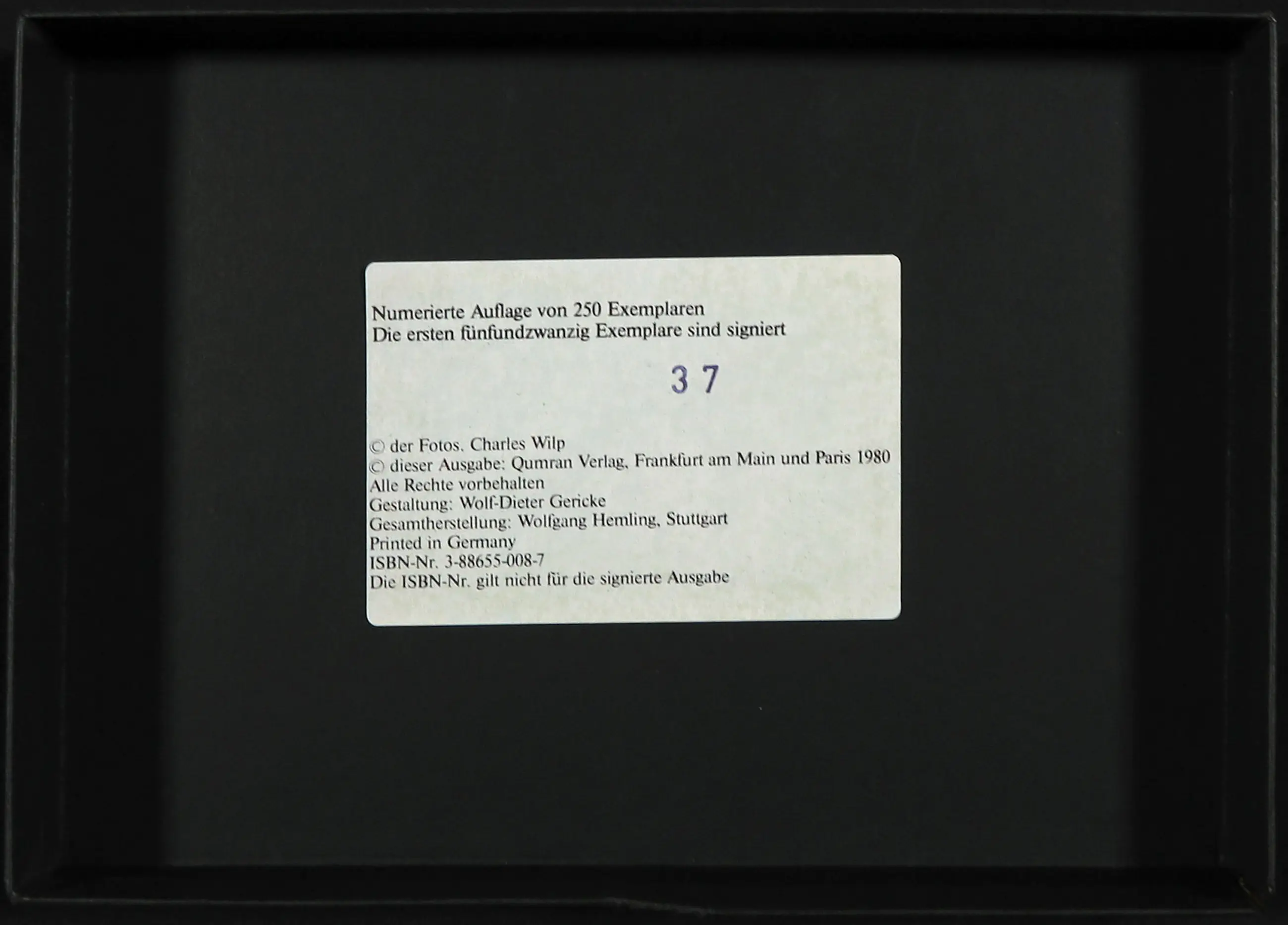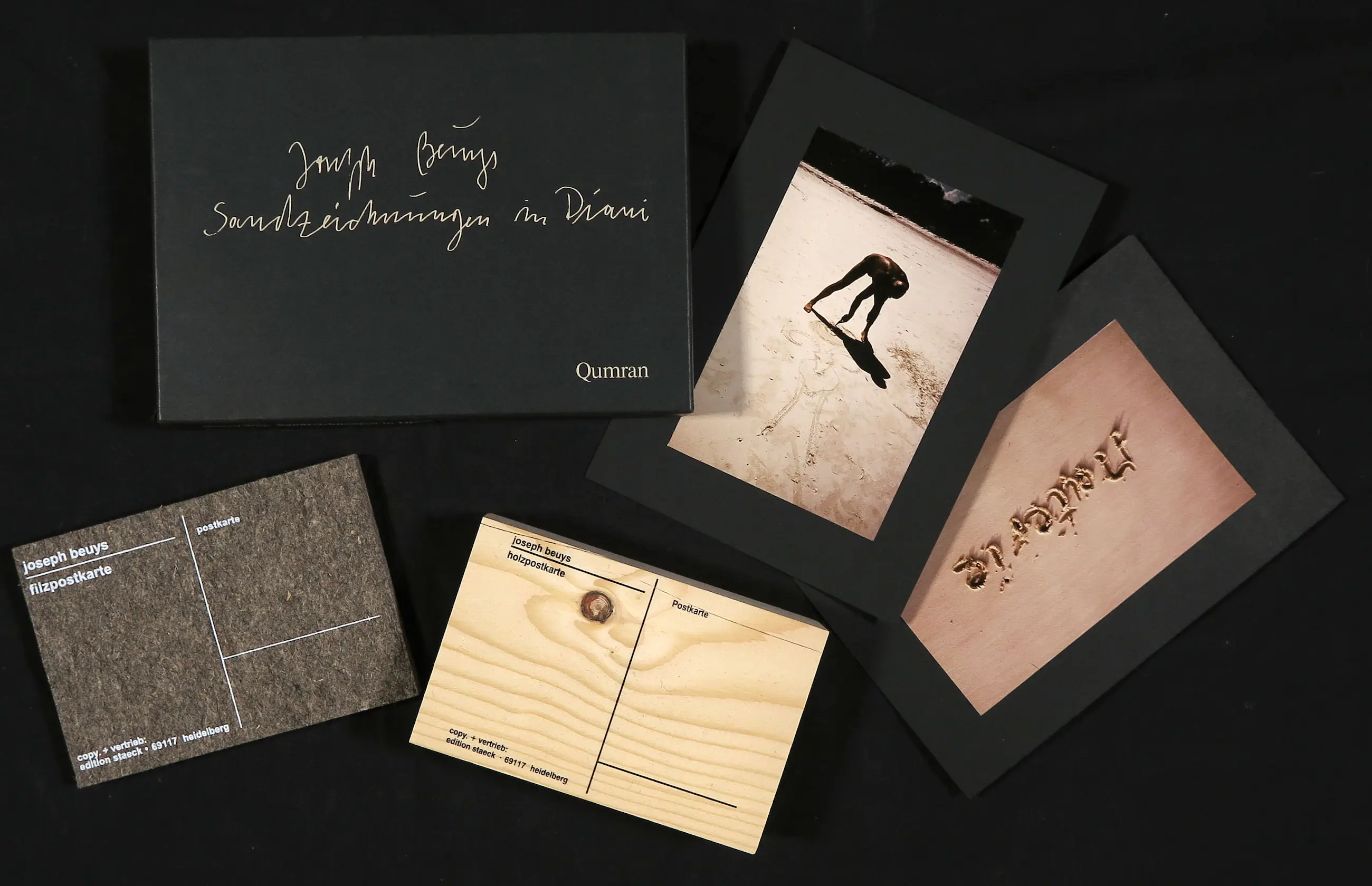 Het doosje met Sandzeichnungen in Diani is oplage 37/250. Het doosje bevat 16 zwarte kaarten met foto's.