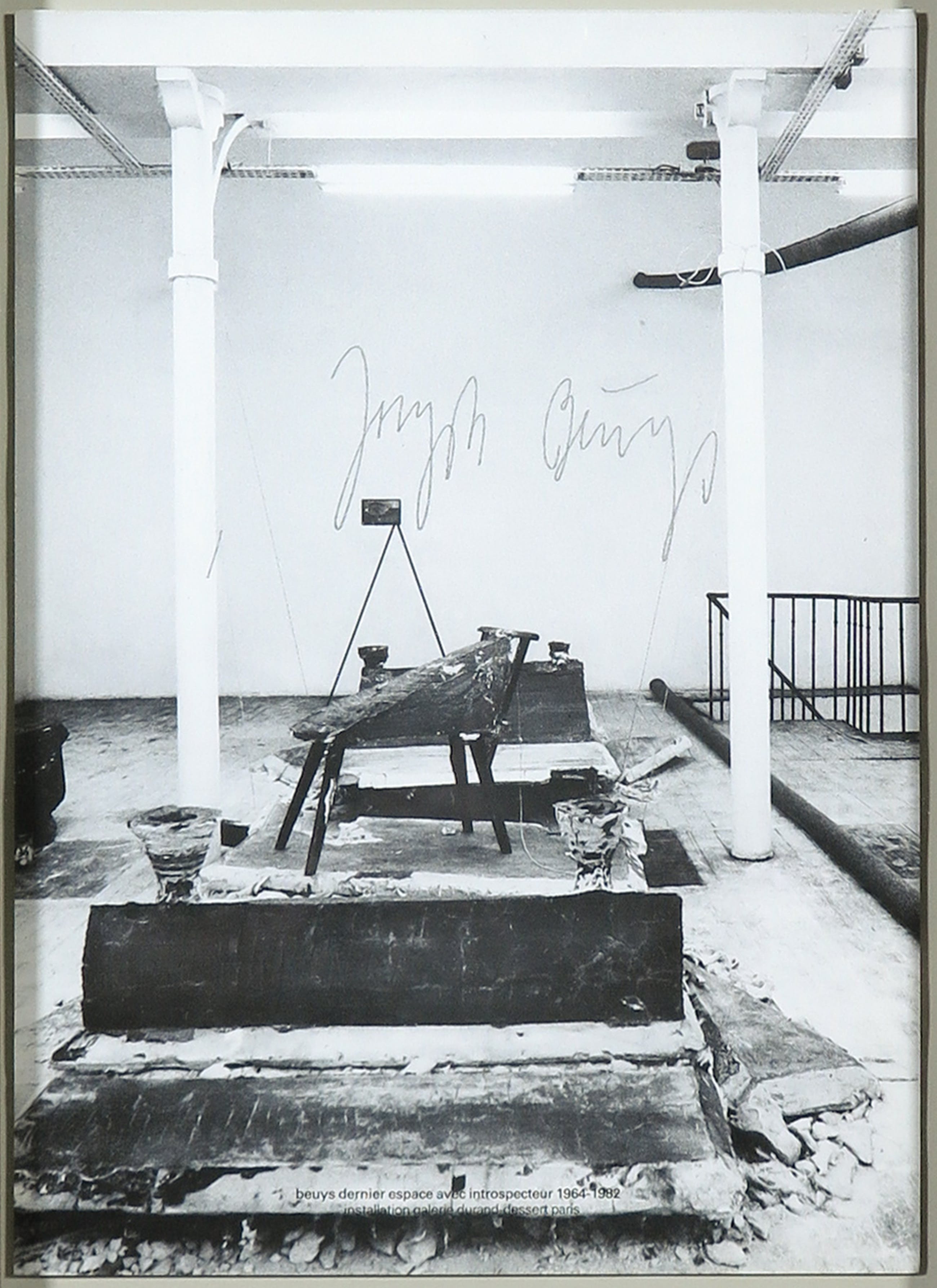 Een door Beuys gesigneerd foto van een installatie van Joseph Beuys, in de Galerie Durant-Dessert in Parijs.