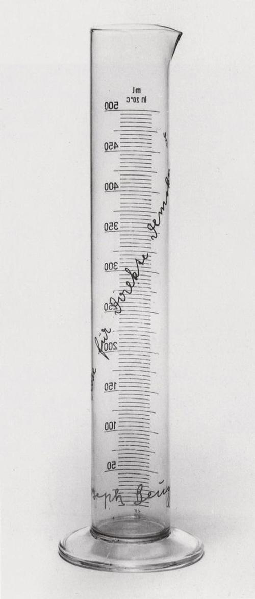 Joseph Beuys, Rose für direkte Demokratie,Meßzylinder aus Glas mit aufgedrucktem Schriftzug und aufgedruckter Signatur, zzgl. drucksigniertem und gestempeltem Zertifikat A4, Objekt 33,5 x 5 cm Durchmesser. Schellmann 71. Frühes, wichtiges und mittlerweile rares Multiple des Künstlers. Einwandfreier Zustand. Zzgl. Porto und Verpackung € 30.-.
