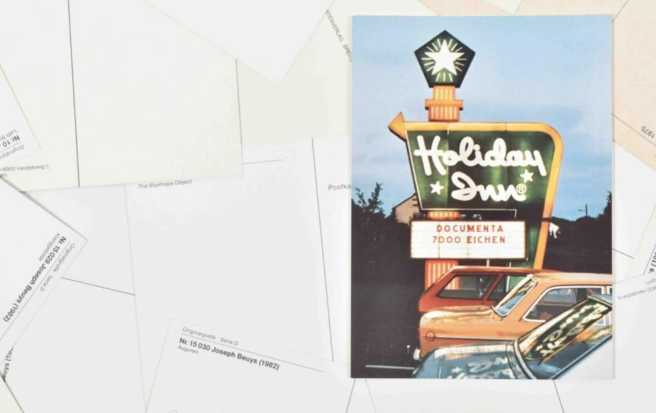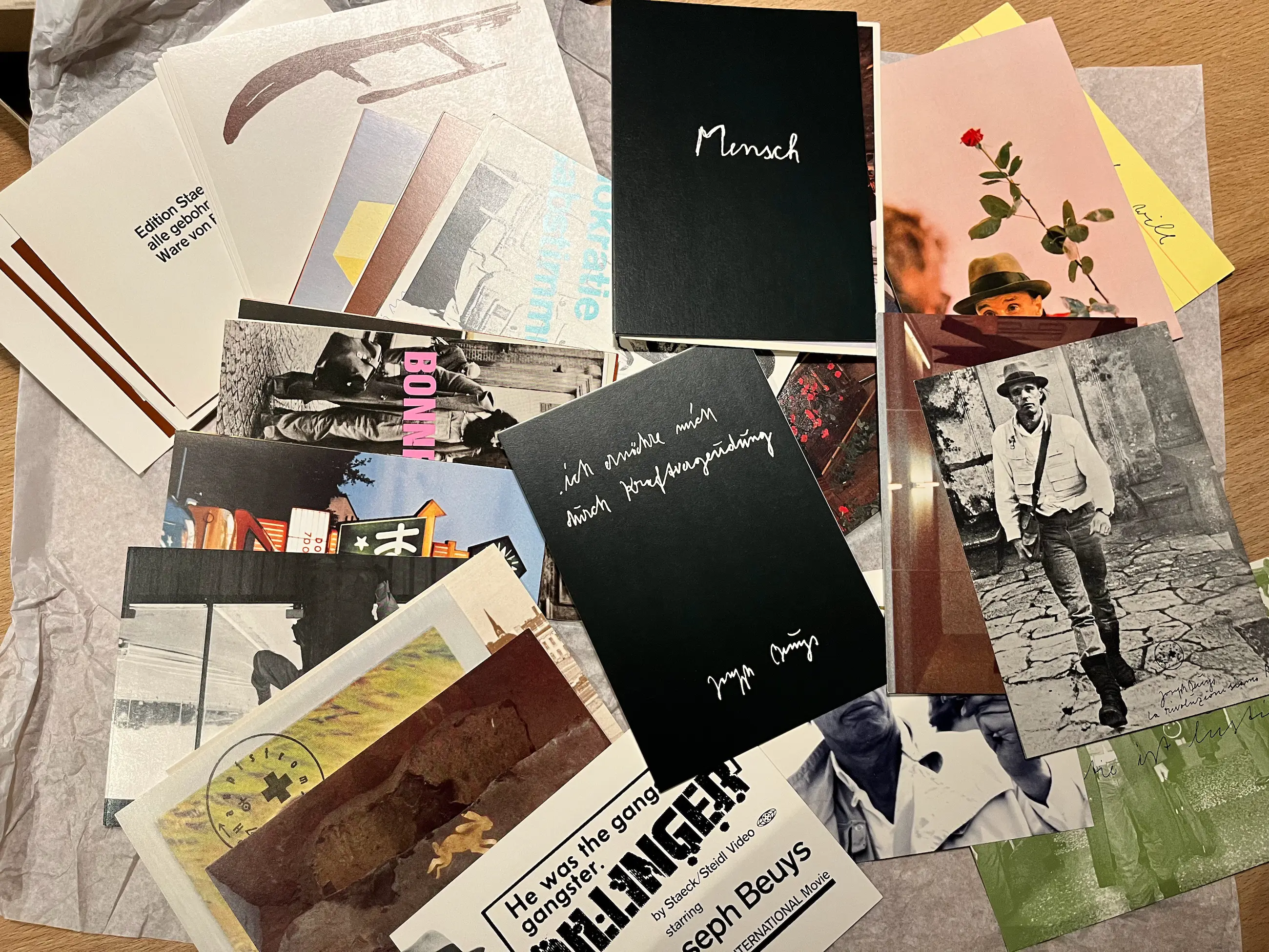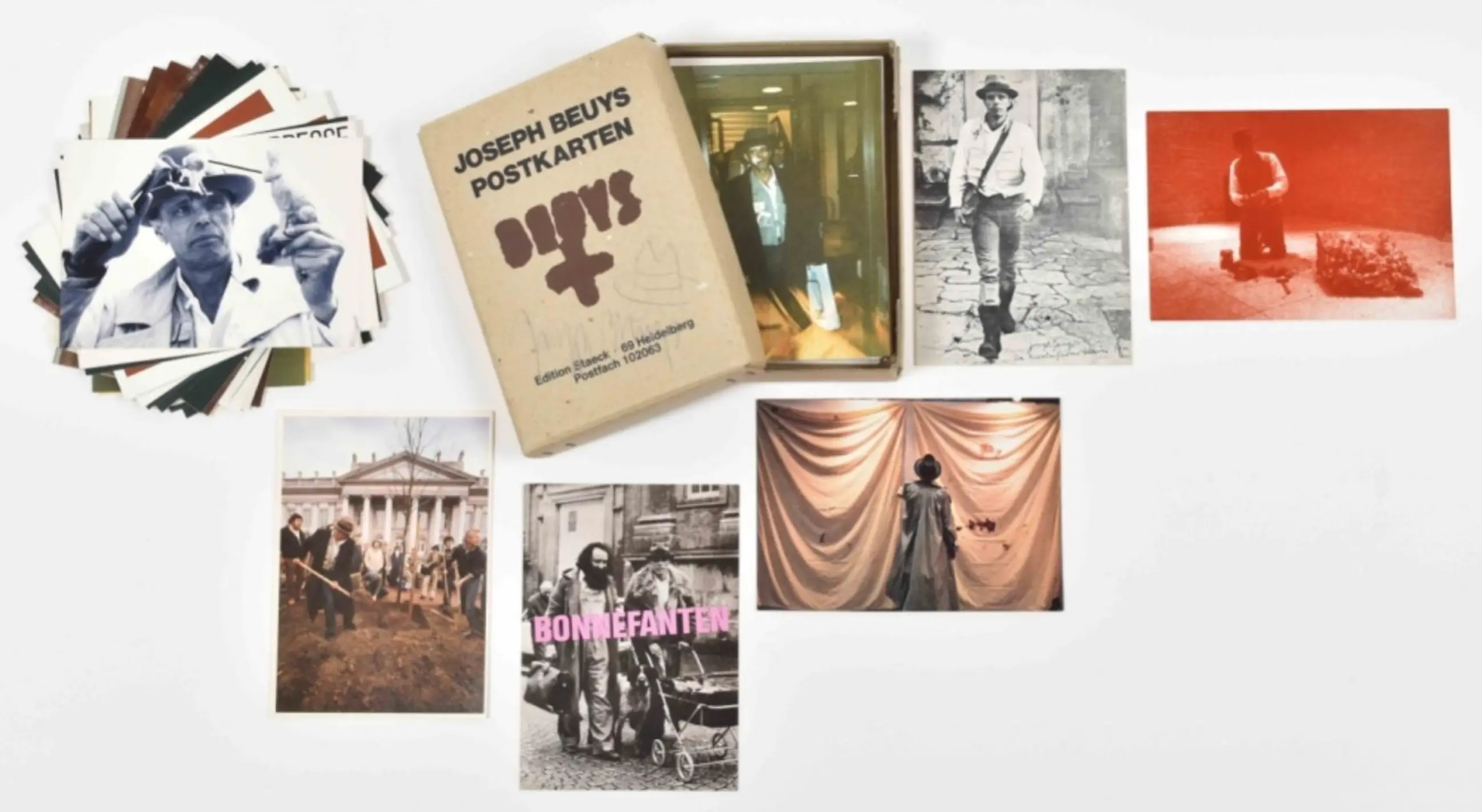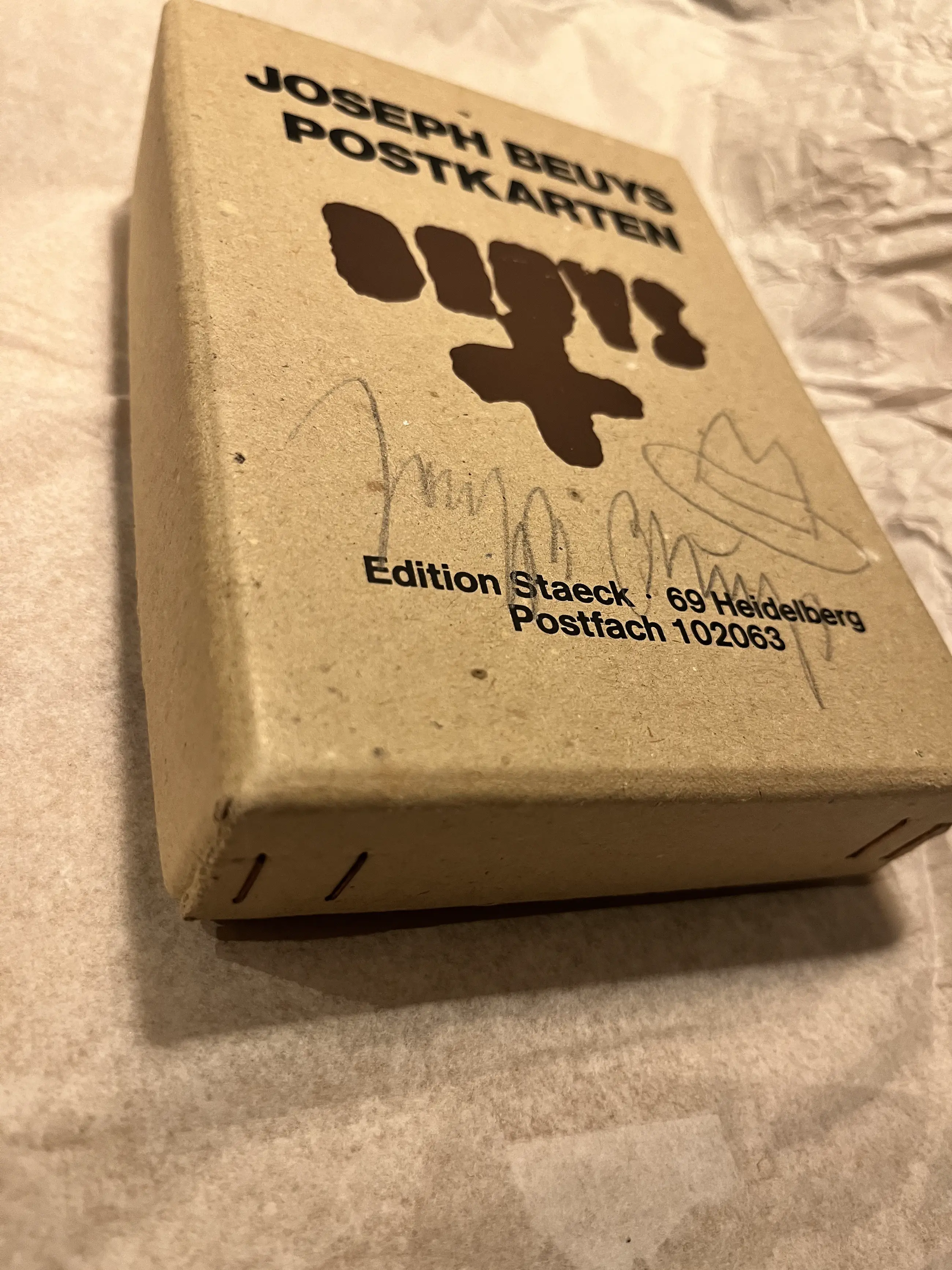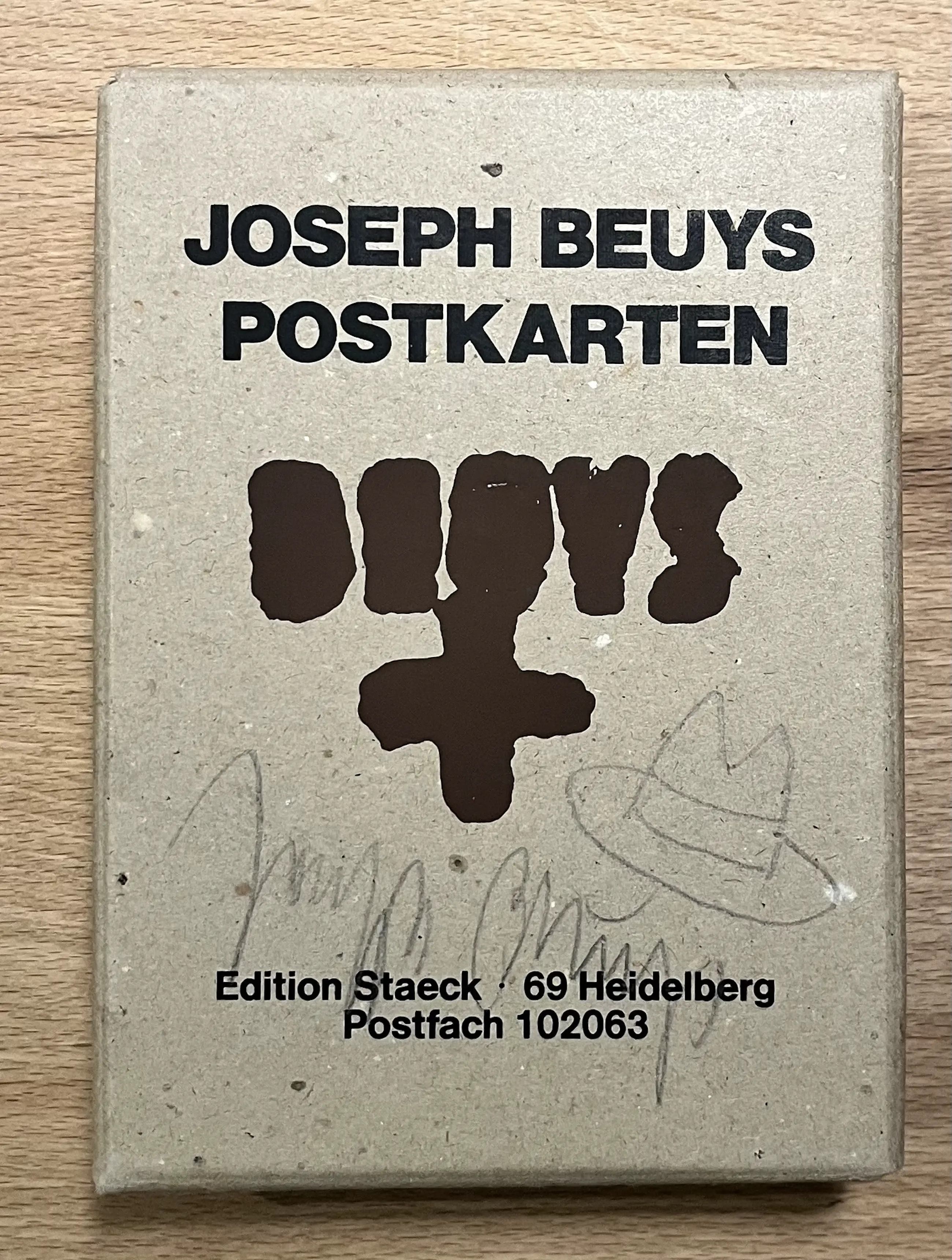 Multiple van Joseph Beuys. Kartonnen box met daarin een serie van 76 offset gedrukte ansichtkaarten uit de periode 1969-1986. Uitgever: Edition Staeck, Heidelberg. Afmetingen box: 17 x 12,5 x 4 cm,