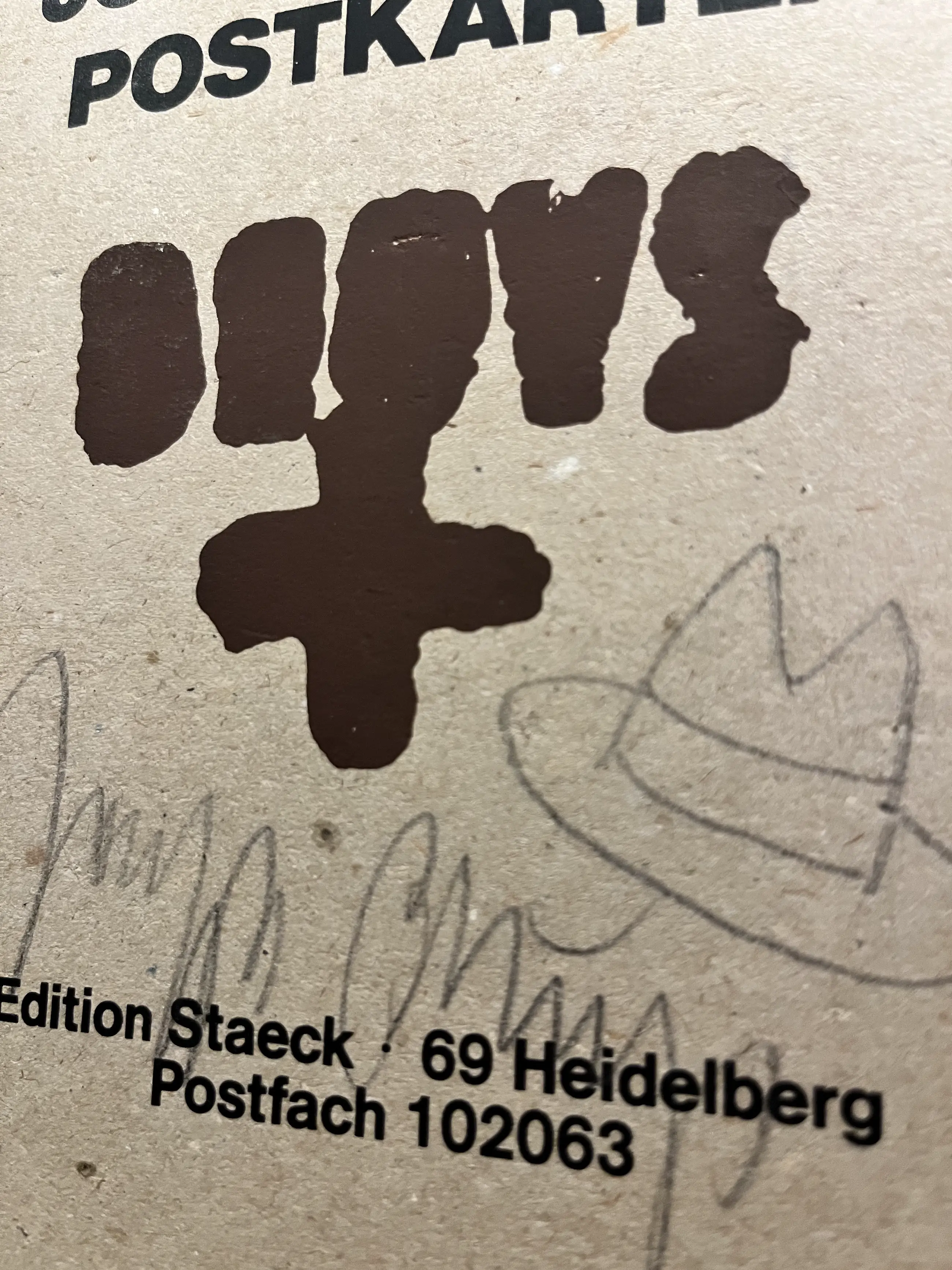 Gesigneerd door Beuys op de bovenkant van de doos met een extra tekening van een hoed.