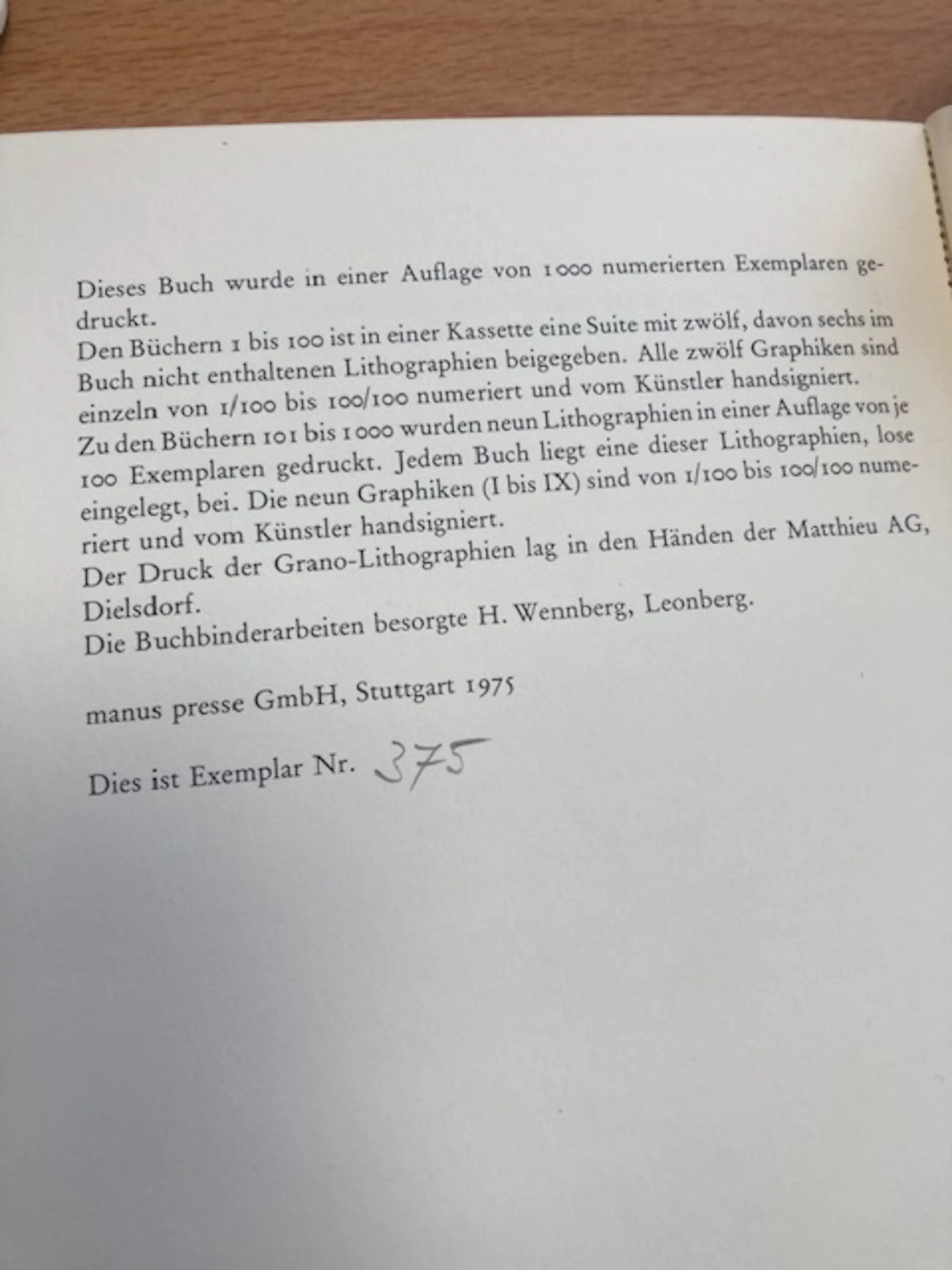 Bij werk in oplage: Het oplagenummer op de foto kan afwijken van het hierboven genoemde correcte oplagenummer. Als wij meerdere exemplaren hebben in gelijke conditie, maken wij niet voor elk blad een nieuwe foto.