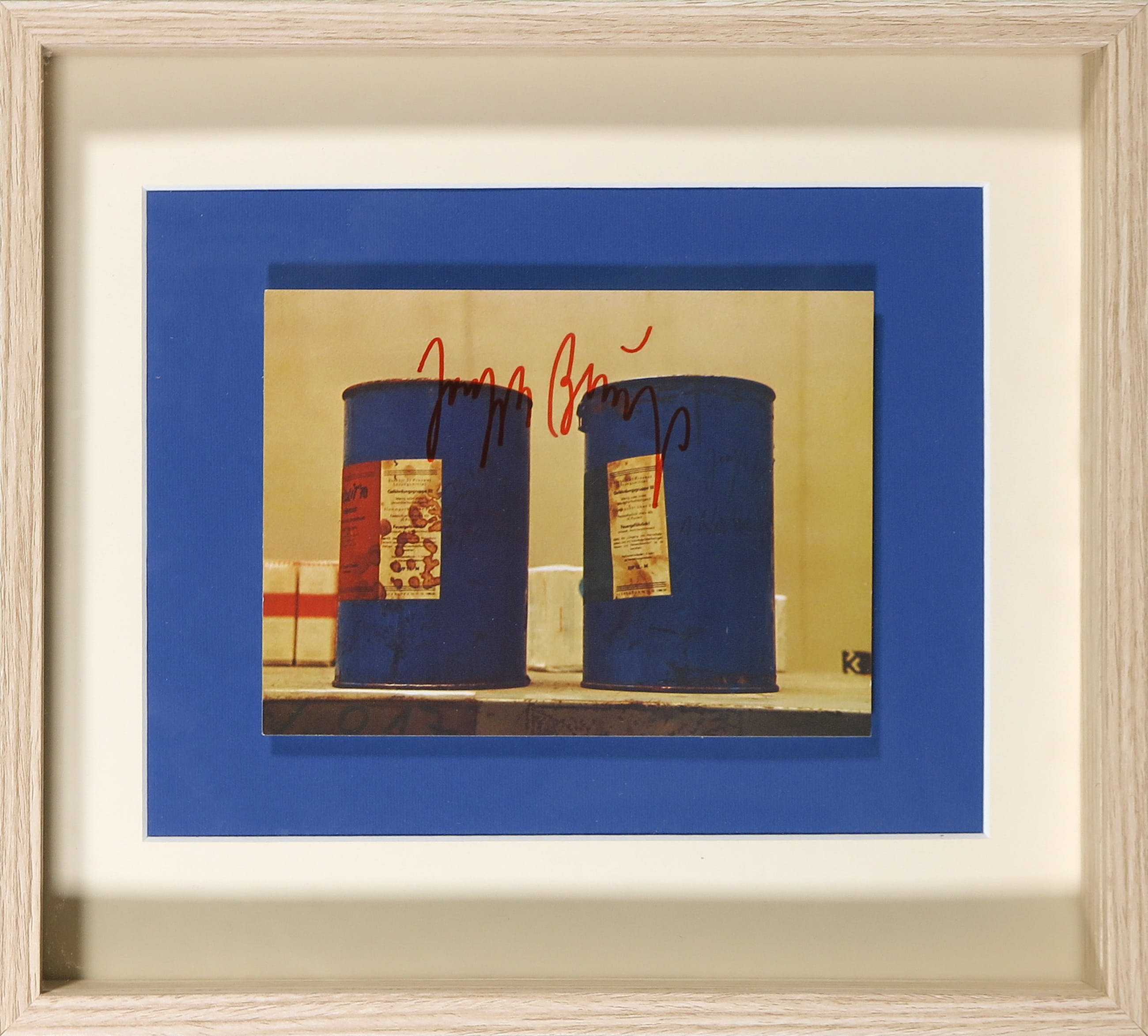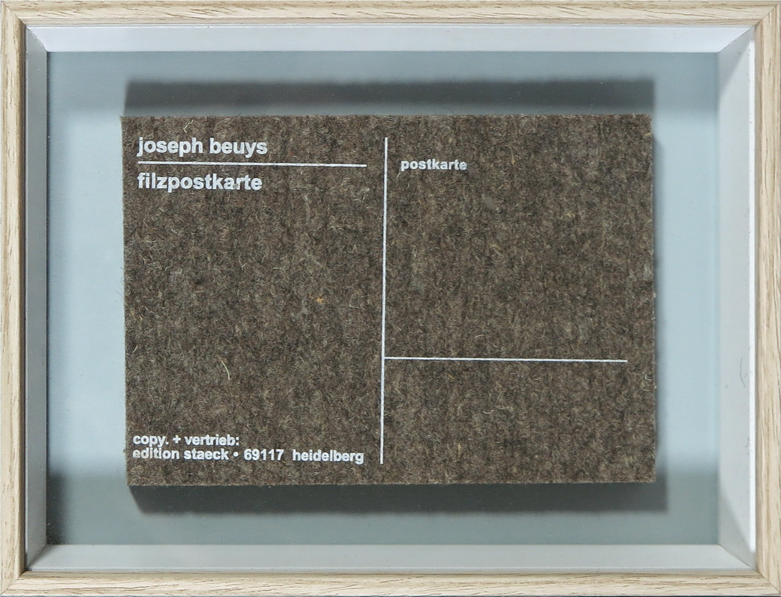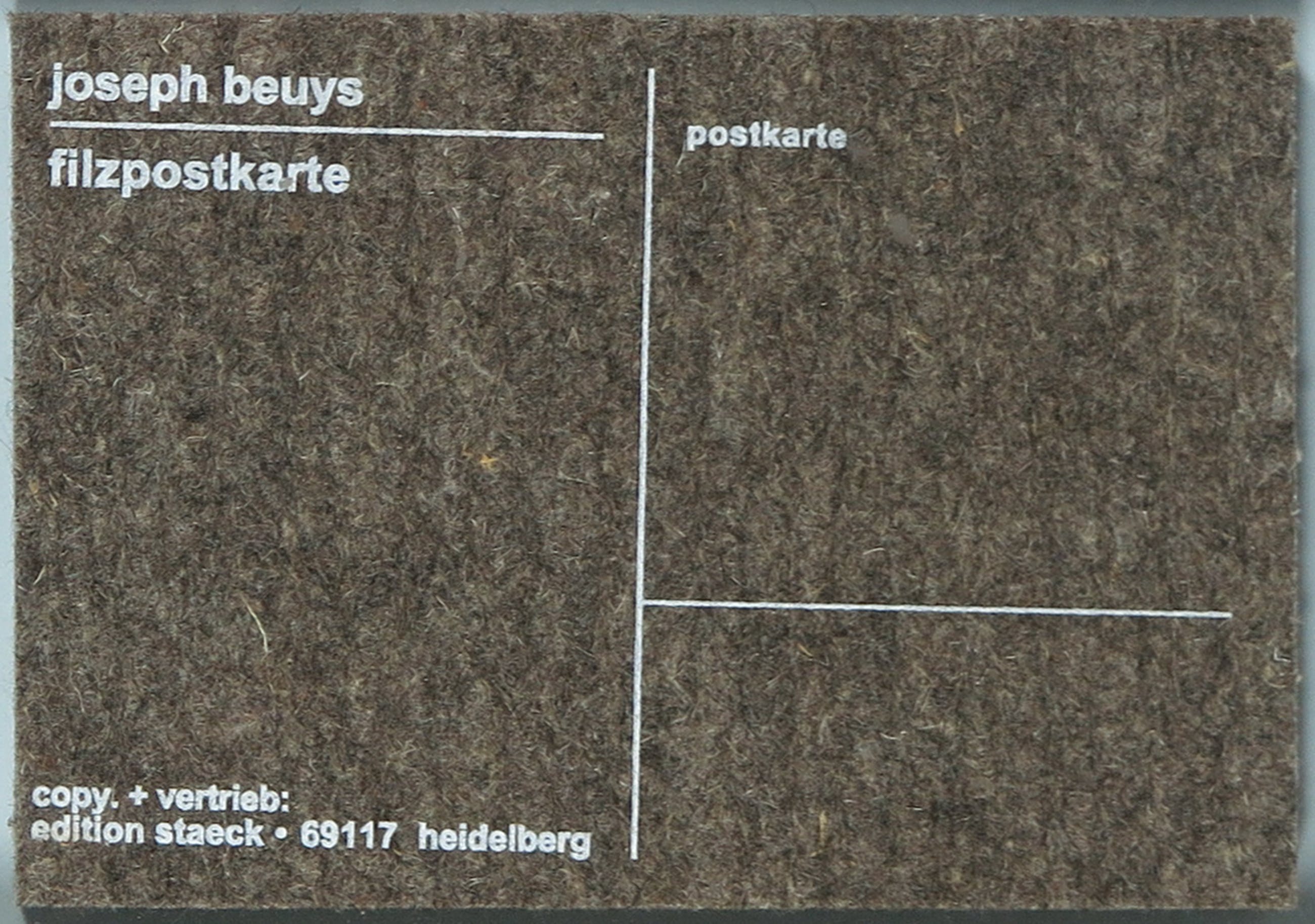 Set van een gesigneerde postkaart en een (ongesigneerde) Filzpostkarte, door Joseph Beuys. Beide item zijn ingelijst.