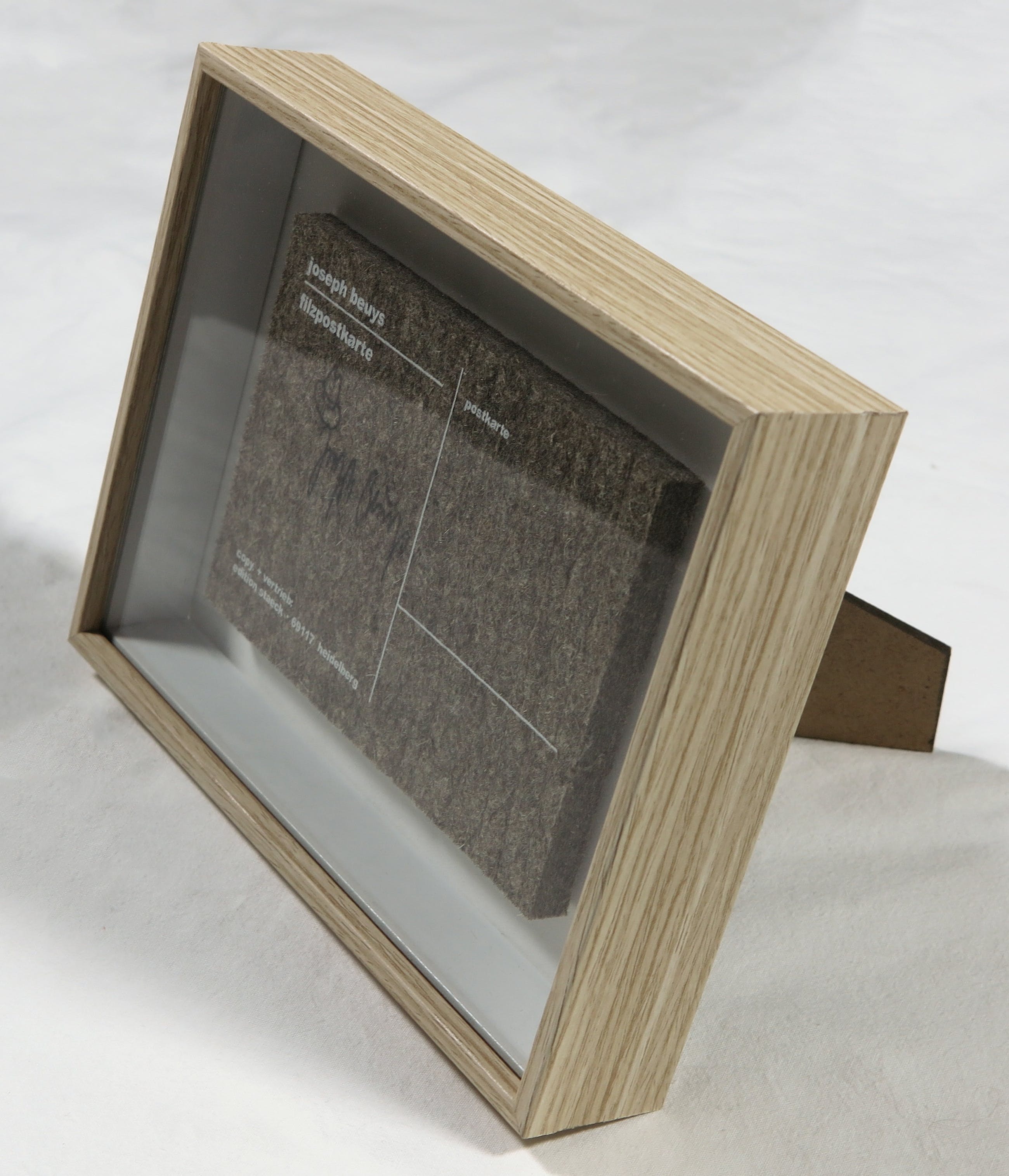De kaart is ingelijst in een vitrinelijst. Afmetingen betreffen de buitenmaten van de lijst. Afmetingen van de kaart: 10.5 x 15 x 0.9 cm.