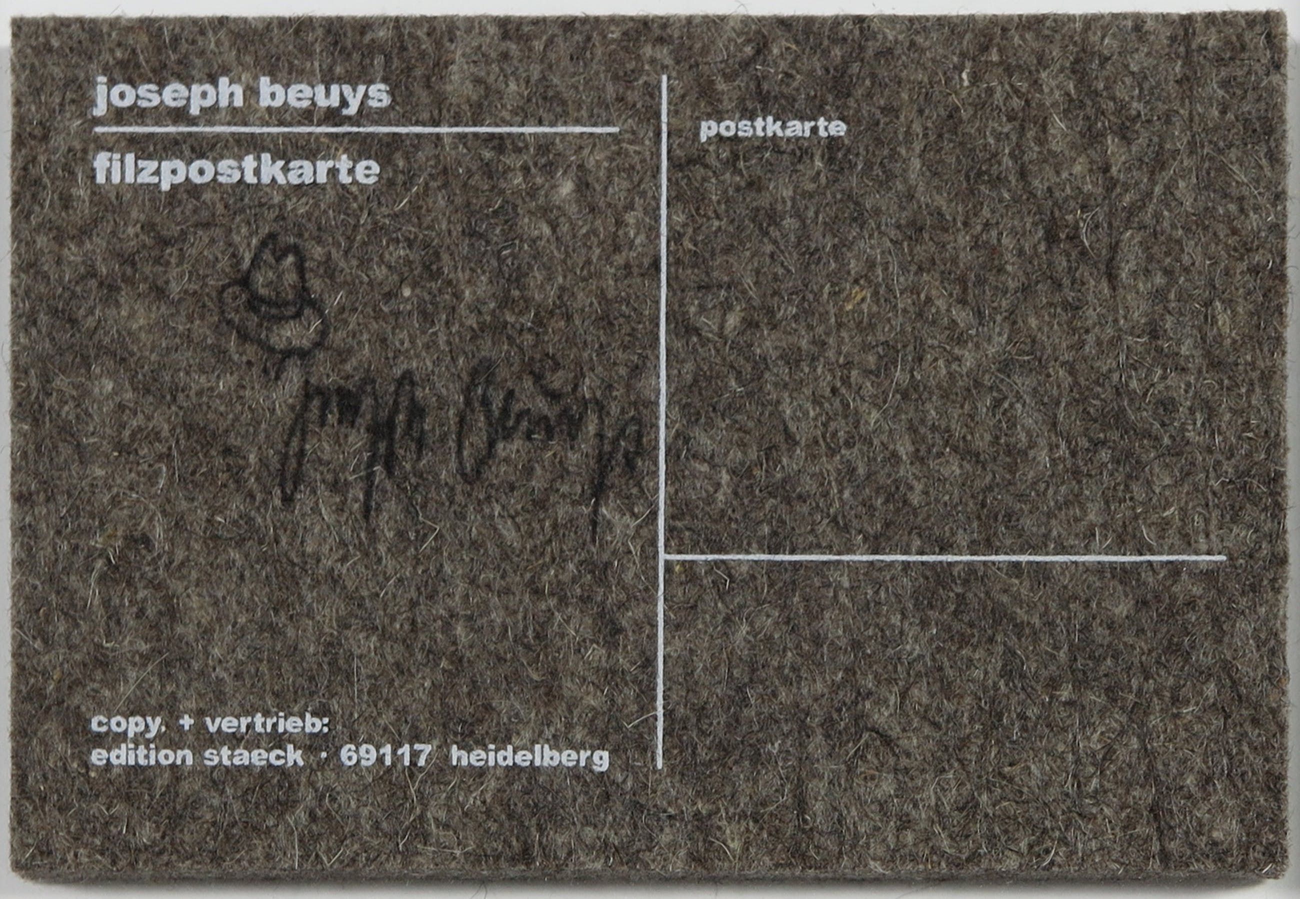 Handgesigneerd Filzpostkarte door Joseph Beuys; zeer zeldzaam want deze vilten postkaarten werden maar zelden door Beuys gesigneerd.