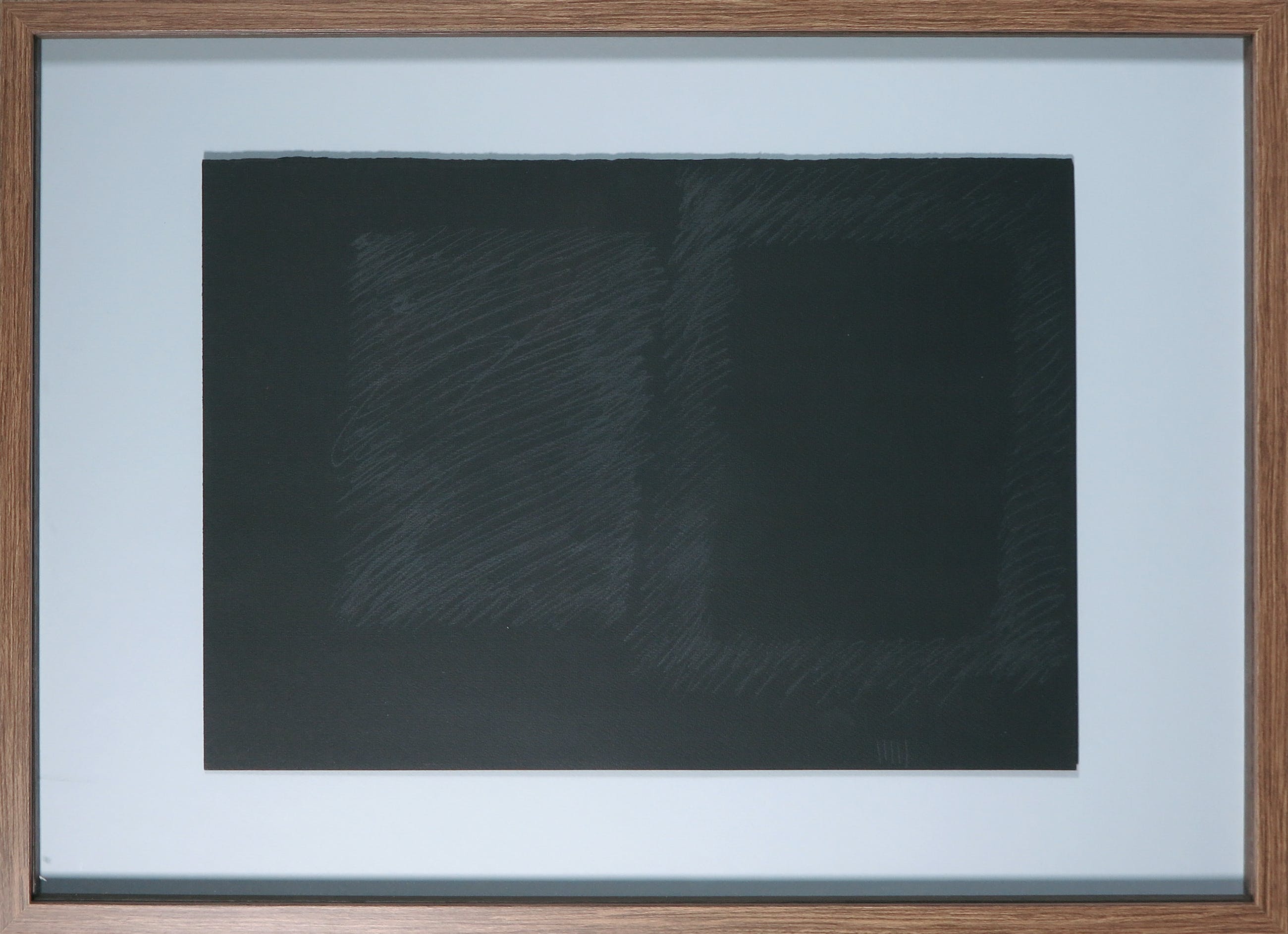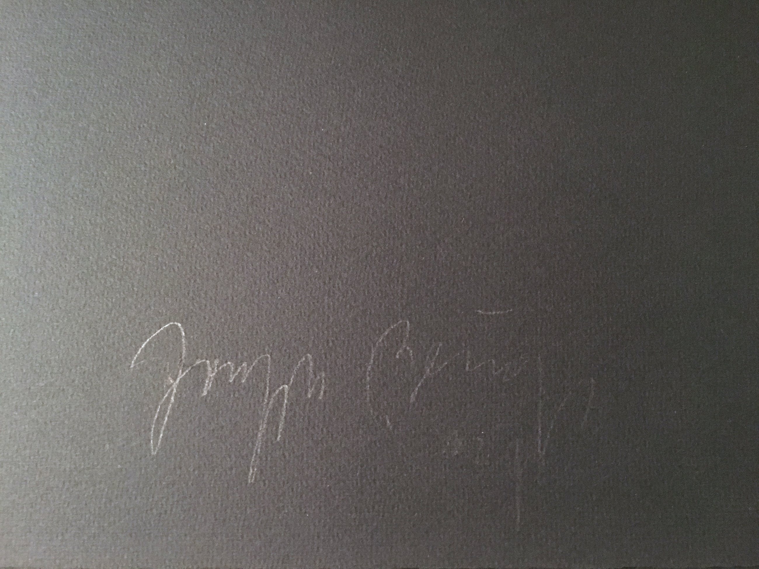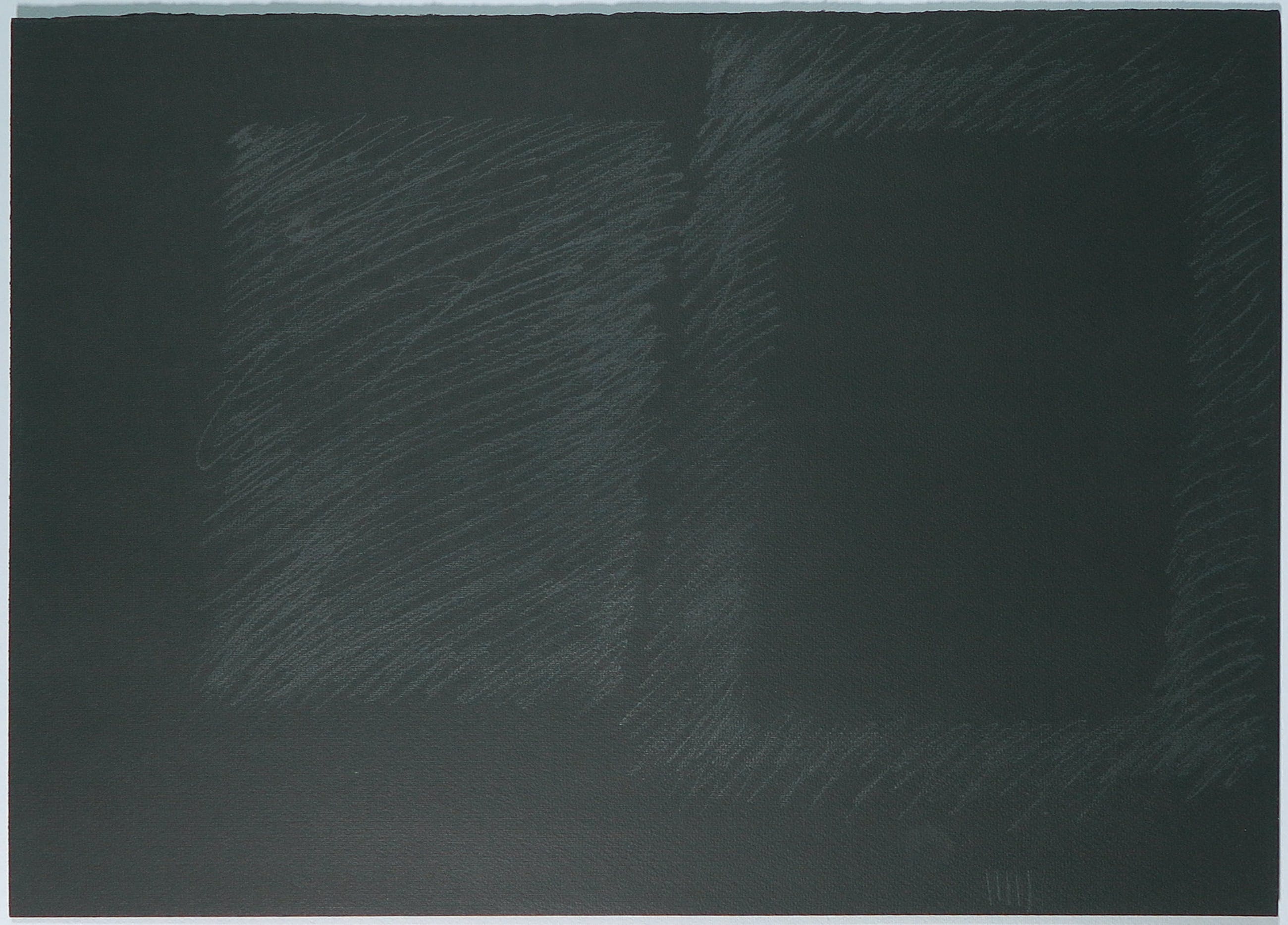 Zeefdruk in grijze inkt op zwart velijnpapier, uit Frammenti Veneziani (1980) Venezianische Prints van J.L.B (James Lee Byars) Verona.