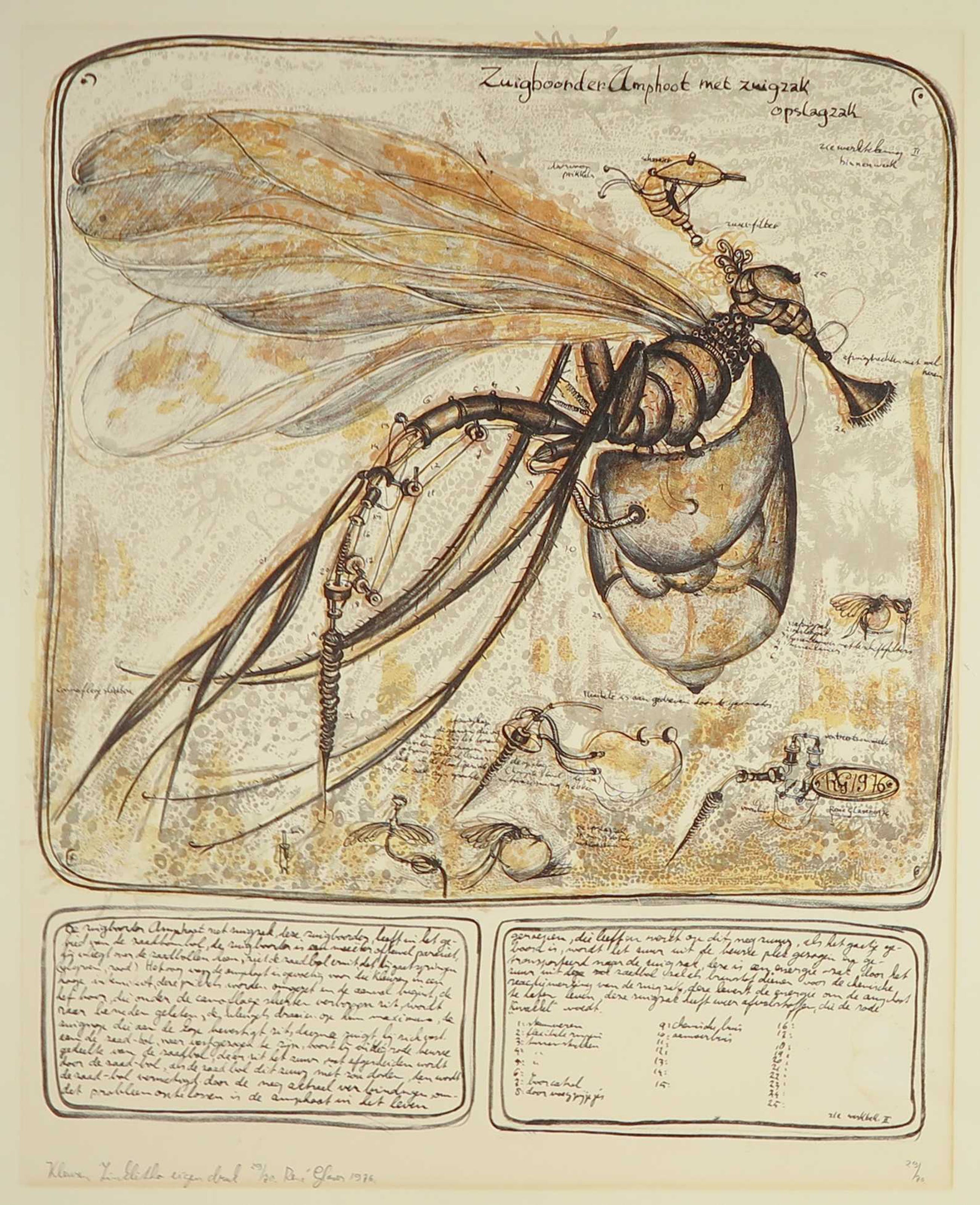 Litho van Joseph Cals, 1980 getiteld Hommage aan Graham Sutherland, opl. 128/190