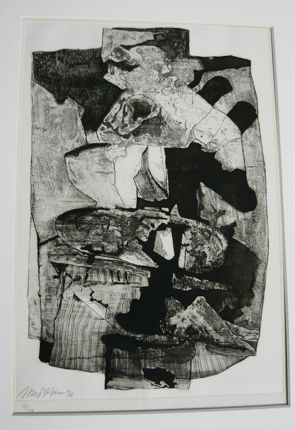 Joseph Faßbender „Memorial“, s/w-Radierung mit Aquatinta / Vélin, Auflage 100 Exemplare, nummeriert 57/100, handsigniert, datiert "68"; 43 x 29 auf 53,2 x 39,2 cm. Trier-Franzen 922. Guter Zustand, unter Passepartout. Privatverkauf - wegen der neuen EU-Gesetzesbestimmungen erfolgt die Auktion unter Ausschluss jeglicher Gewährleistung, Garantie und Rücknahme. Laut EU-Recht muss dieser Zusatz unter jeder Online-Auktion stehen, ansonsten haftet der Einlieferer auch als Privatperson ein Jahr lang für die versteigerte Ware. Mit der Abgabe Ihres Gebotes erklären Sie sich mit diesen Bestimmungen einverstanden. Bei Fragen bitte mailen. Versandkosten trägt der Käufer, Paket innerhalb Deutschlands 10 Euro.