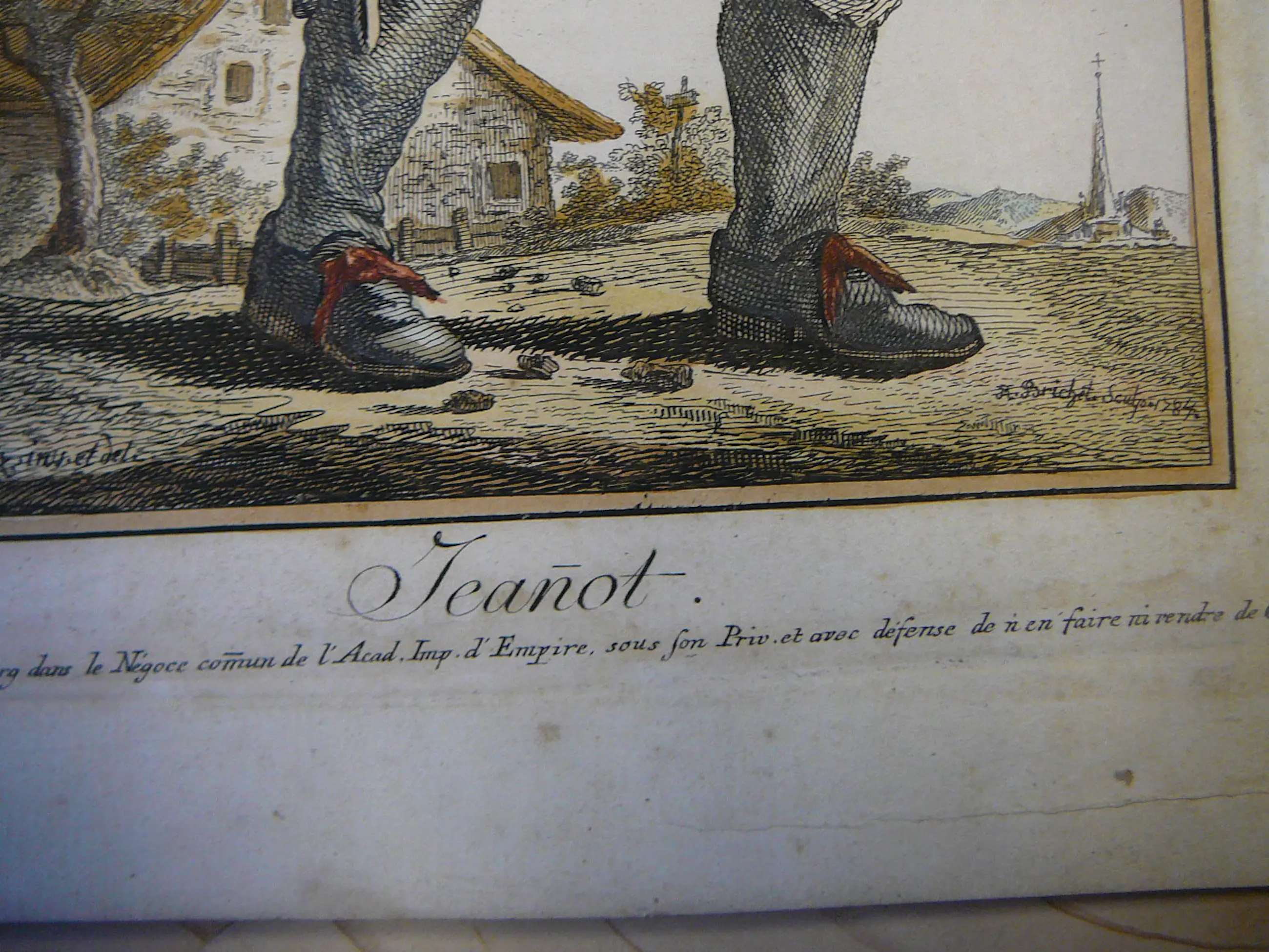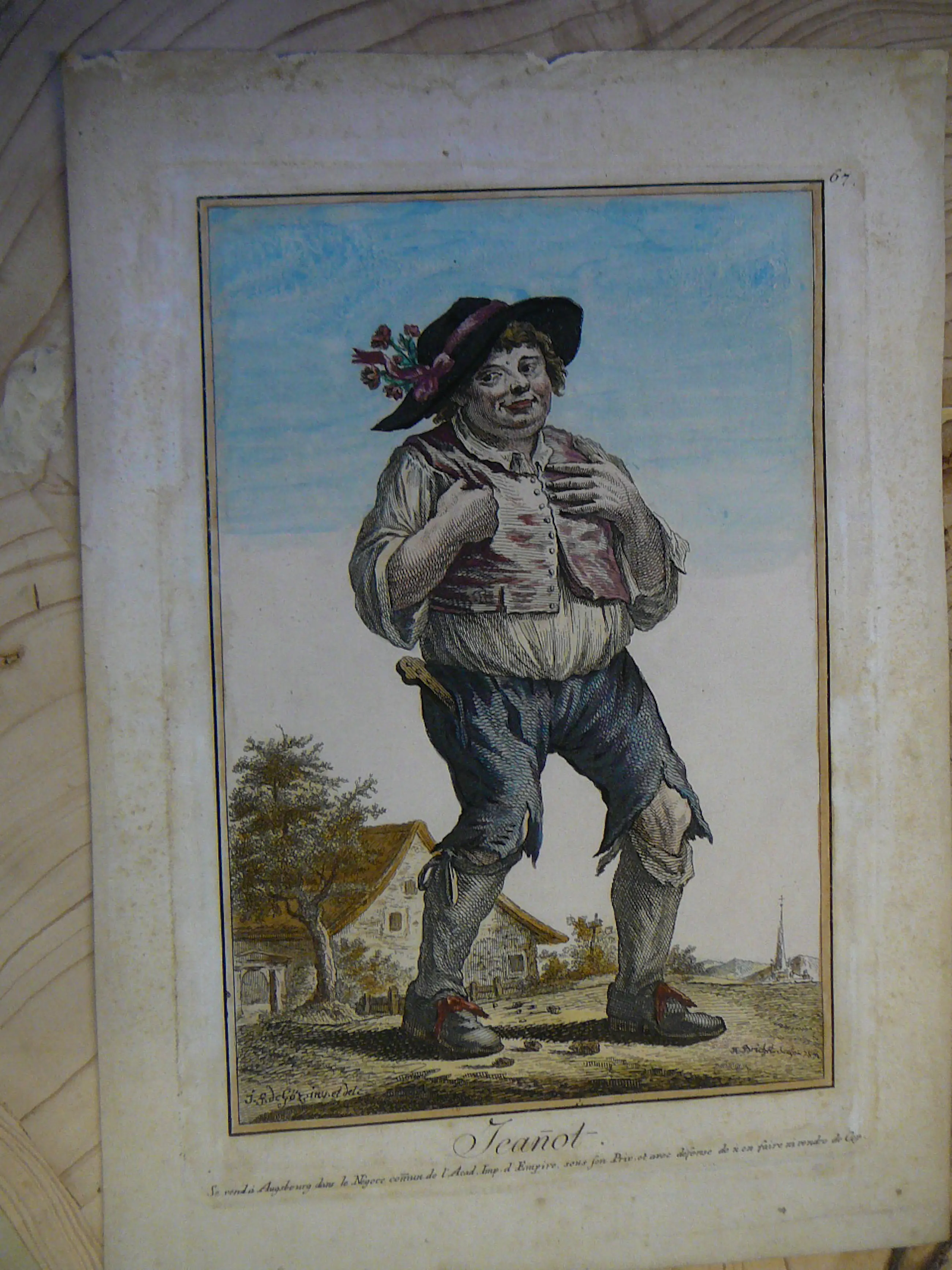Zeer mooie originele ets van een jongeman met hoed met bloemen J.F.de Goez .inv.et del (1754-1815) R Brichet .sculpt .1784 (1778-1794) afm 22,5 x 16 (plaatrand) afm papier 27 x 19,5